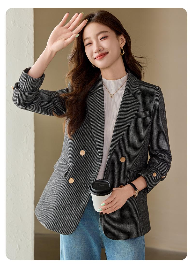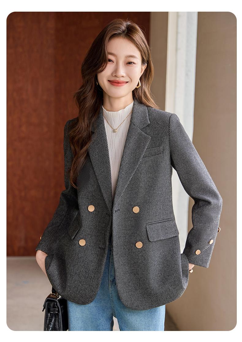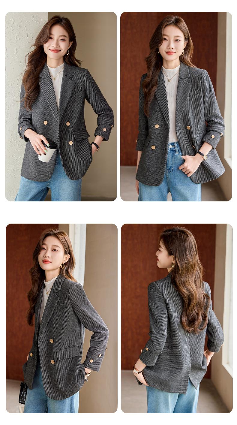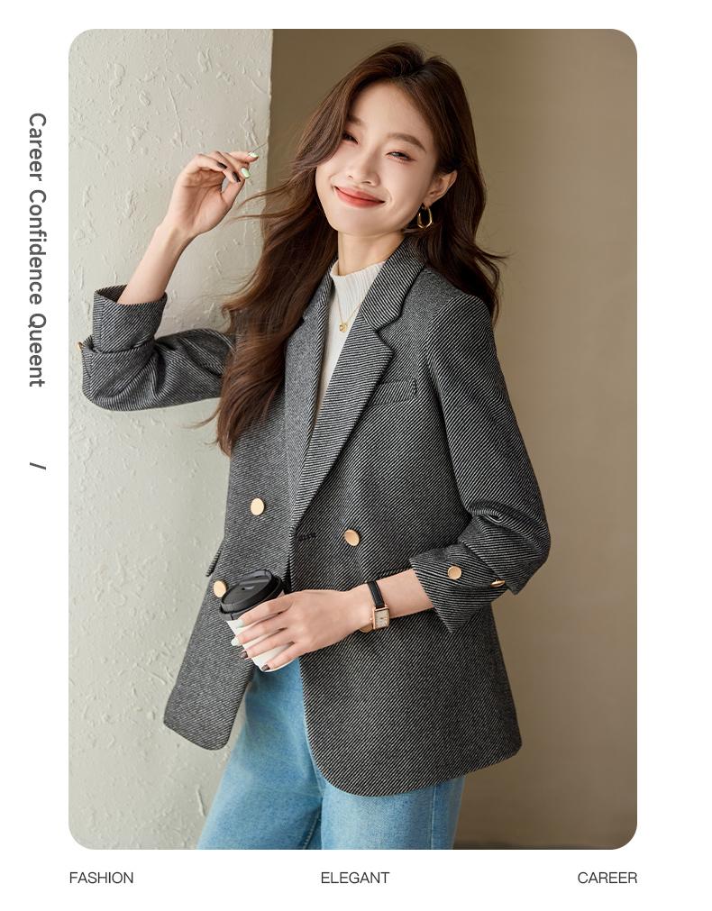 Chaqueta de Traje Cruzada para Mujer Otoño 2024 Nueva Moda Estilo Occidental Holgada Talla Grande Alta Gama Casual Top de Traje