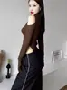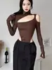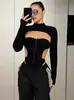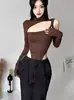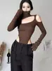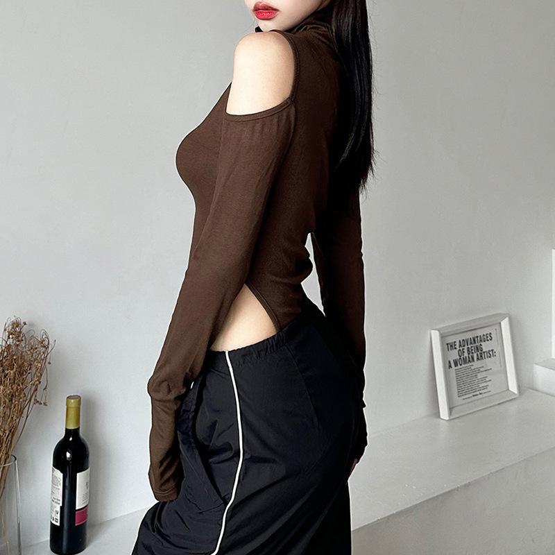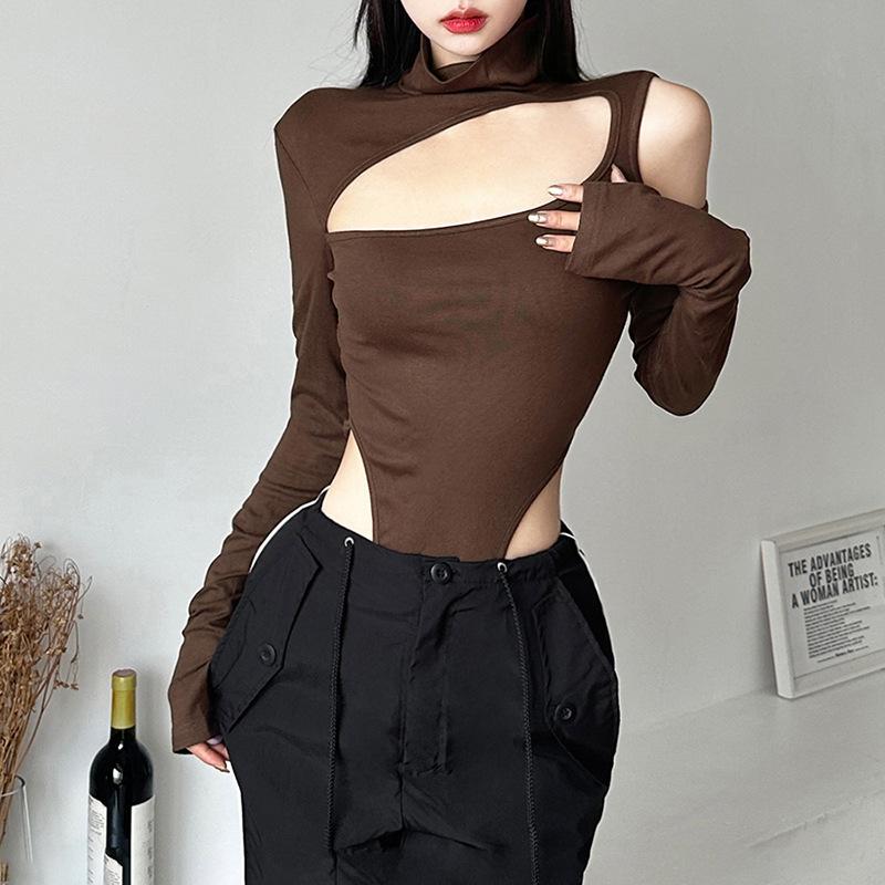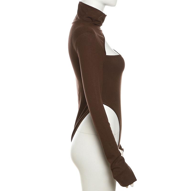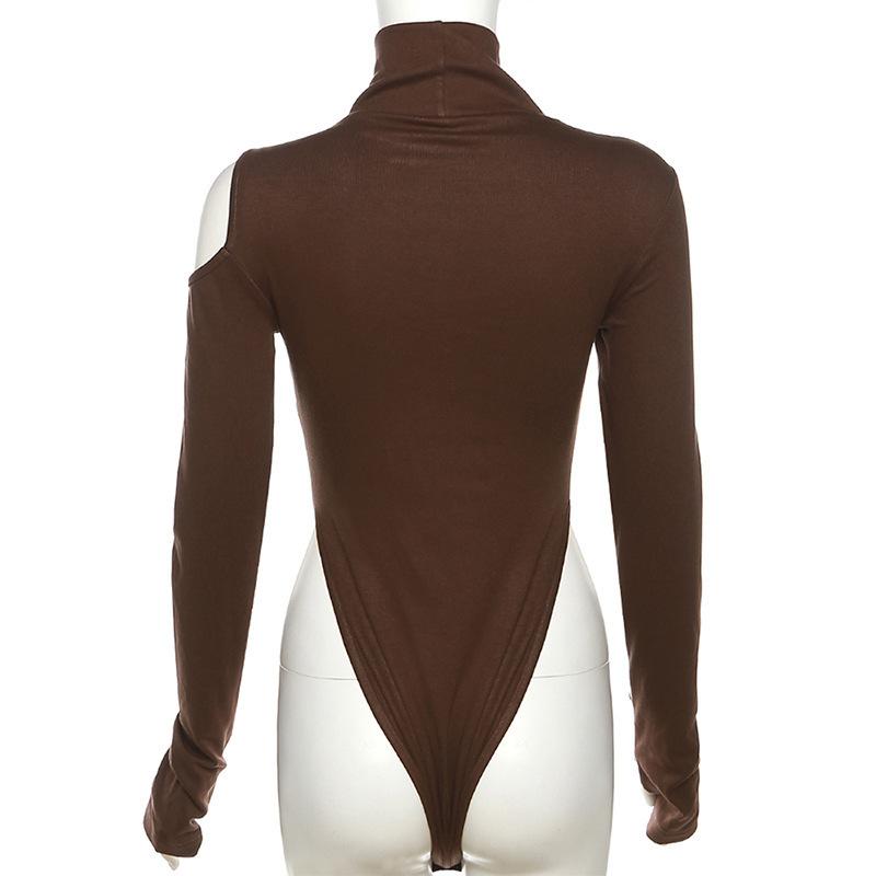 Mono de color sólido de moda con cuello alto, manga larga y hombros descubiertos con diseño de chica sexy europea y americana
