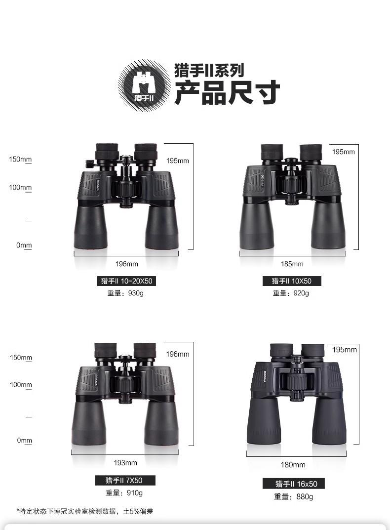 Bo Guan BOSAM Hunter II 7/10/16/10-20x 50 Binoculares de Mano de Aumento Variable Marinos