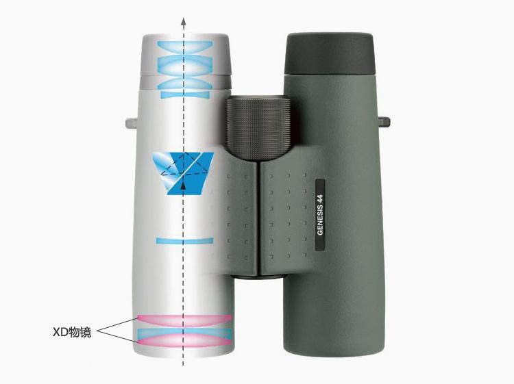 KOWA GENESIS 8.5X44 y 10.5x44 utilizan lentes XD. Cada tubo de lente contiene 2 piezas, un total de 4 lentes XD (lentes de baja dispersión), que pueden mejorar significativamente la aberración cromática de la imagen y hacer que la calidad de la imagen sea más pura. La imagen óptica es muy cercana a la de las lentes de fluorita, lo que hace que su rendimiento sea casi equiparable. En la observación real, se descubrió que su rendimiento de diferencia de color es muy bueno.