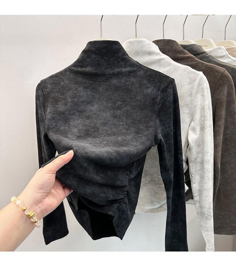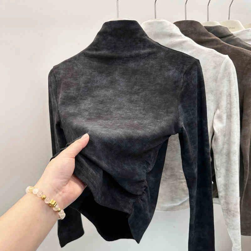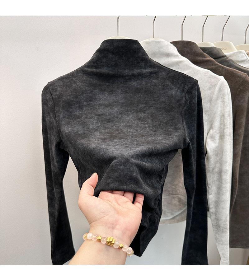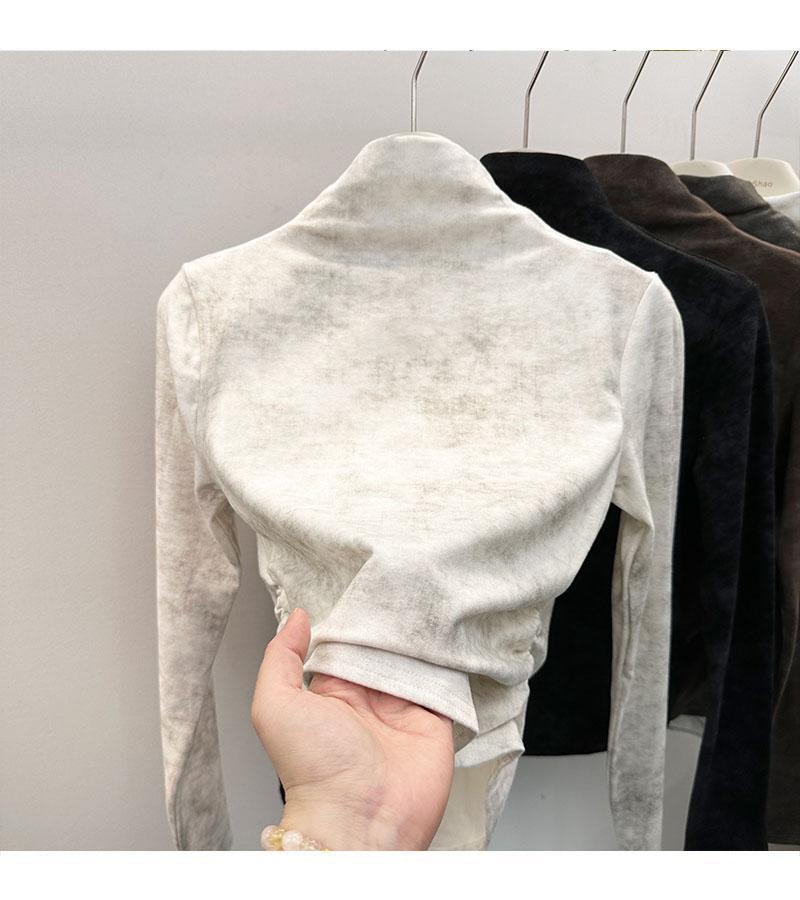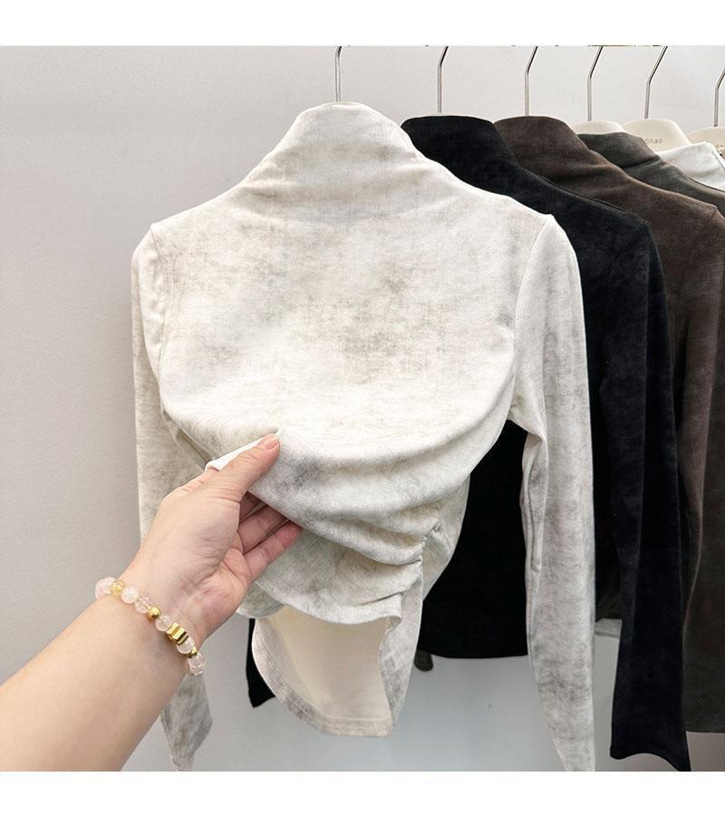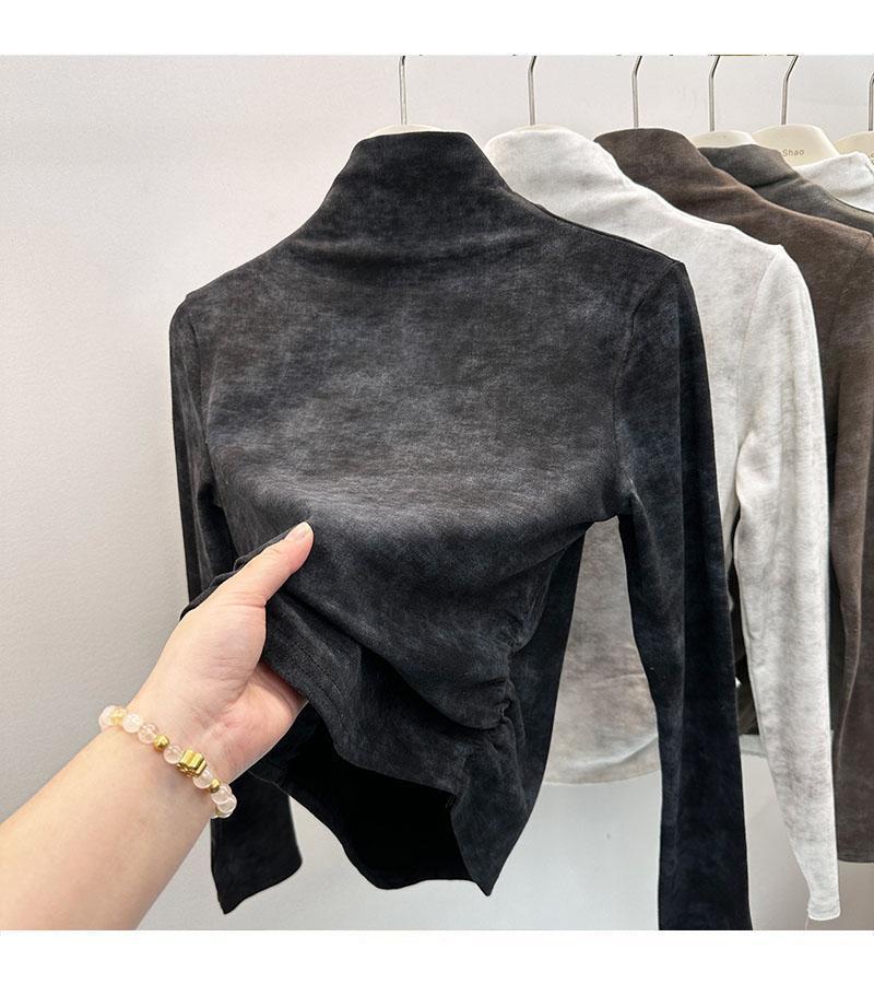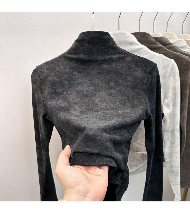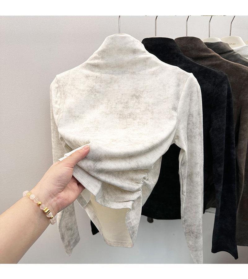 Compra Camiseta de Manga Larga con Cuello Alto y Estampado Tie-Dye para Mujer Tallas Grandes, Nuevo Estilo Primavera y Otoño 2026, Corte Holgado, Adelgazante, Camiseta Básica Forrada de Polar al por mayor en Joom.pro