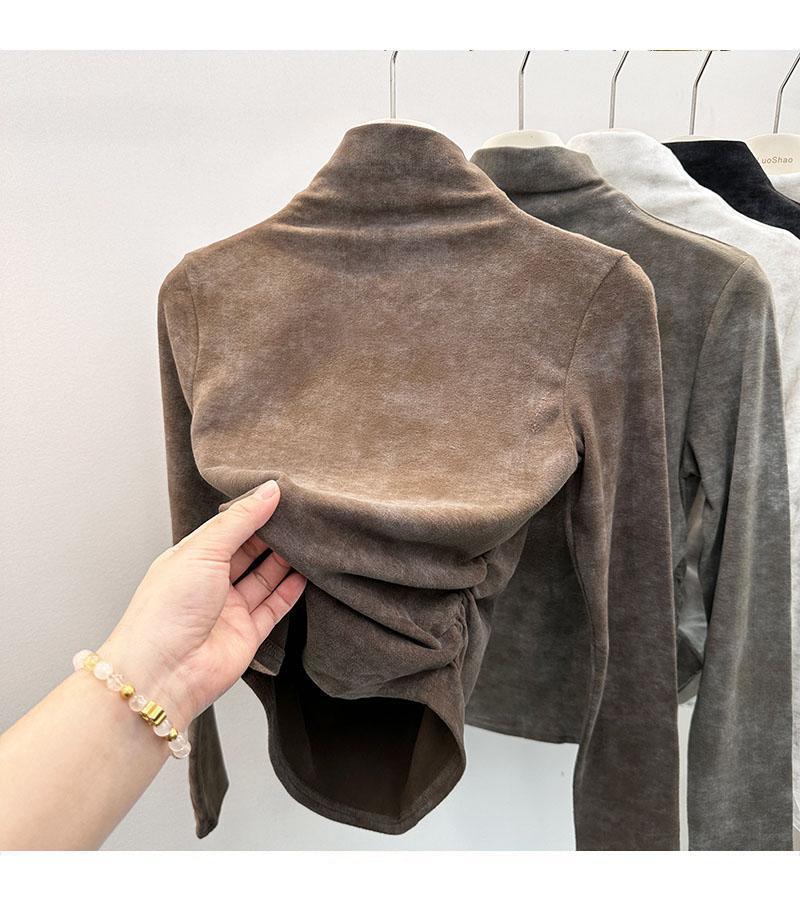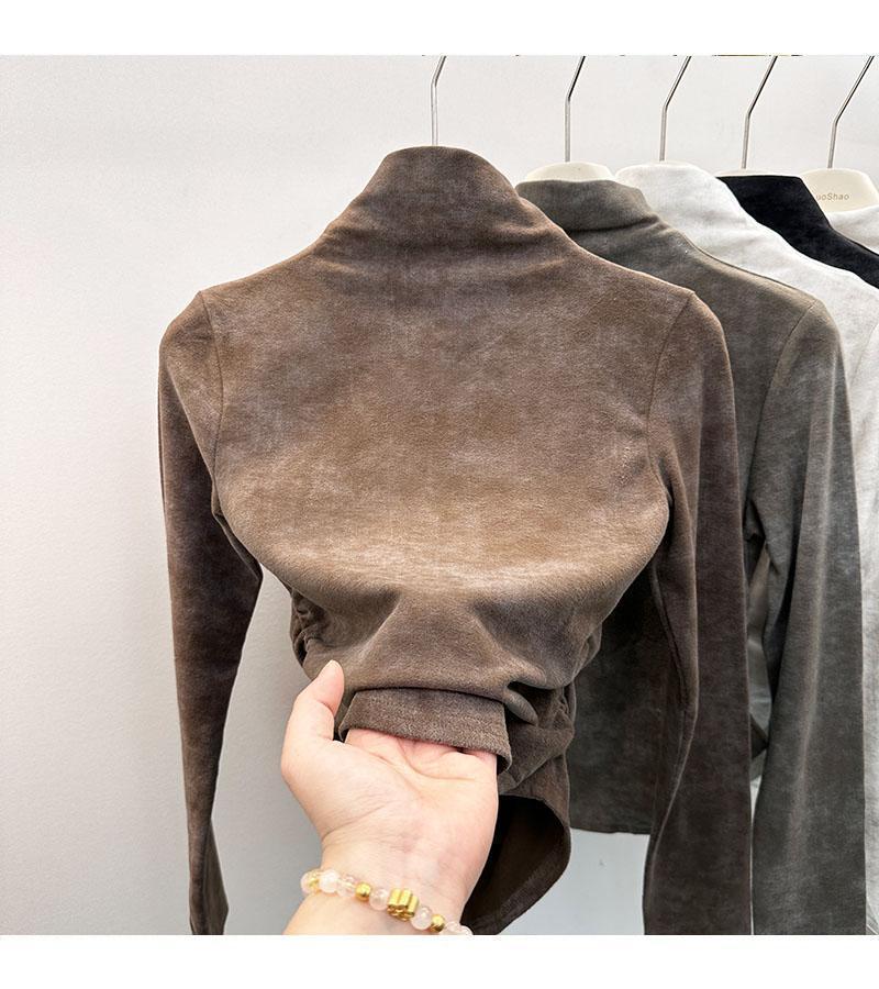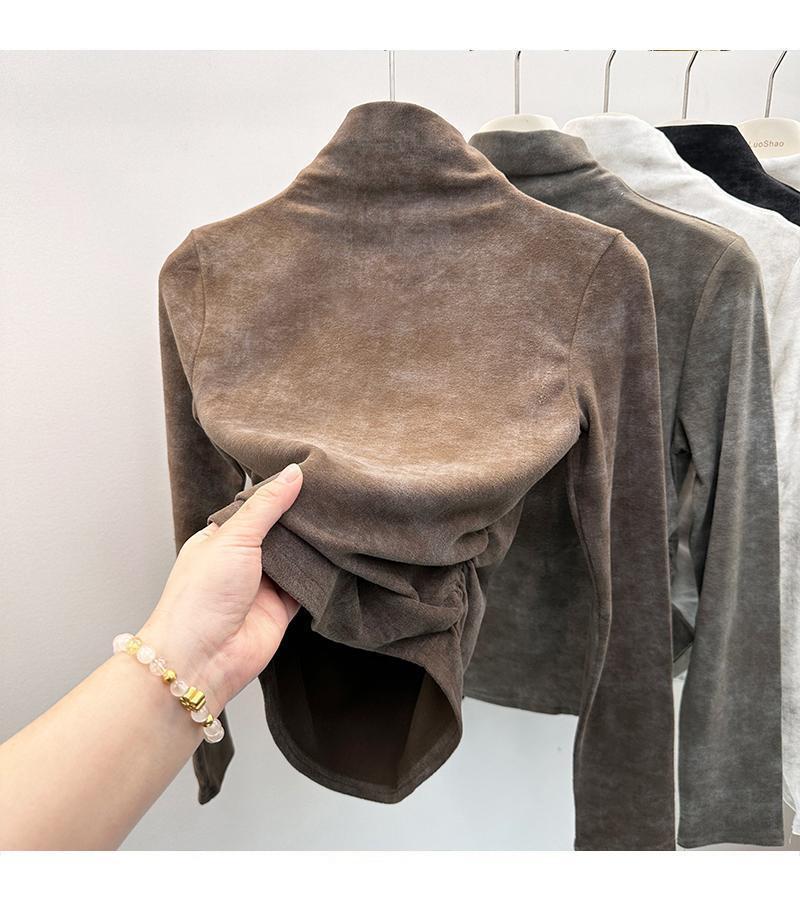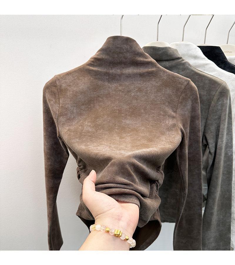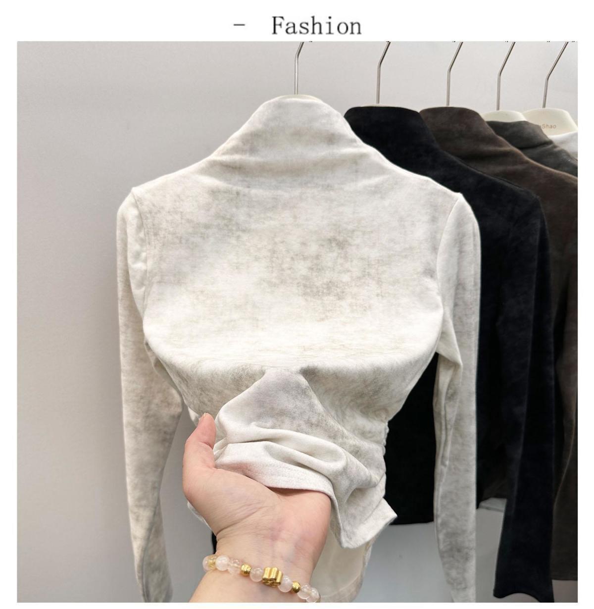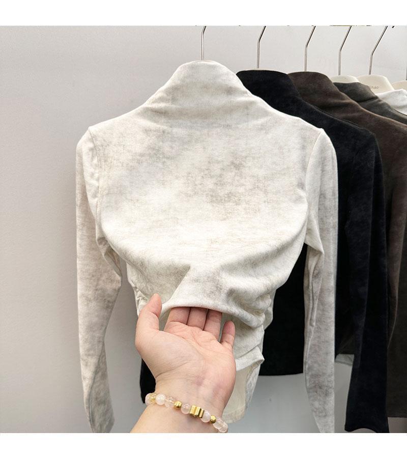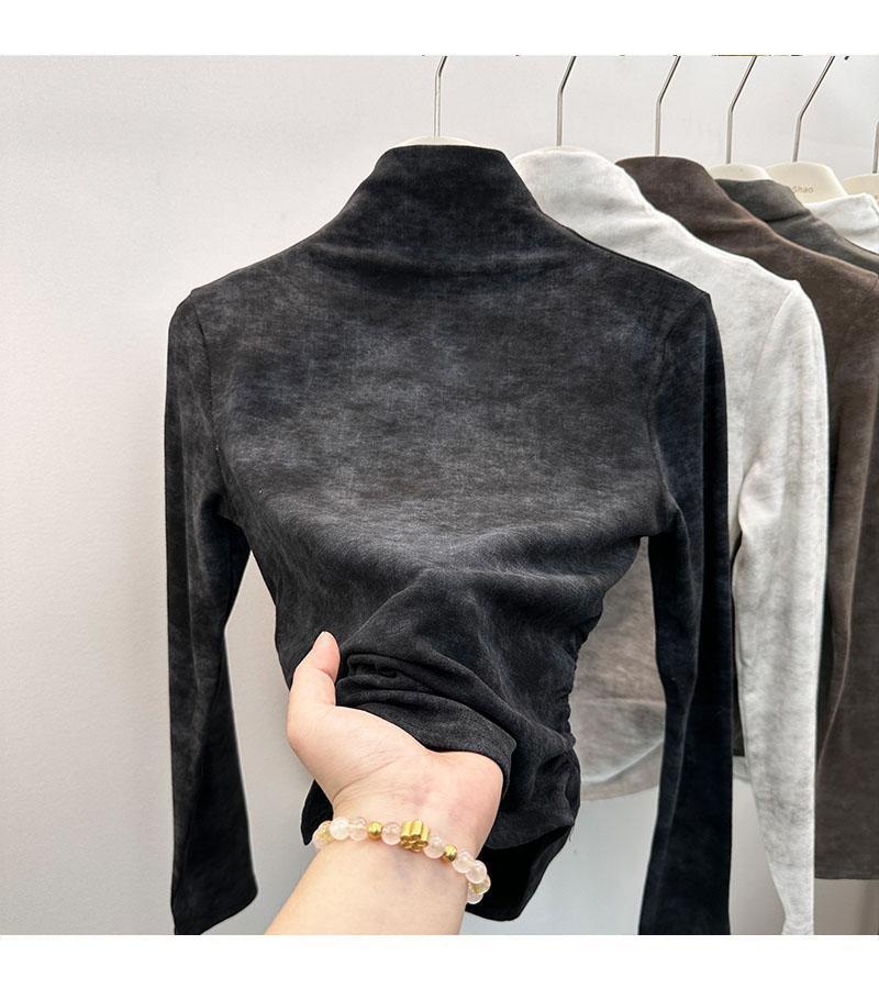 Compra Camiseta de Manga Larga con Cuello Alto y Estampado Tie-Dye para Mujer Tallas Grandes, Nuevo Estilo Primavera y Otoño 2026, Corte Holgado, Adelgazante, Camiseta Básica Forrada de Polar al por mayor en Joom.pro