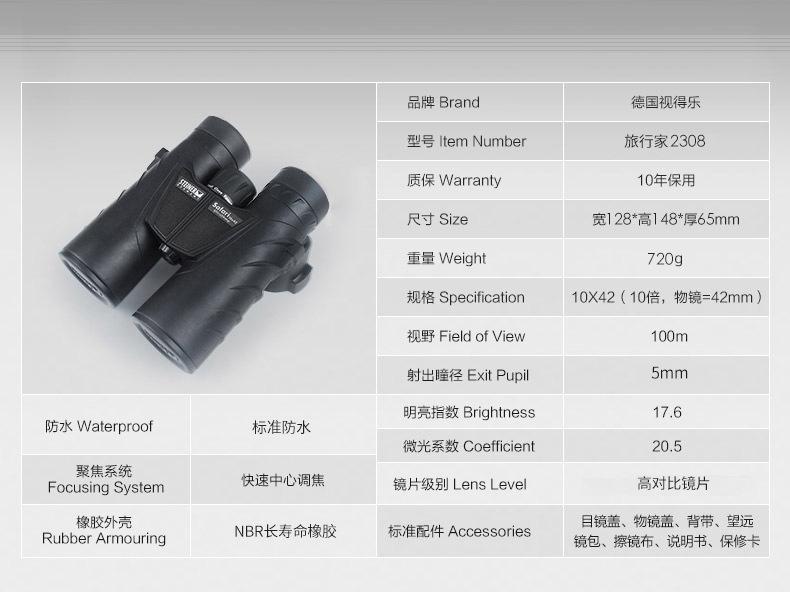 Binoculares HD de mano para exteriores a prueba de agua y bajo nivel de luz nocturna German Steiner Sidel 2308 10x 42