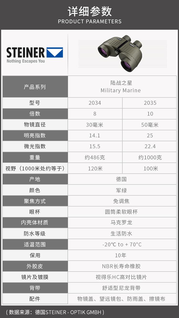 Binoculares portátiles impermeables STEINER Sidel 2034 8x 30 2035 10x 50 HD para poca luz