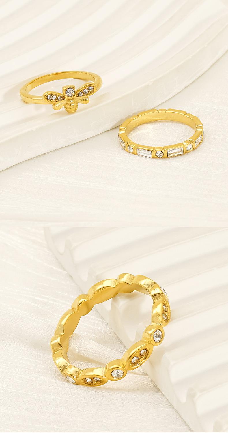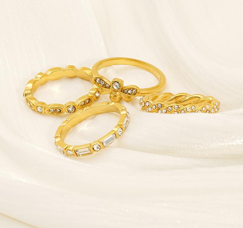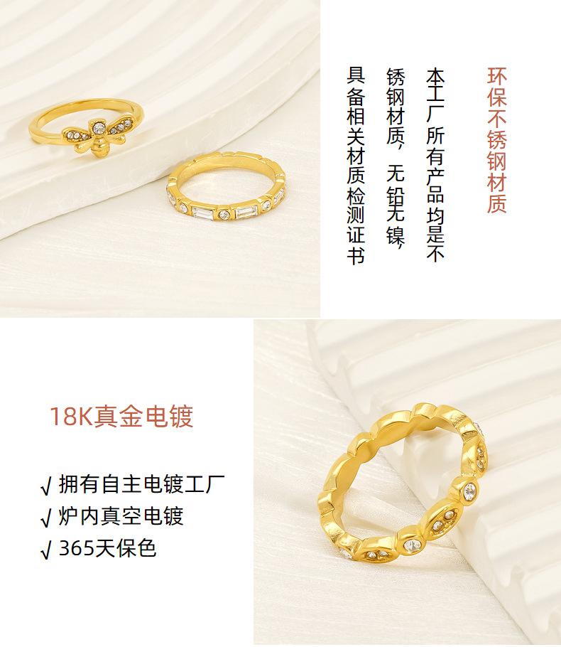 Anillo de diamantes de acero inoxidable de moda, nuevo, personalidad versátil, acero de titanio de 18 quilates, estilo de lujo ligero, anillo abierto estilo celebridad.