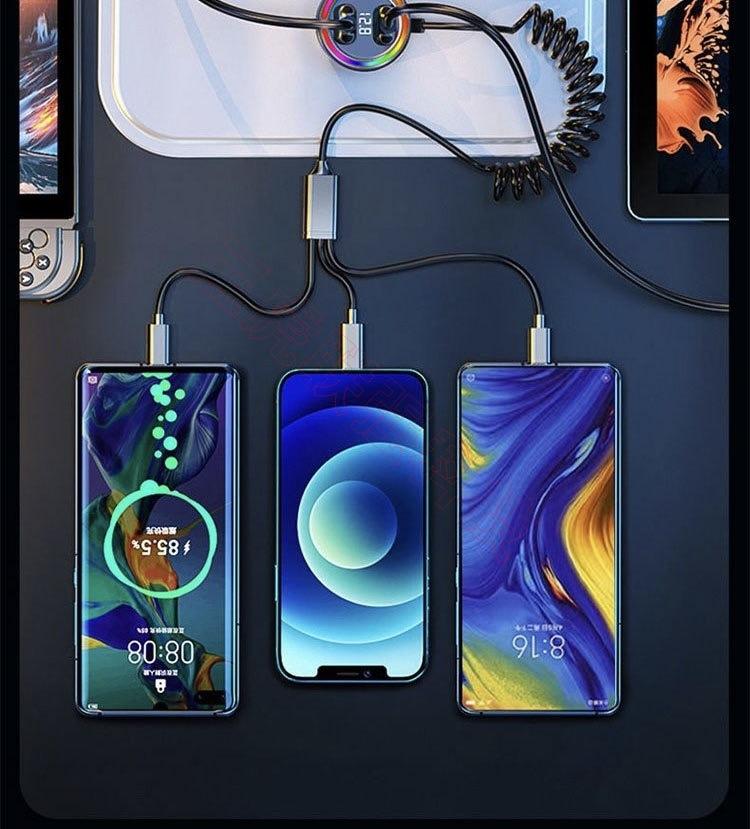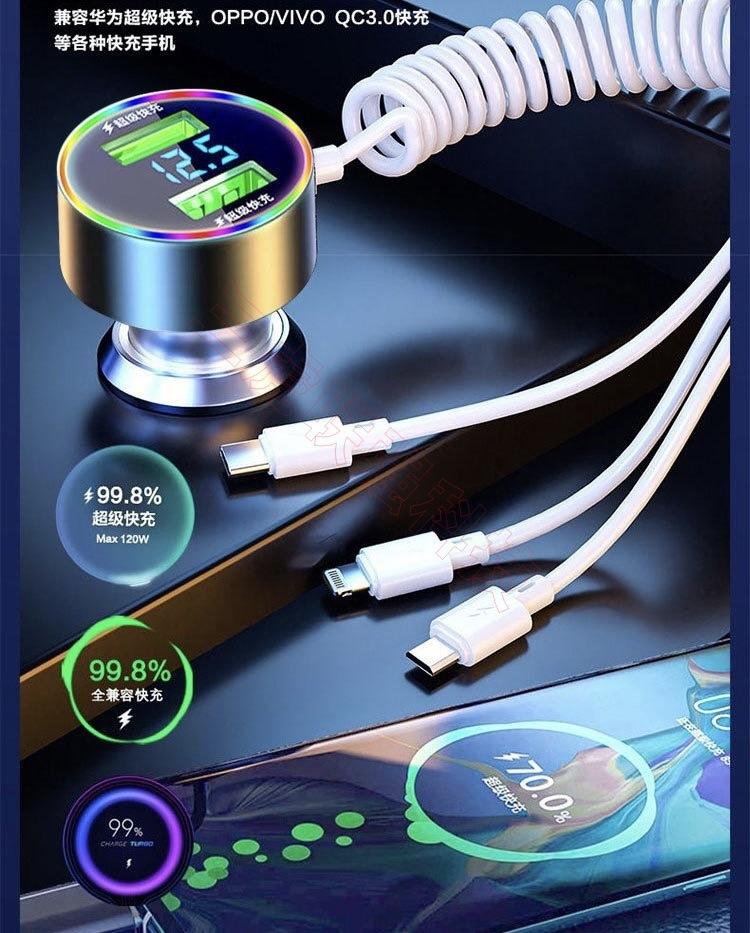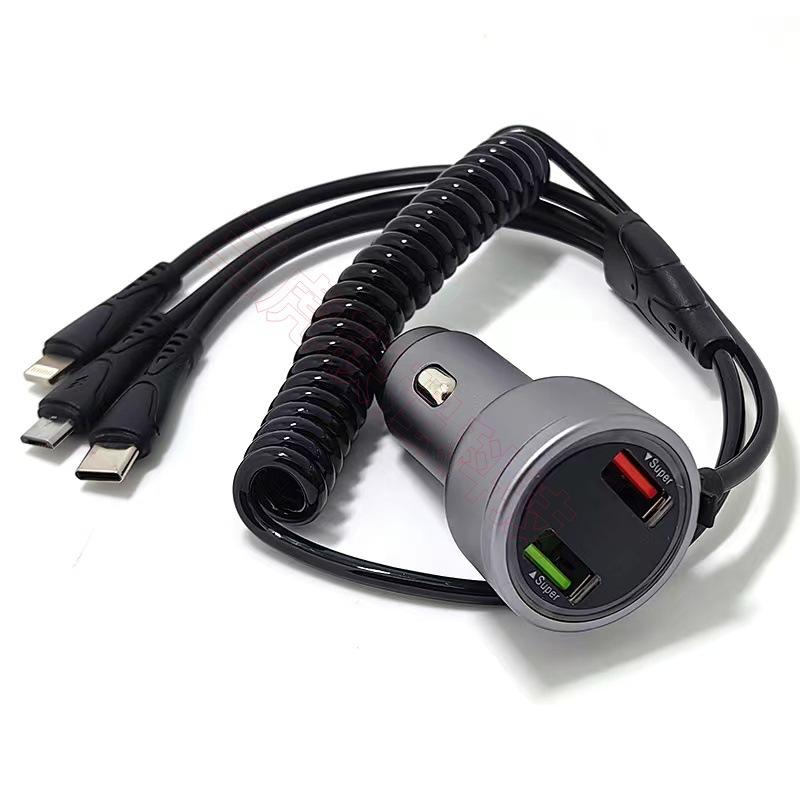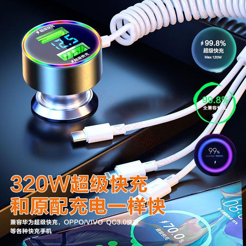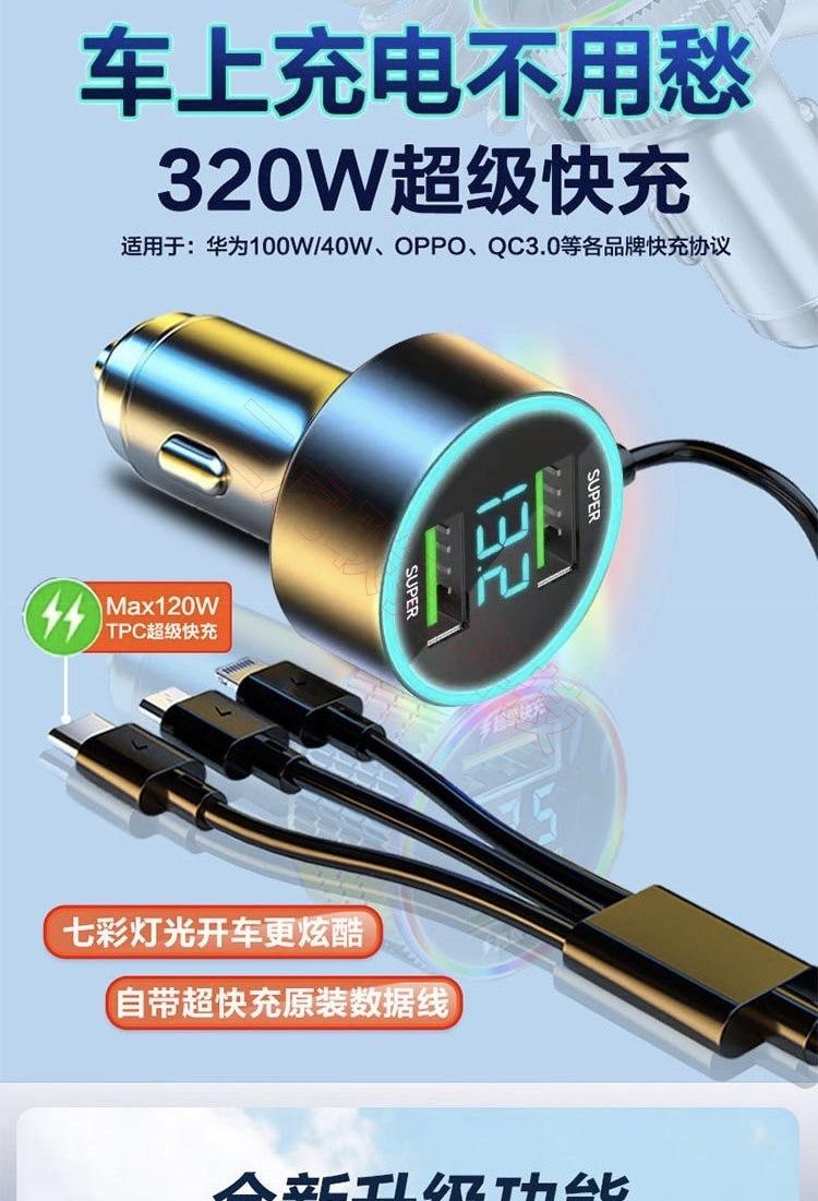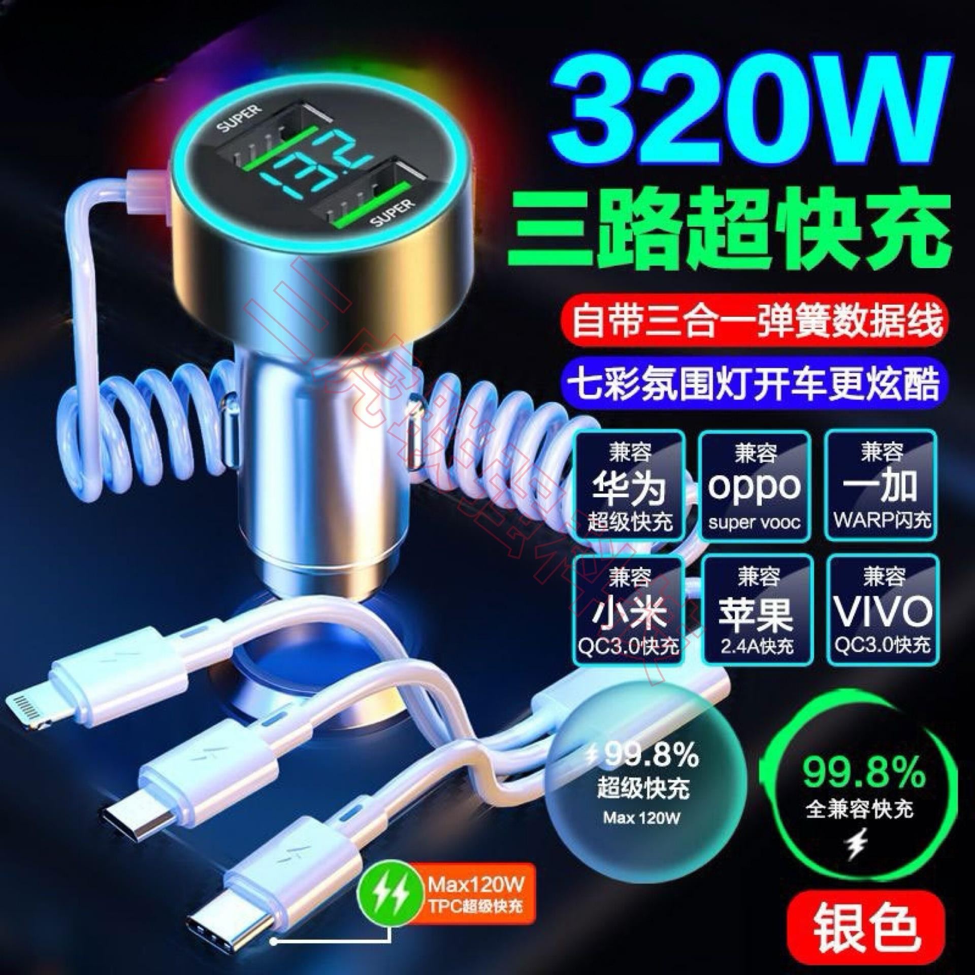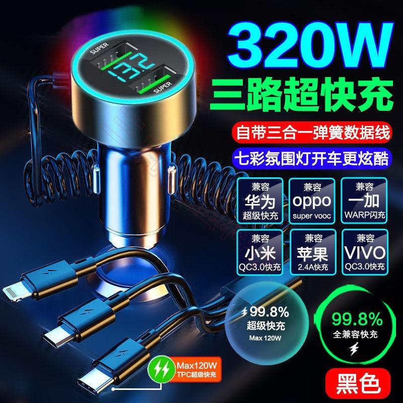 Cargador de teléfono móvil para coche 320W carga súper rápida viene con encendedor de cigarrillos para coche multifunción tres en uno cabeza de bala