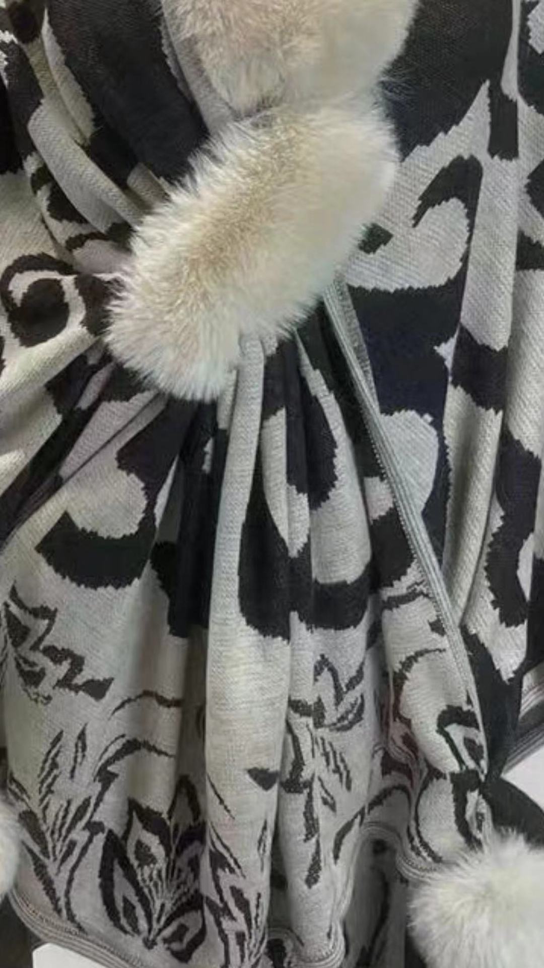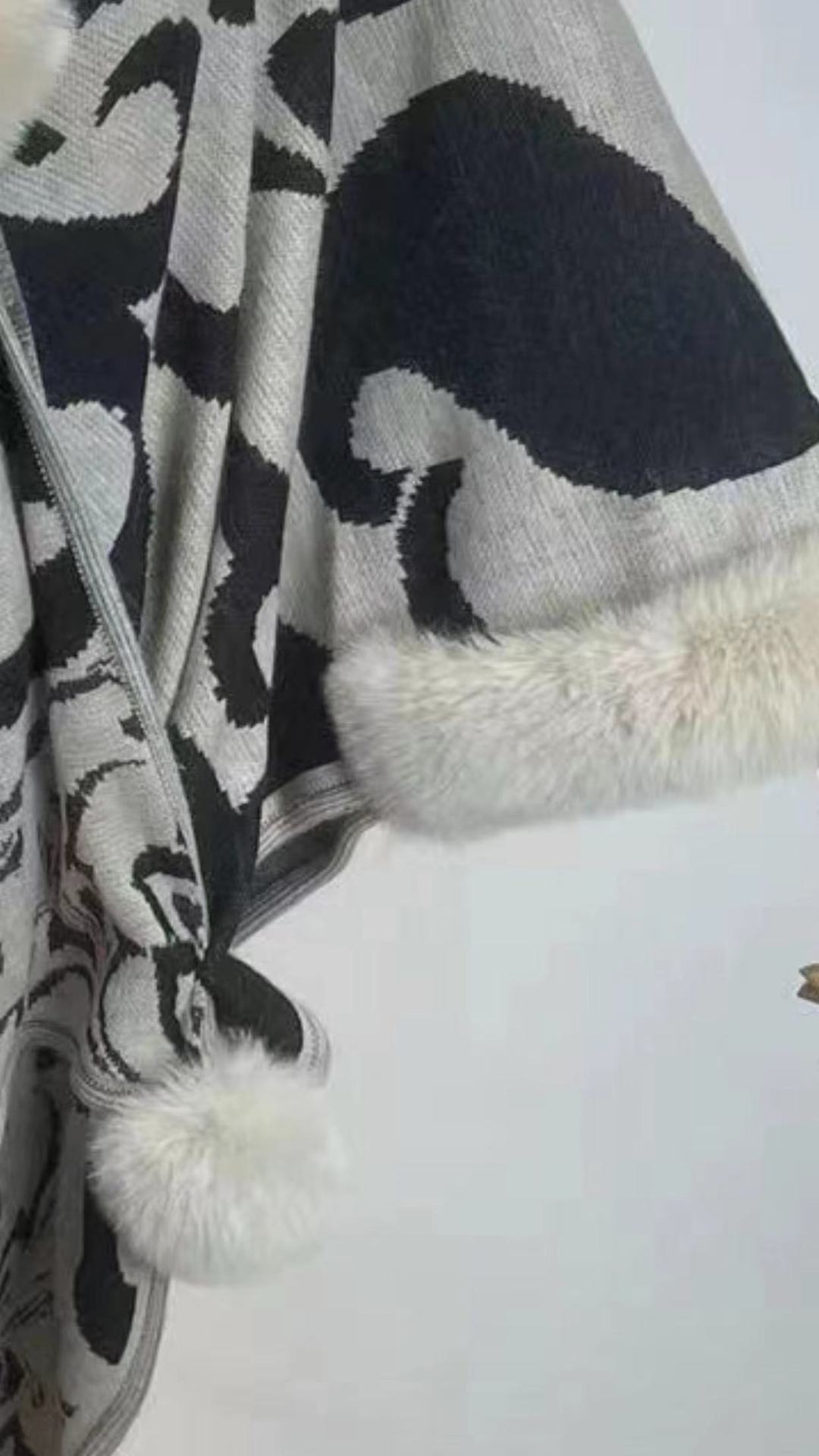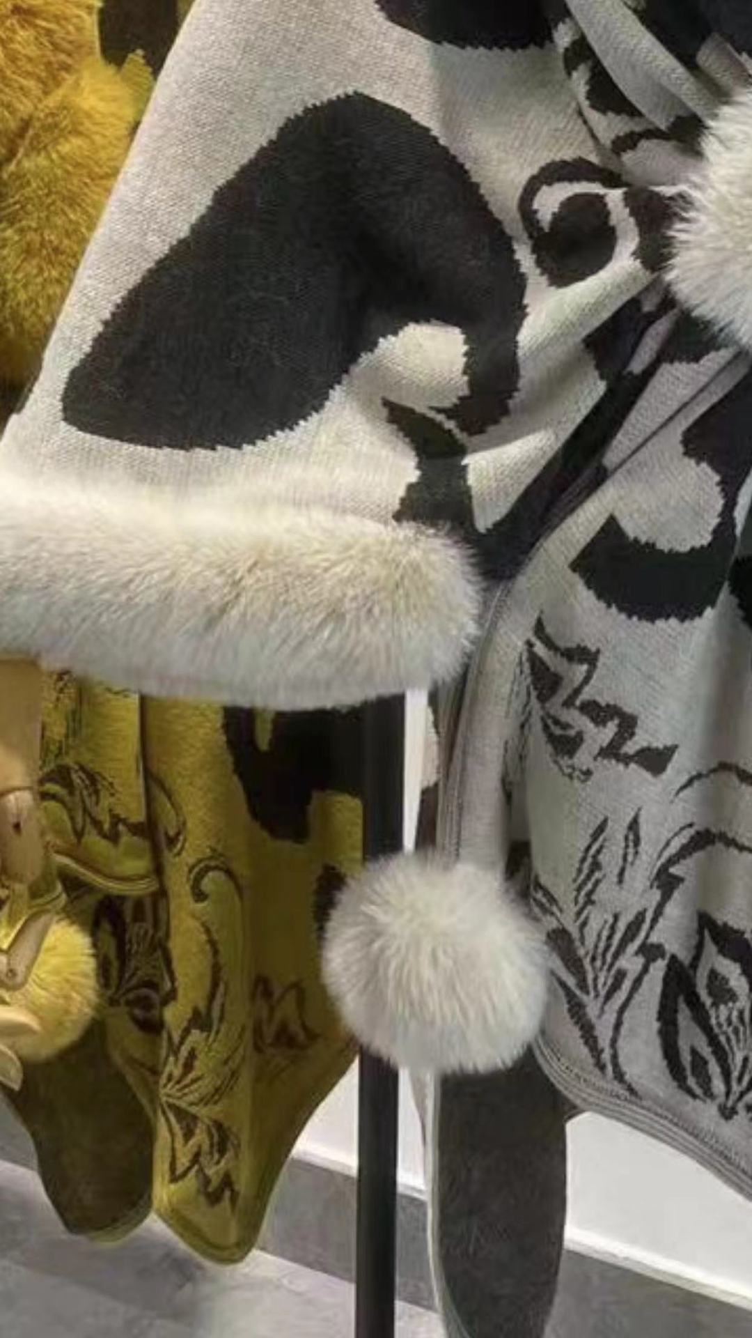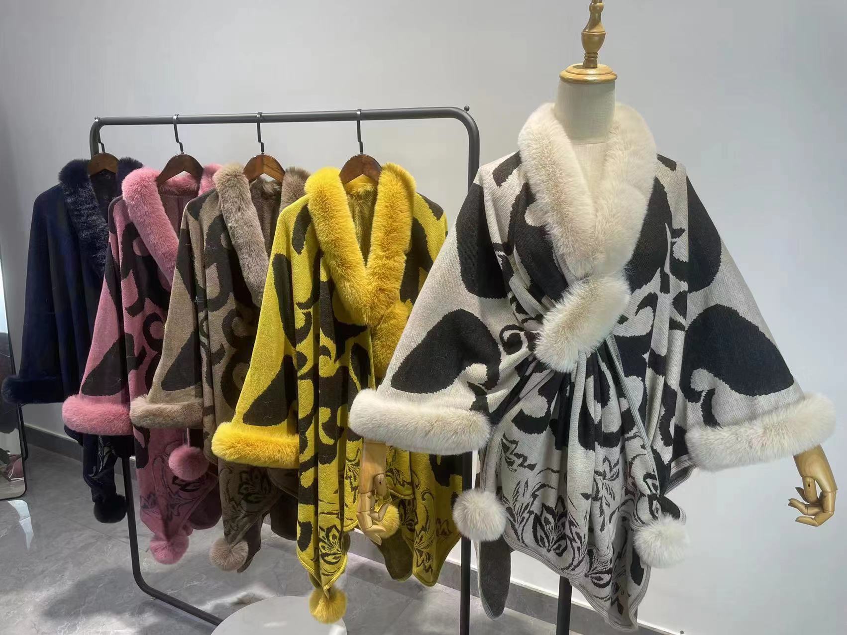 Capa para Mujer de Exportación Transfronteriza de Amazon 2025 Otoño e Invierno Nueva Color de Contraste Cuello de Piel Gruesa Cálida Chal Grande Europeo y Americano