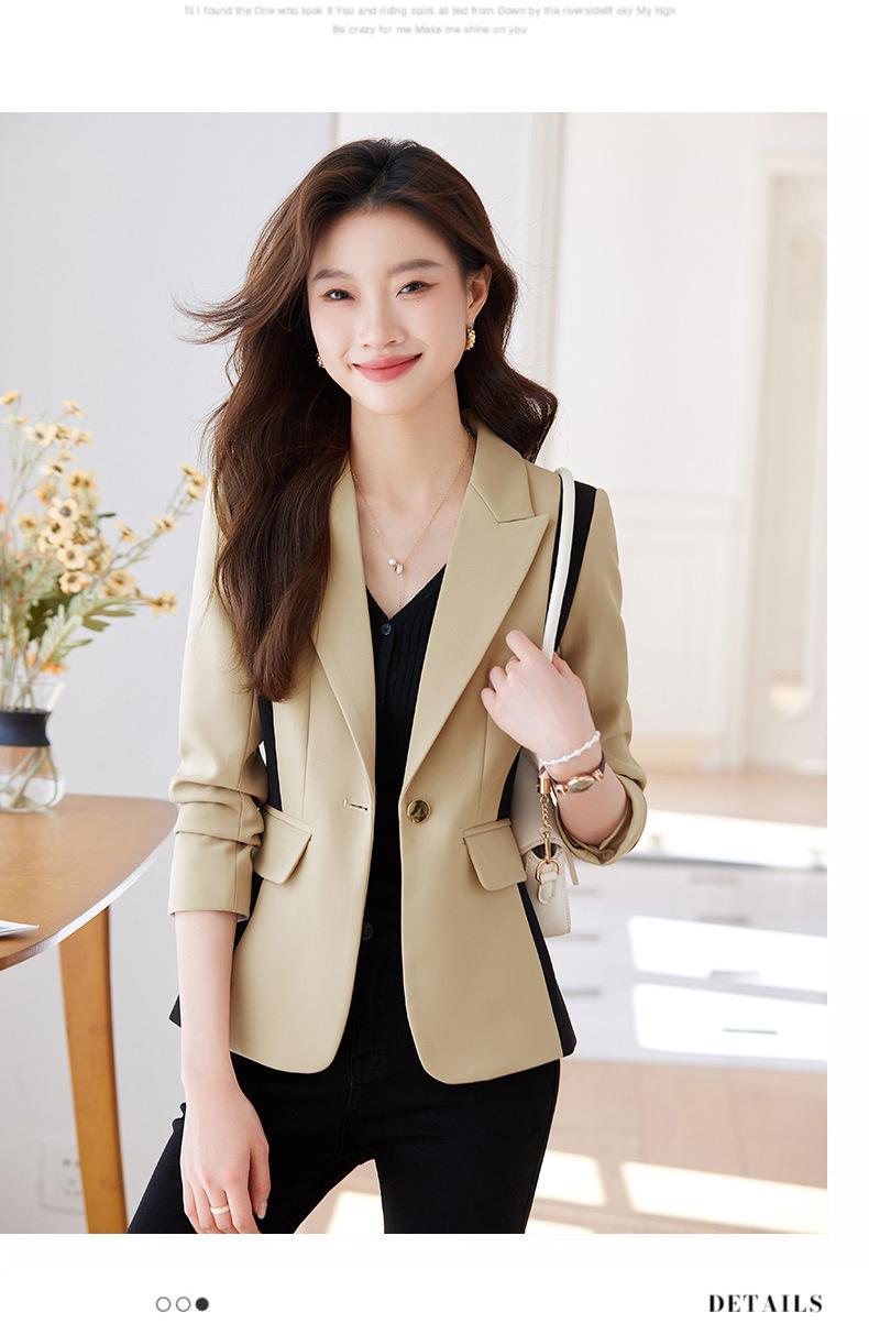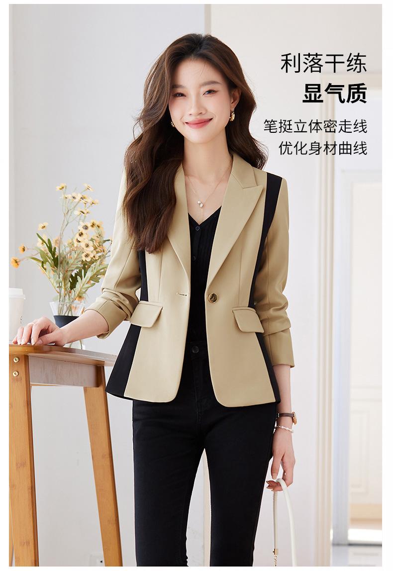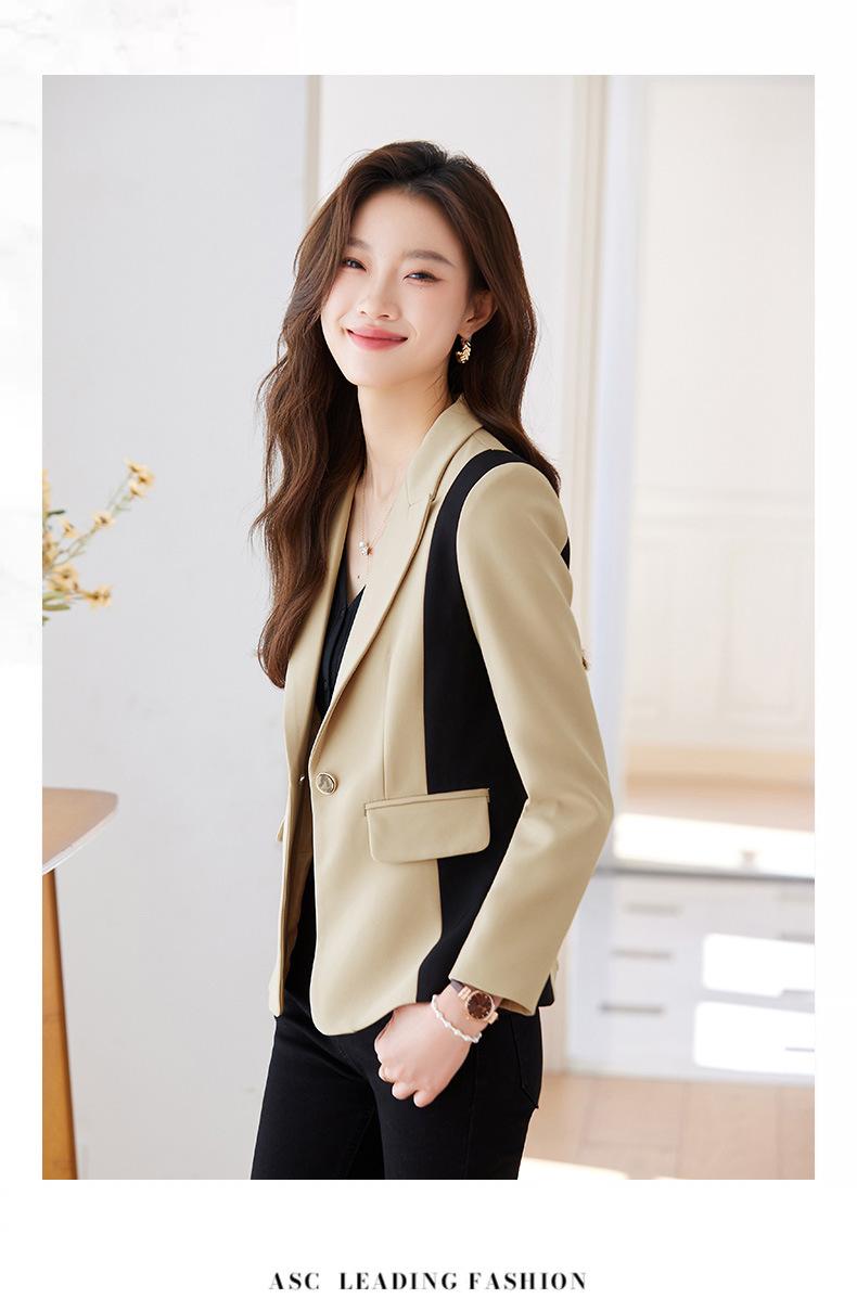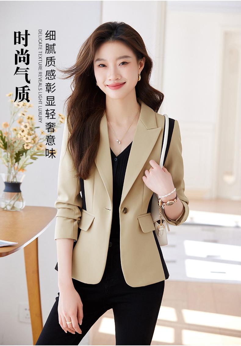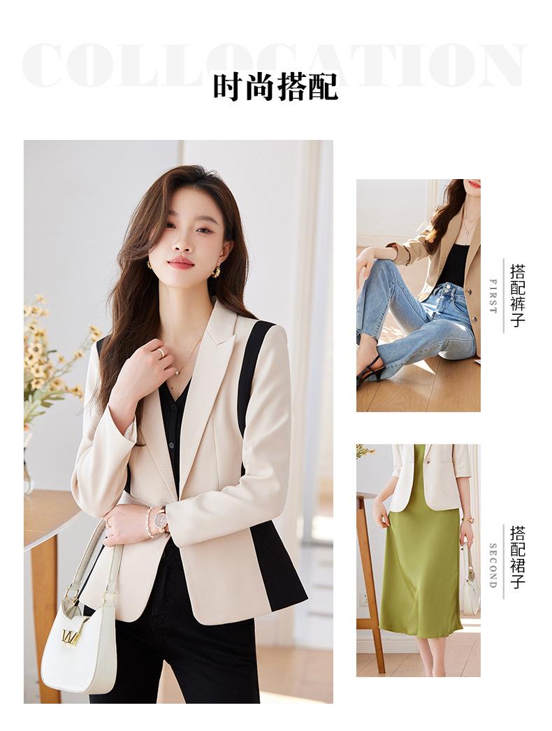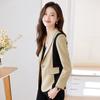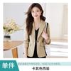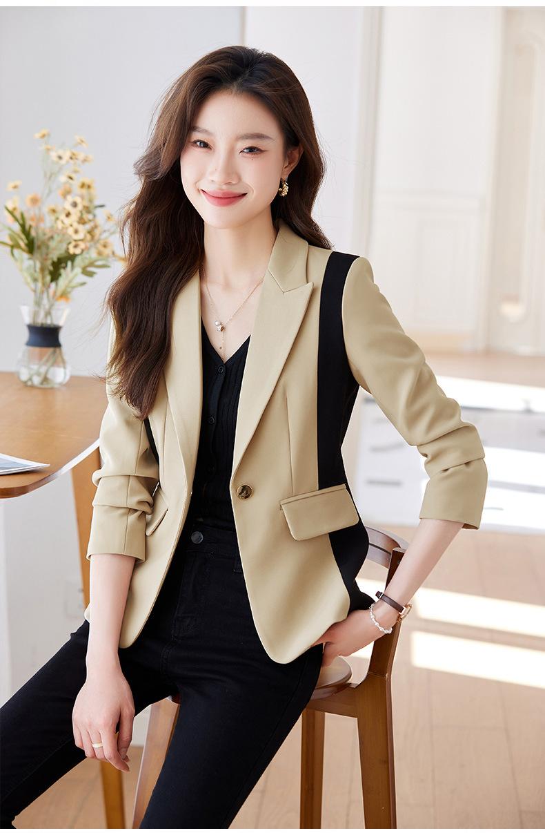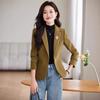 2024 Primavera y Otoño Nuevo Manga Larga Color Contraste Caqui Chaqueta Cuello Saco Pequeño Traje para Mujer Profesional Casual Moda Temperamento