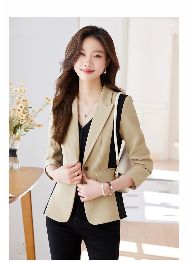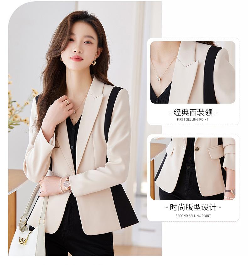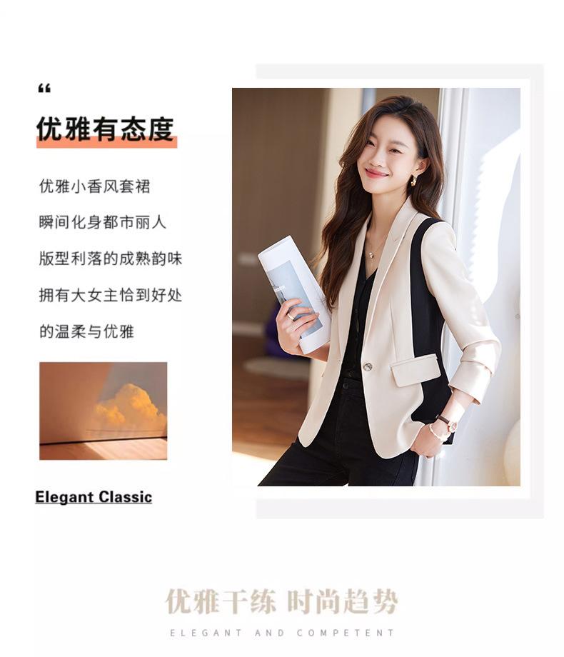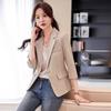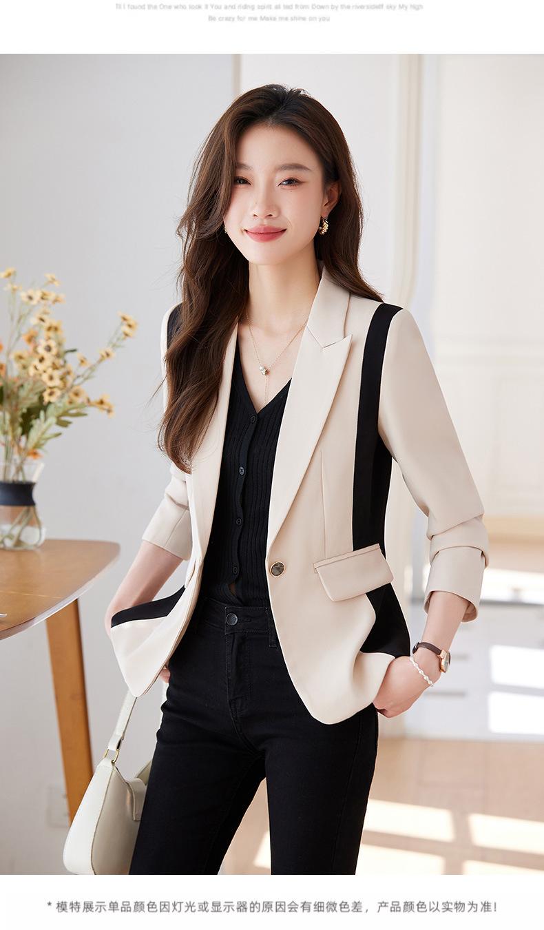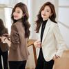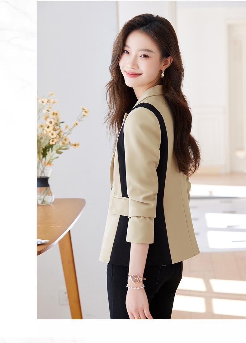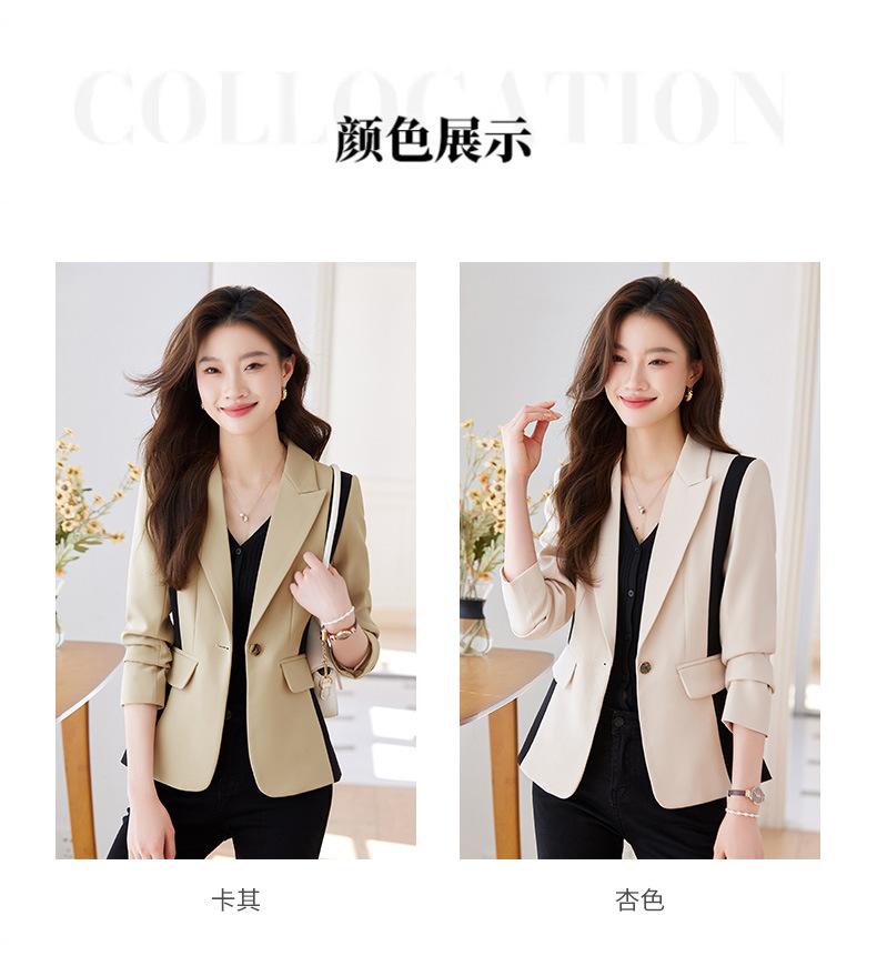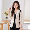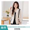 2024 Primavera y Otoño Nuevo Manga Larga Color Contraste Caqui Chaqueta Cuello Saco Pequeño Traje para Mujer Profesional Casual Moda Temperamento