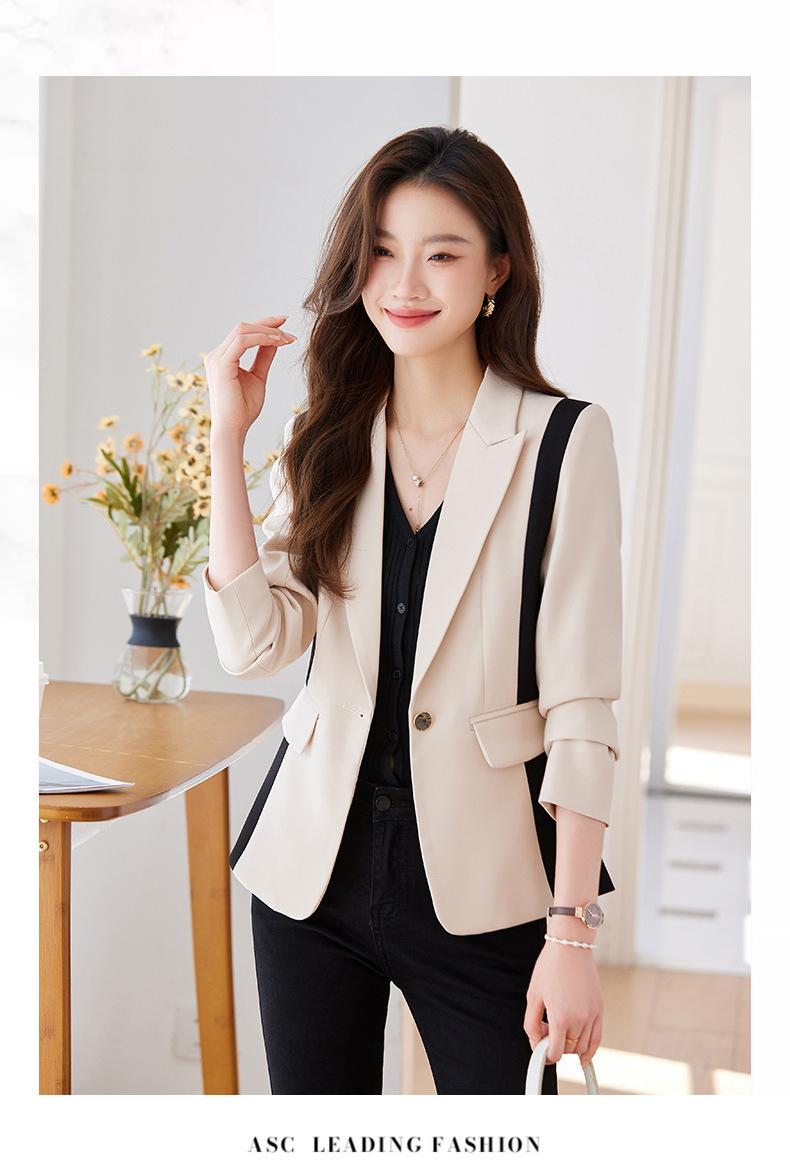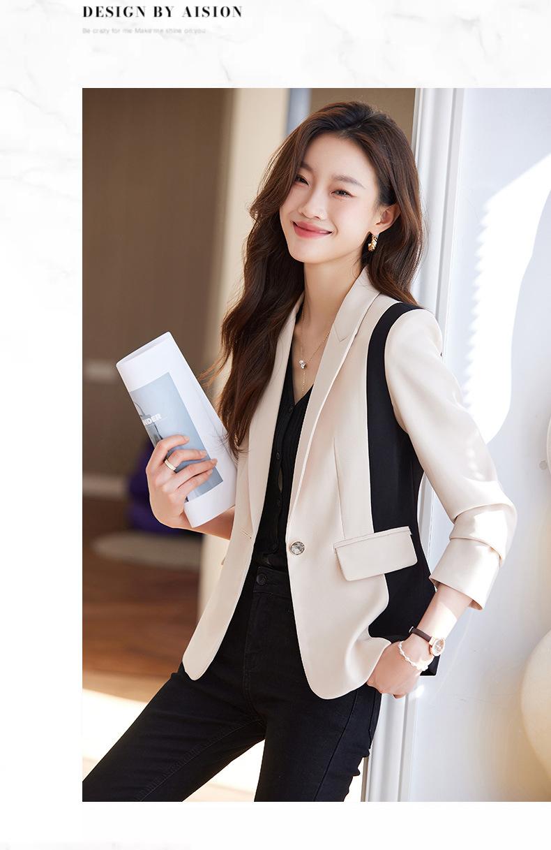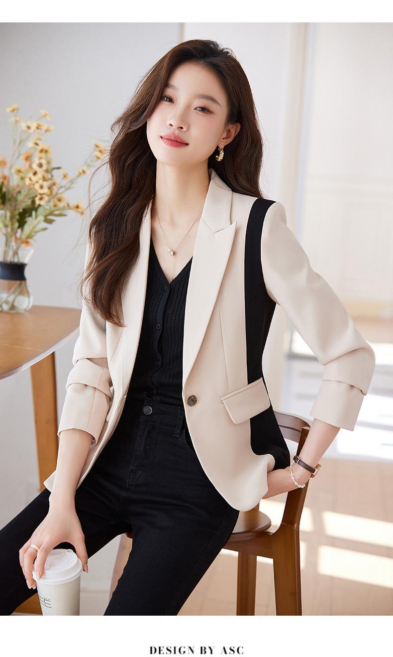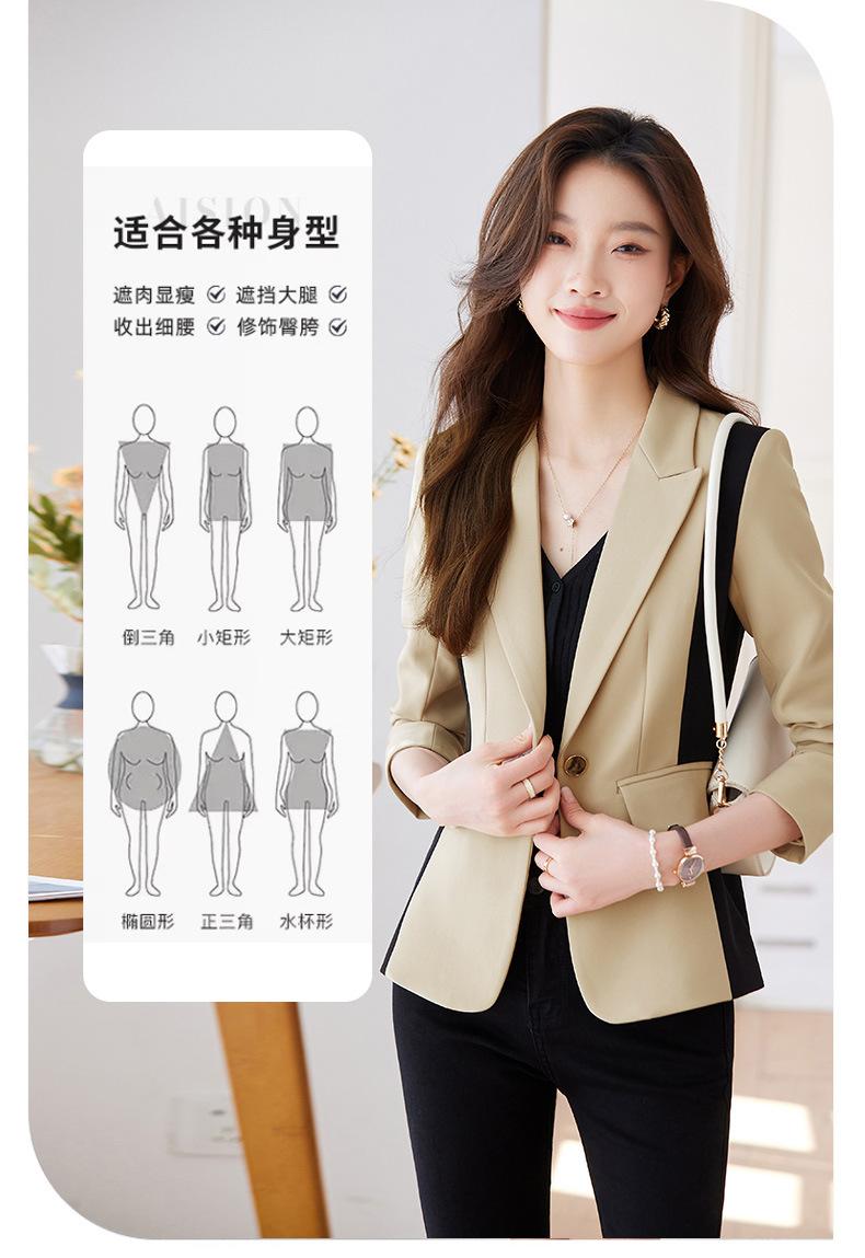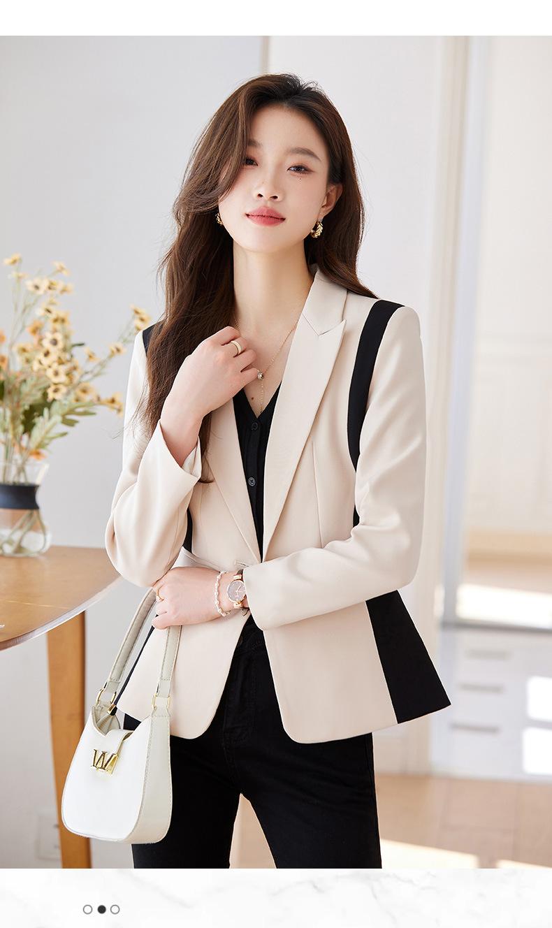 2024 Primavera y Otoño Nuevo Manga Larga Color Contraste Caqui Chaqueta Cuello Saco Pequeño Traje para Mujer Profesional Casual Moda Temperamento