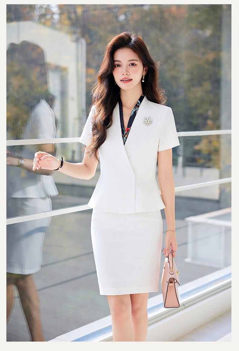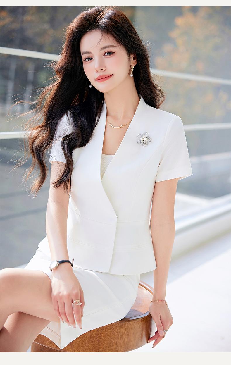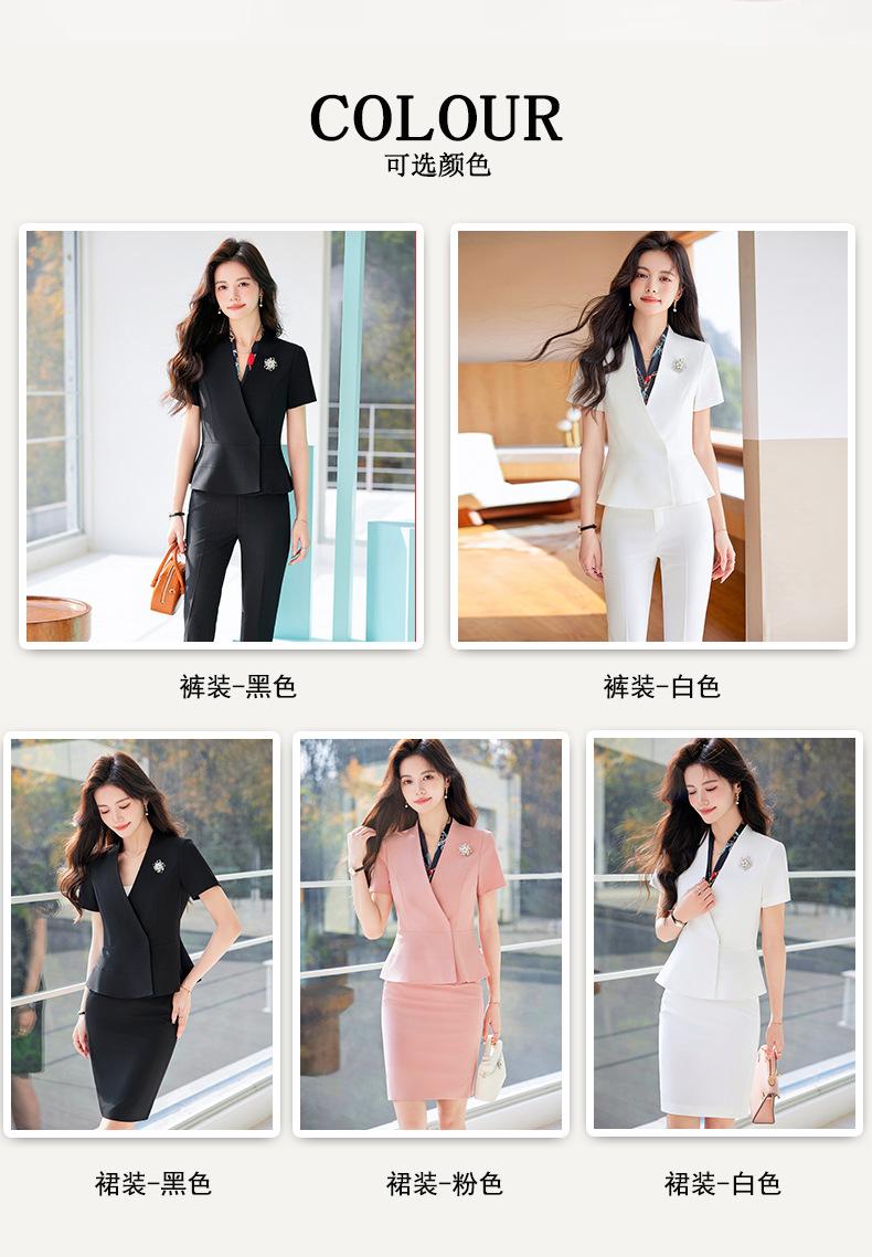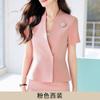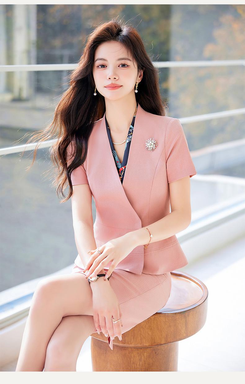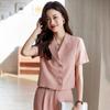 2024 Verano nuevo rosa manga corta chaqueta cuello sastre traje pequeño pantalón falda profesional casual traje de dos piezas para mujer