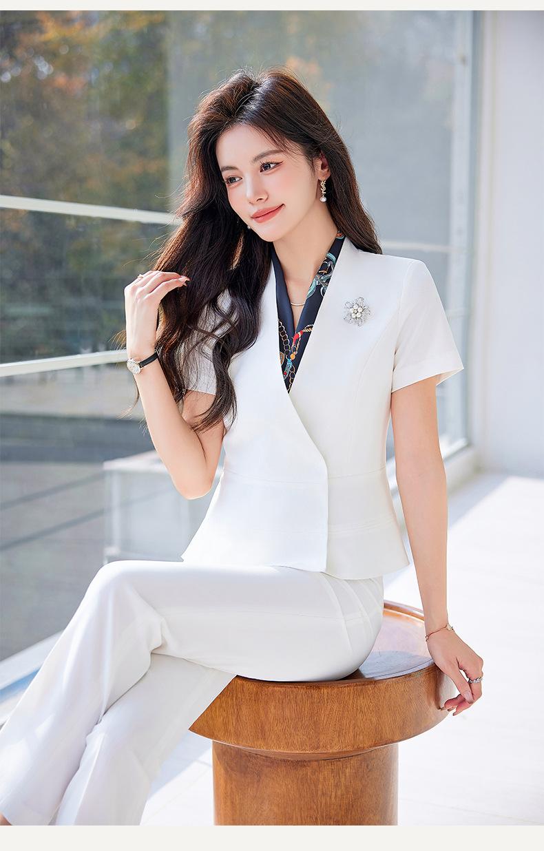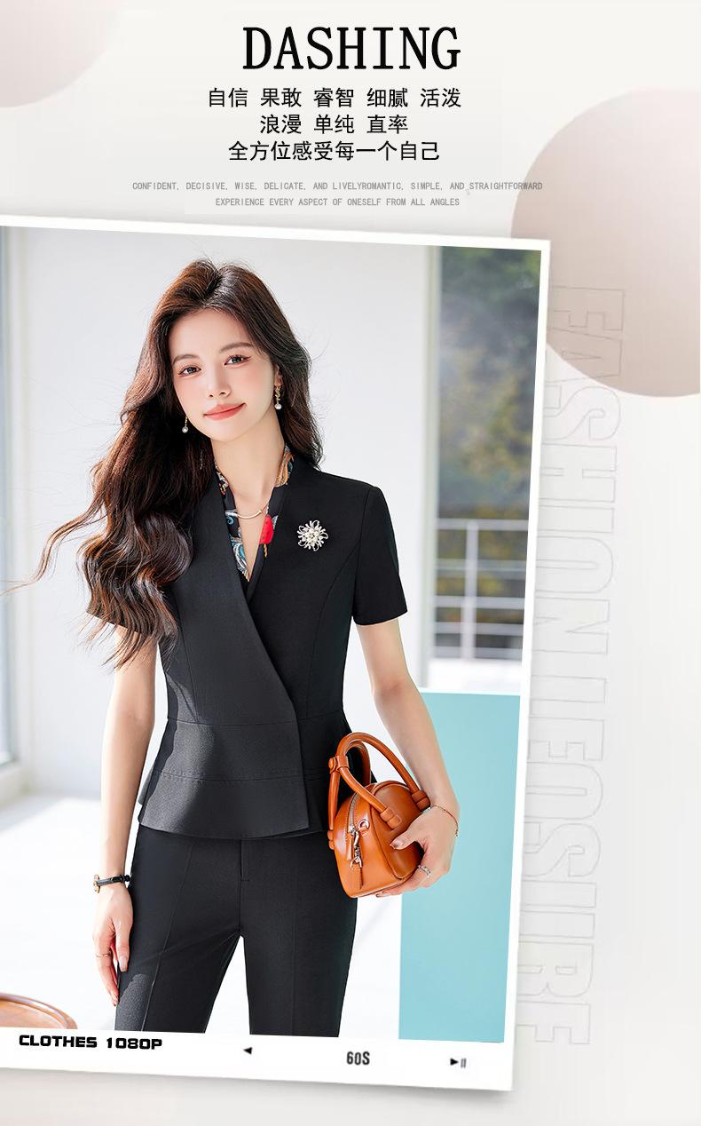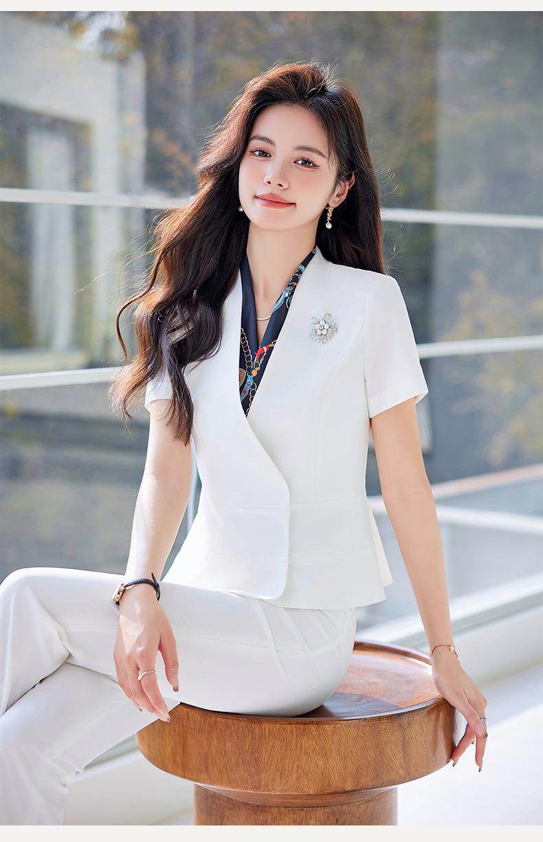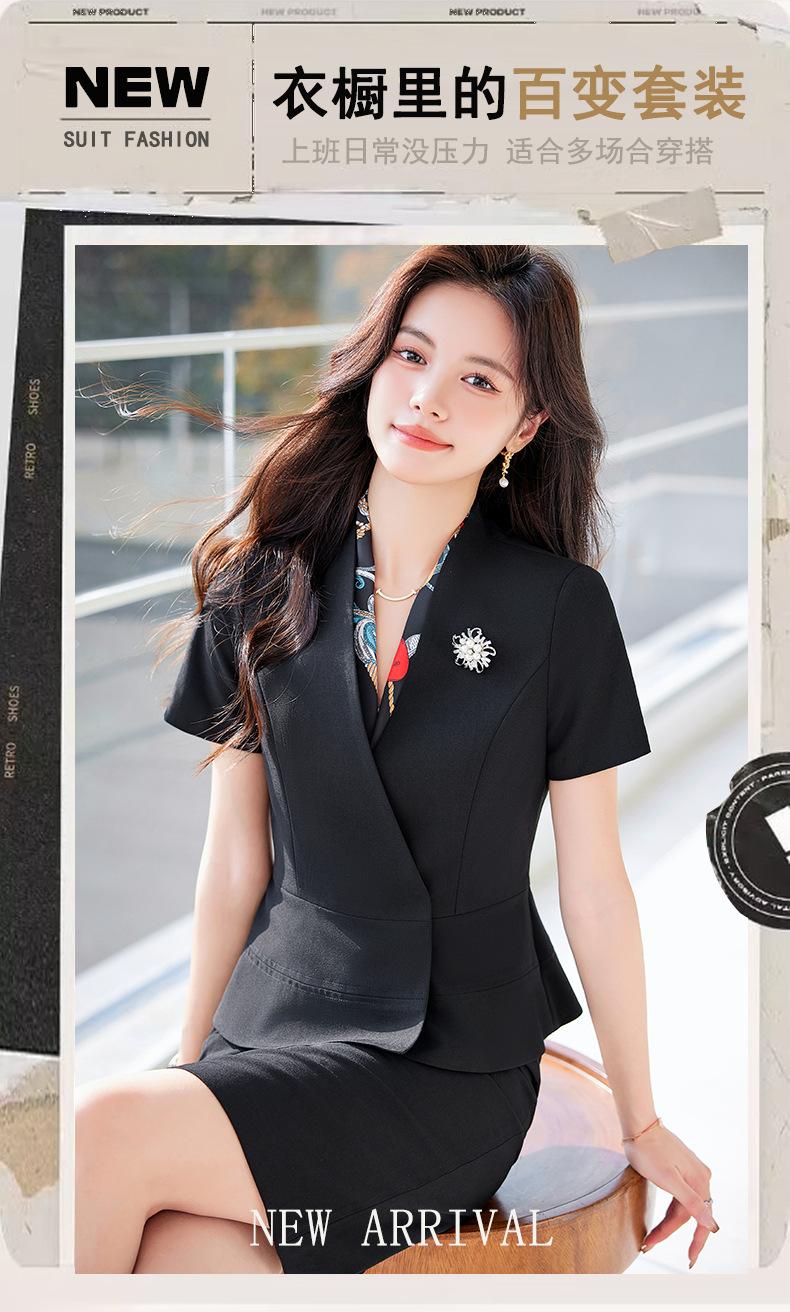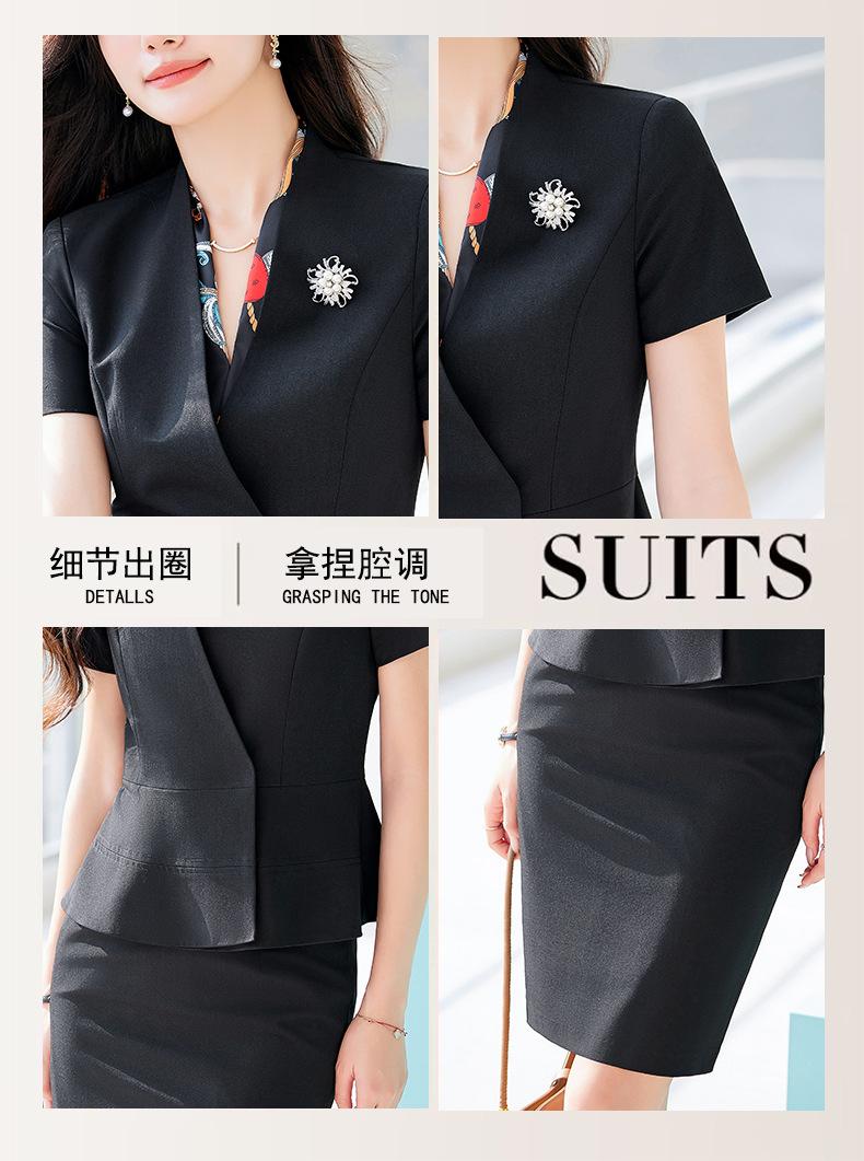 2024 Verano nuevo rosa manga corta chaqueta cuello sastre traje pequeño pantalón falda profesional casual traje de dos piezas para mujer