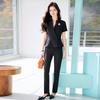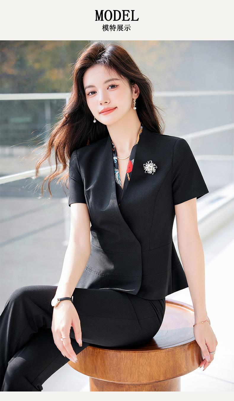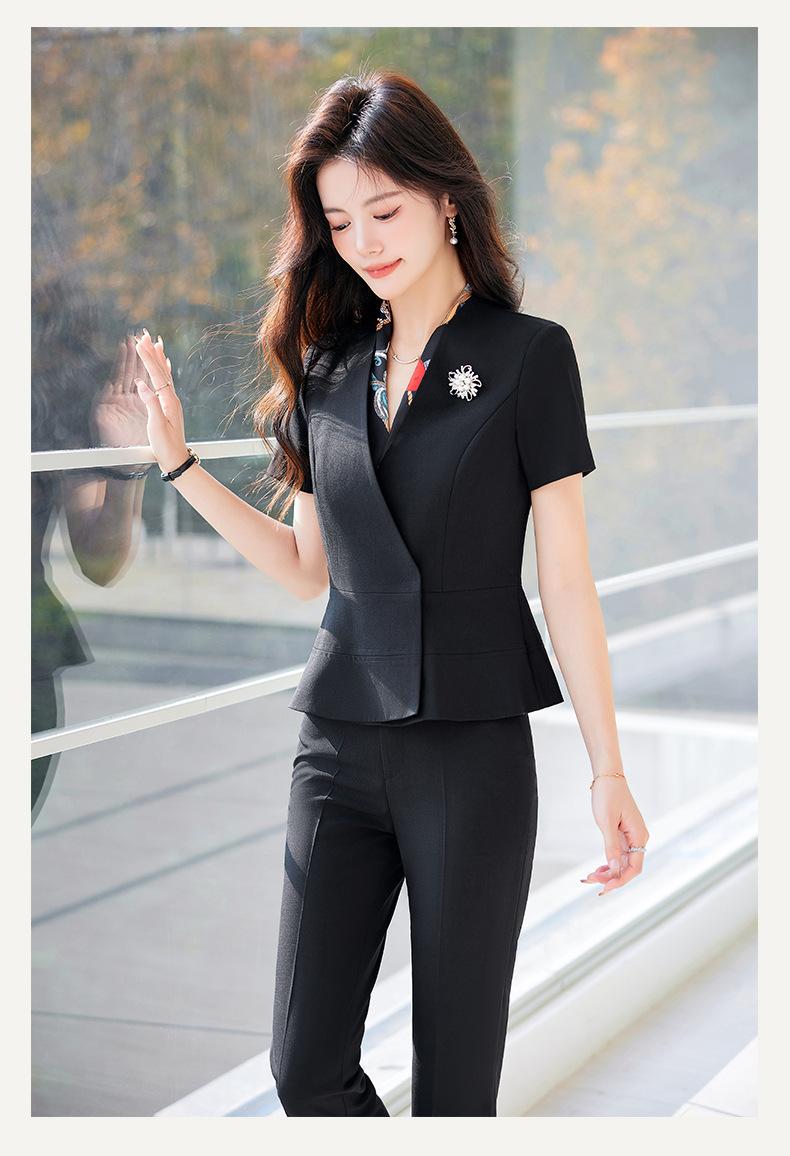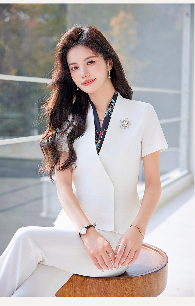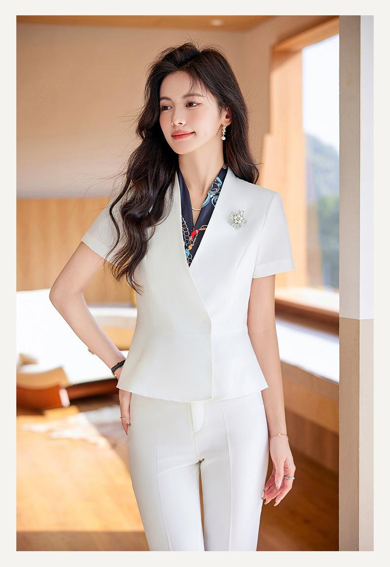 2024 Verano nuevo rosa manga corta chaqueta cuello sastre traje pequeño pantalón falda profesional casual traje de dos piezas para mujer