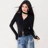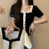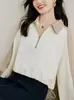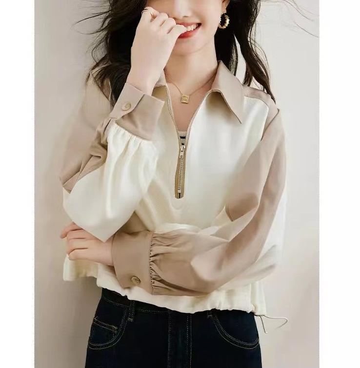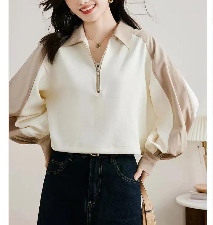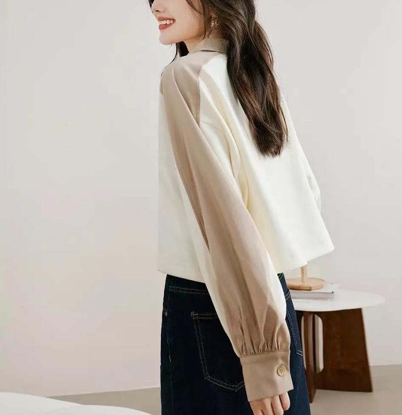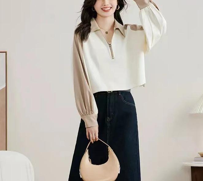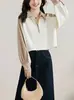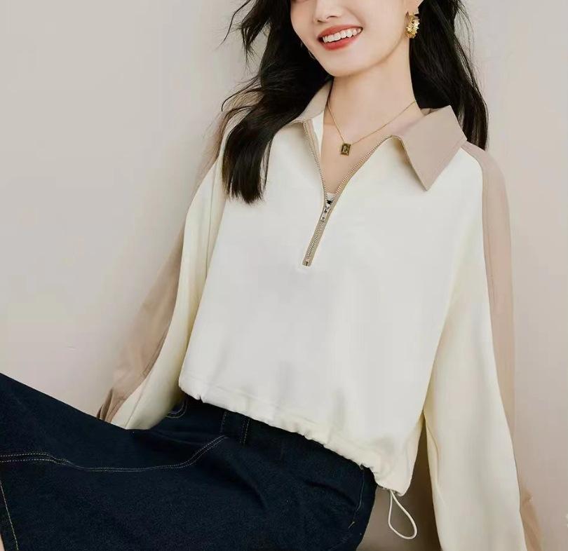 2025 Primavera y Otoño Nuevo Temperamento para Ir al Trabajo Más Fácil de Combinar Sudadera Corta Slim Parche de Color en Contraste Diseño Nicho Top para Mujer