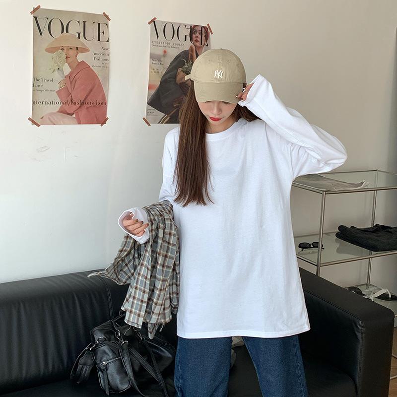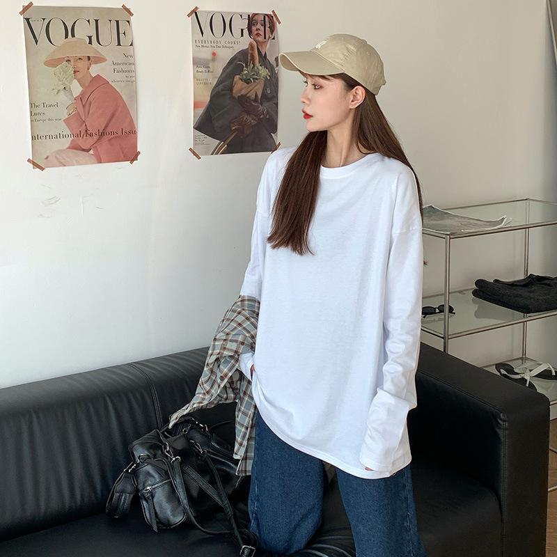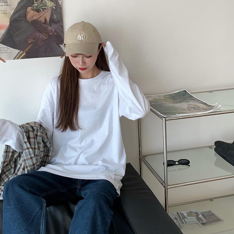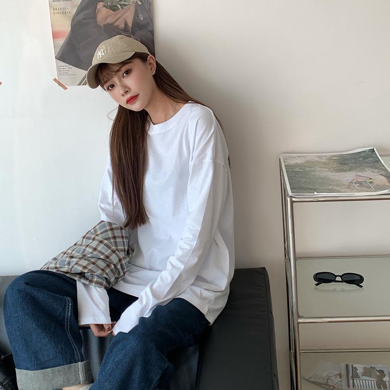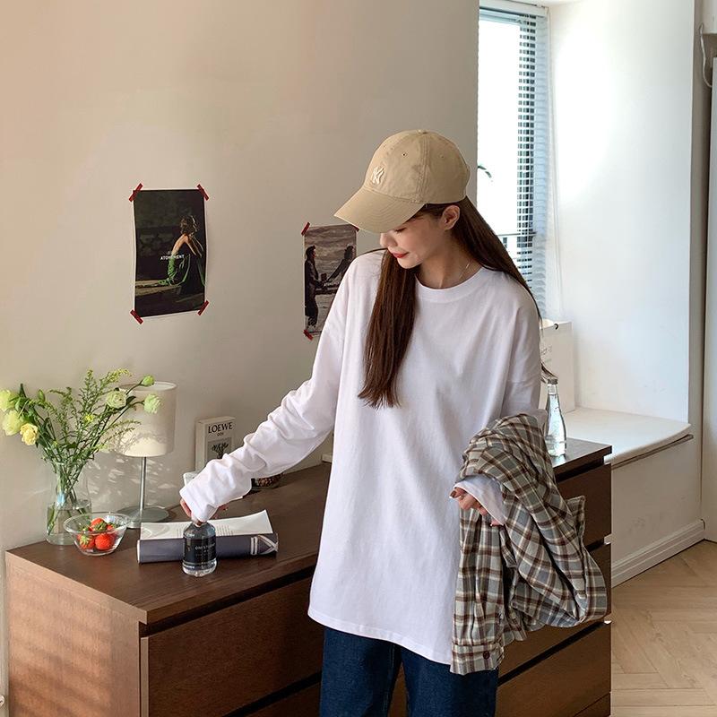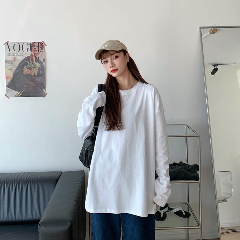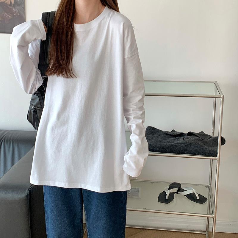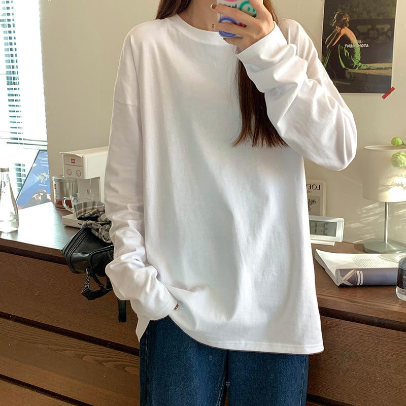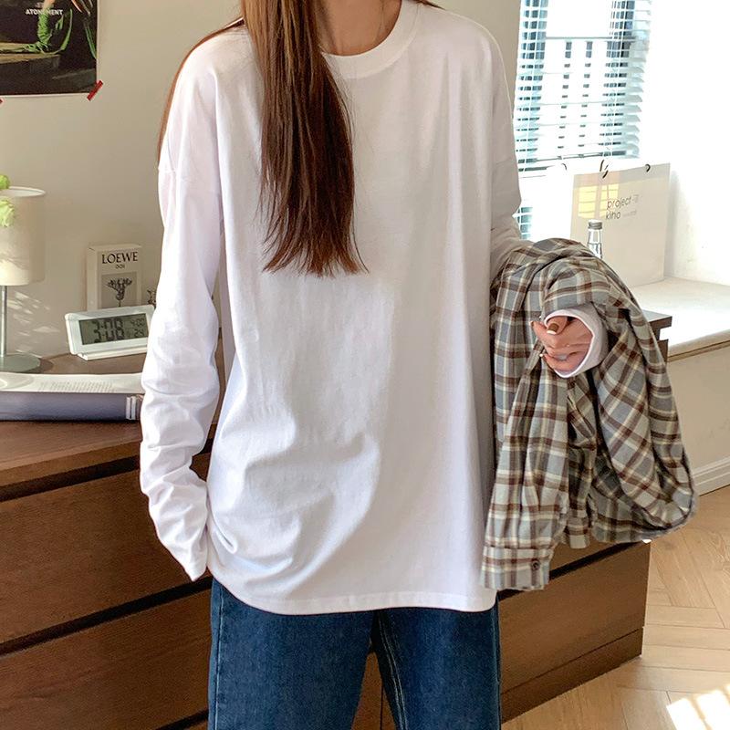 Camiseta Básica Blanca para Mujer 2025 Nuevo Estilo Coreano Ropa Interior de Moda para Mujer Color Puro Estudiante Principios de Otoño Camiseta de Manga Larga Venta al por Mayor
