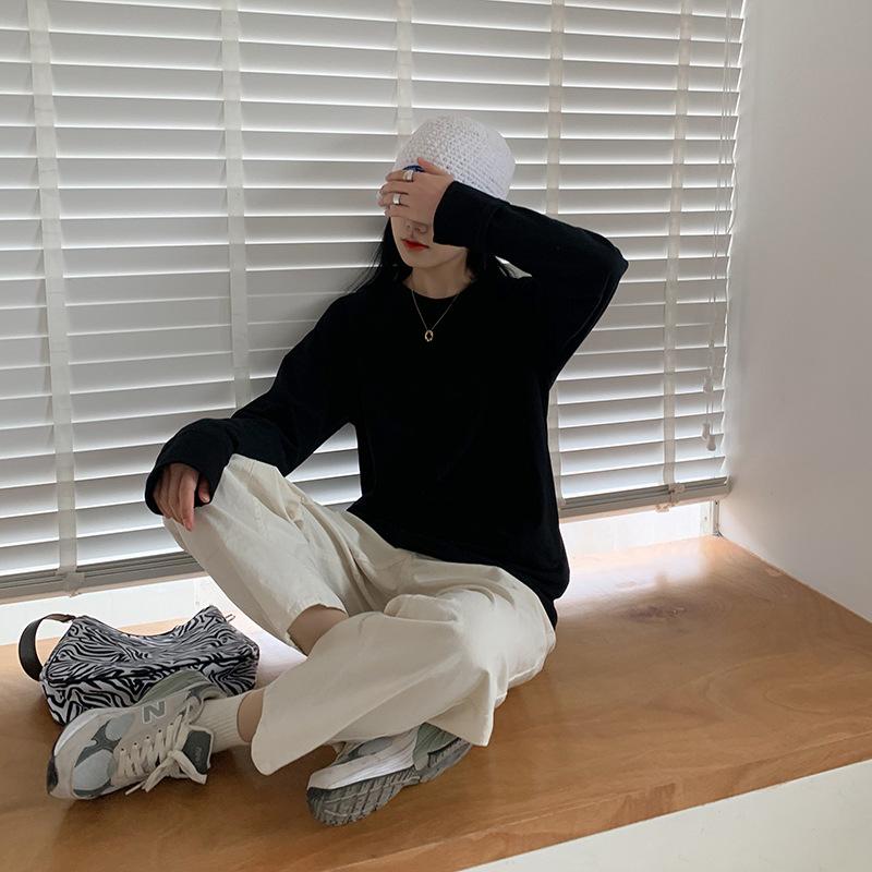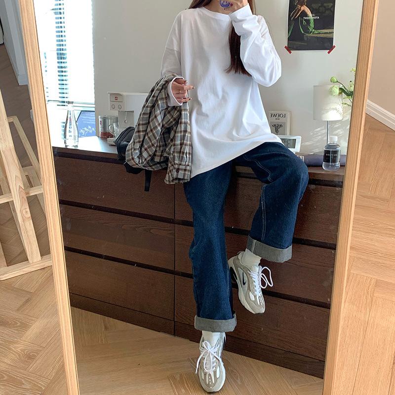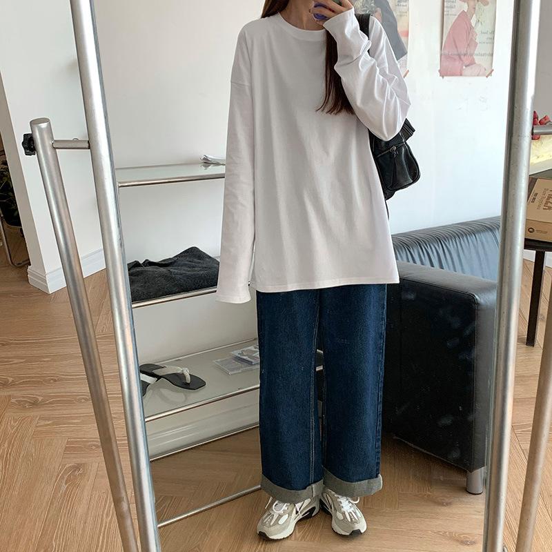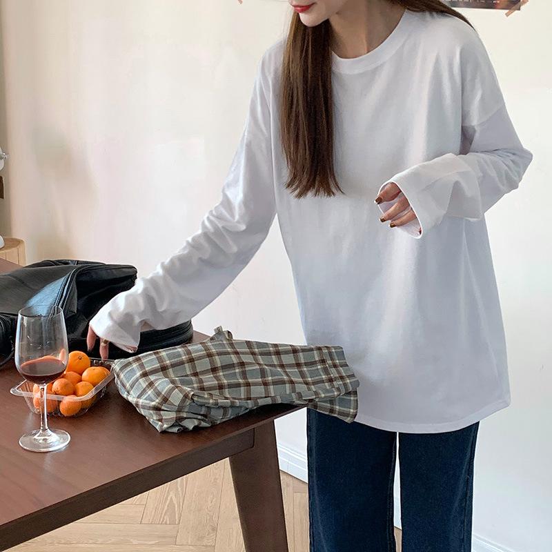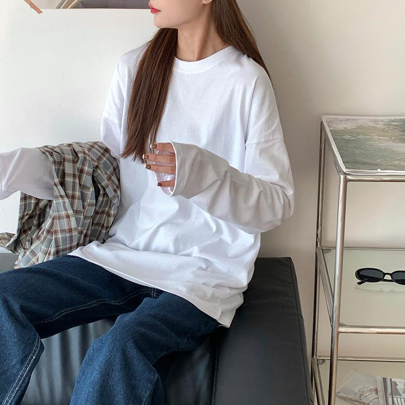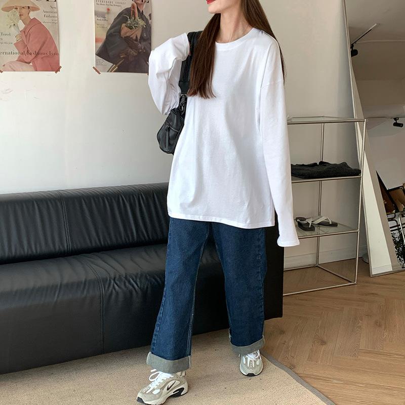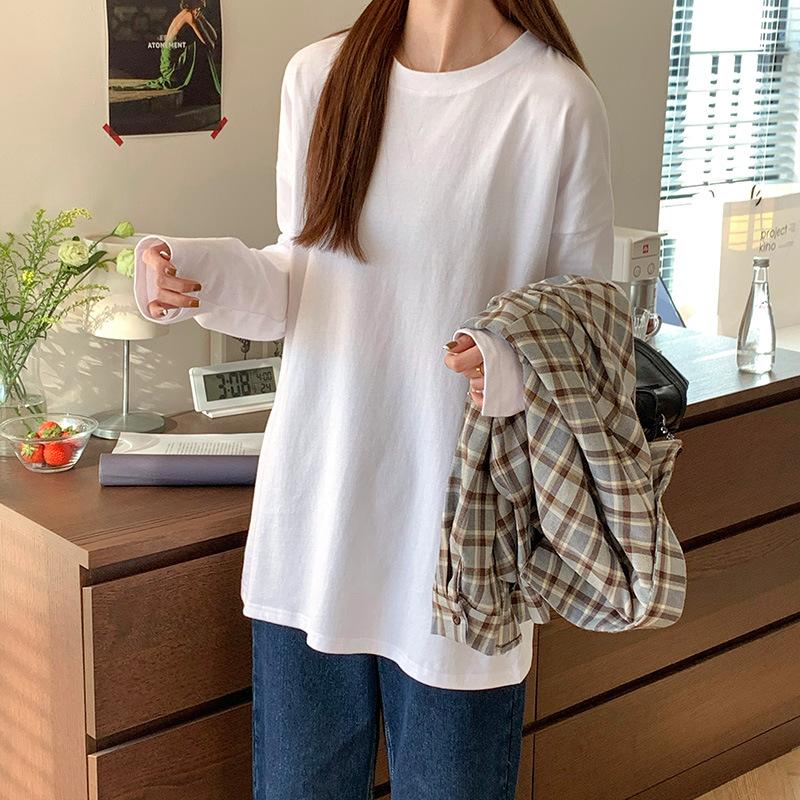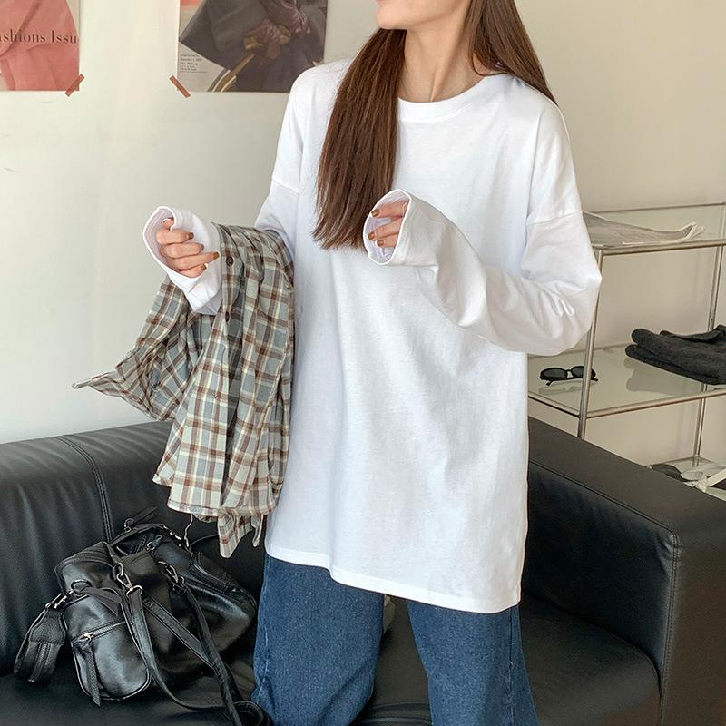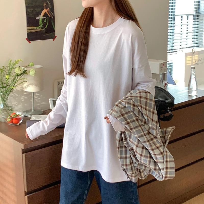 Camiseta Básica Blanca para Mujer 2025 Nuevo Estilo Coreano Ropa Interior de Moda para Mujer Color Puro Estudiante Principios de Otoño Camiseta de Manga Larga Venta al por Mayor
