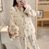 Pijamas para niños de otoño e invierno de estilo coreano con solapa de franela gruesa de dibujos animados, ropa para el hogar para bebés, cárdigan de lana coral.