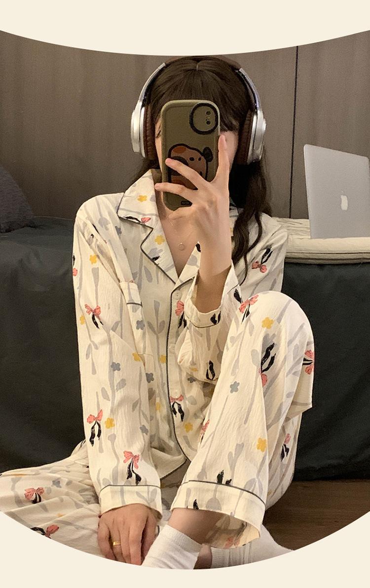 Pijamas de mujer de primavera y otoño de manga larga con dibujos animados bonitos para el invierno 2025, ropa holgada para el hogar, traje de talla grande