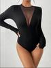 Ropa de Mujer Transfronteriza Europea y Americana en Stock Nuevo Body Sexy Slim de Manga Larga con Cremallera y Cuello Redondo al Mayoreo