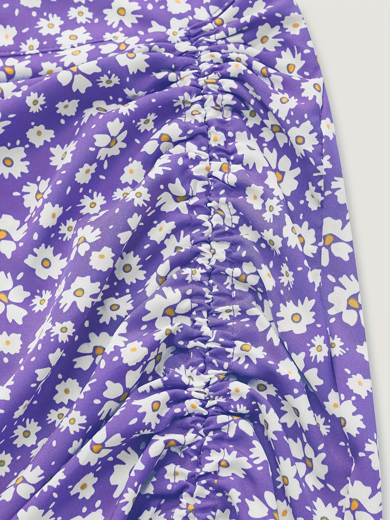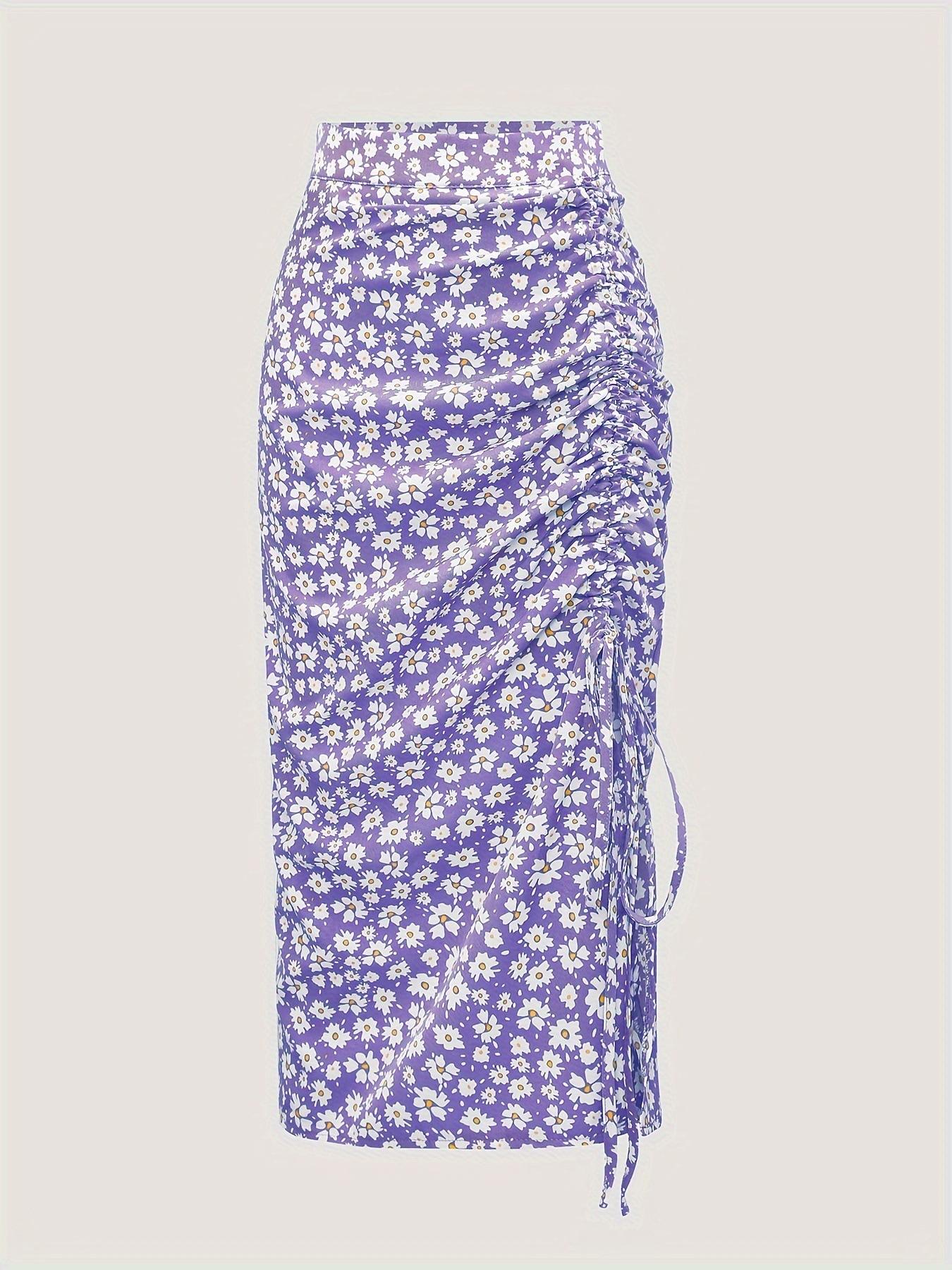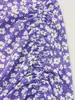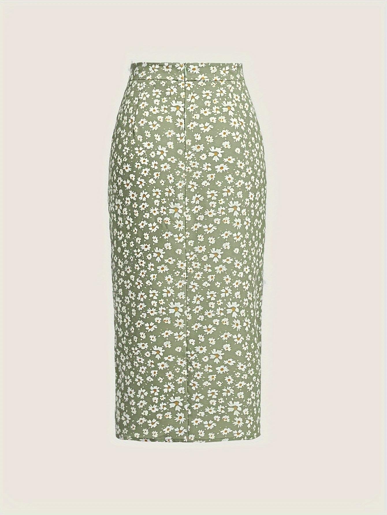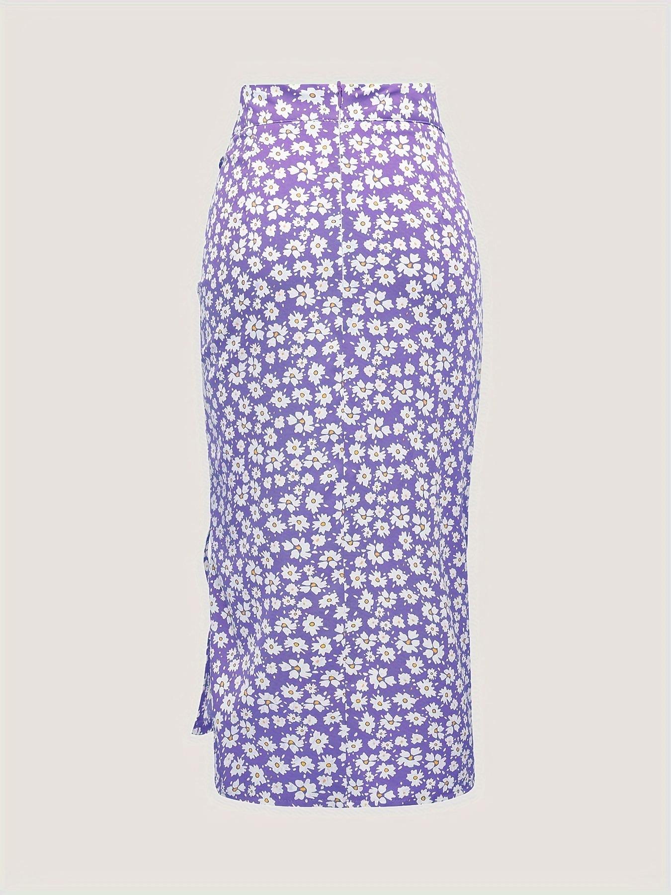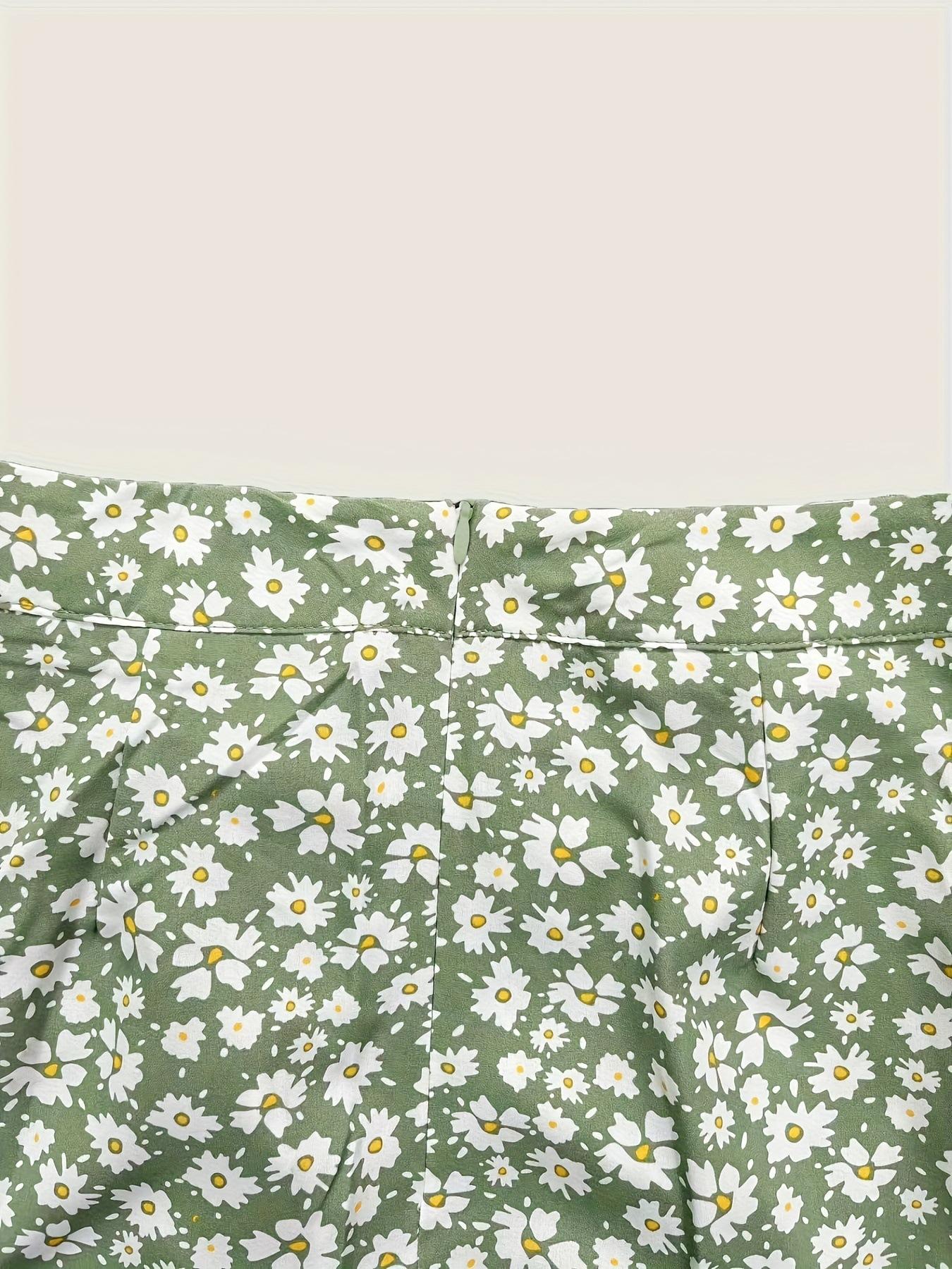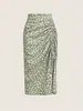 Nueva falda floral de verano con estampado de crisantemo, estilo europeo y americano, con abertura en la cadera y bolso.
