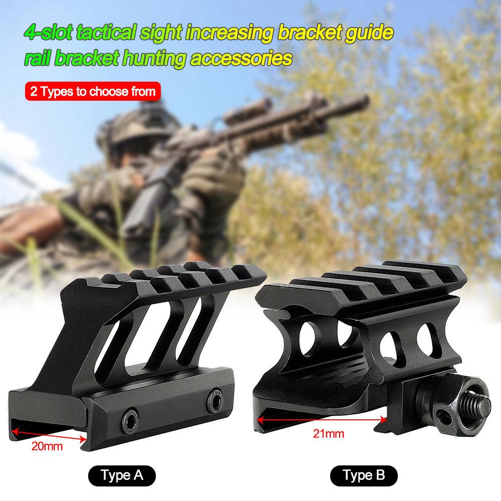 Nombre: Soporte de riel guía de soporte de aumento de mira táctica de 4 ranuras, accesorios de caza