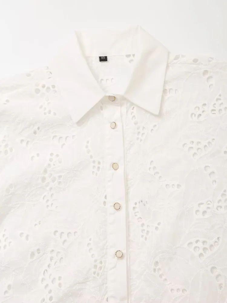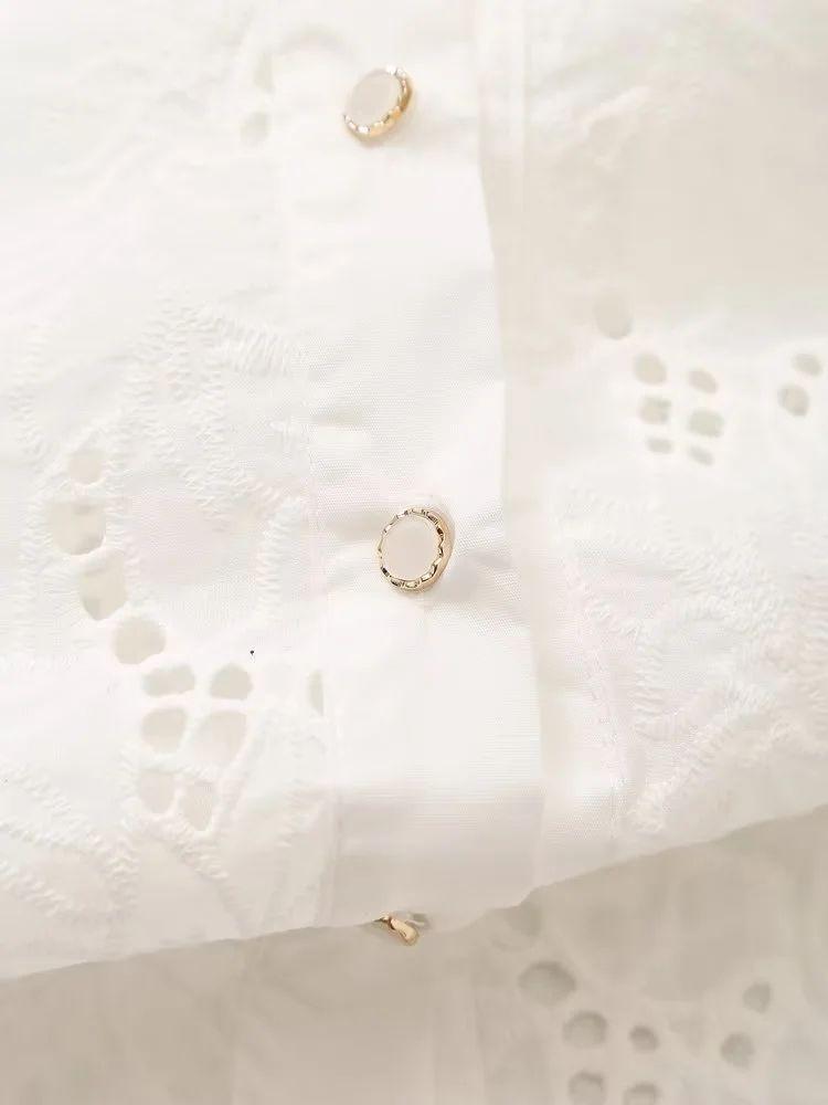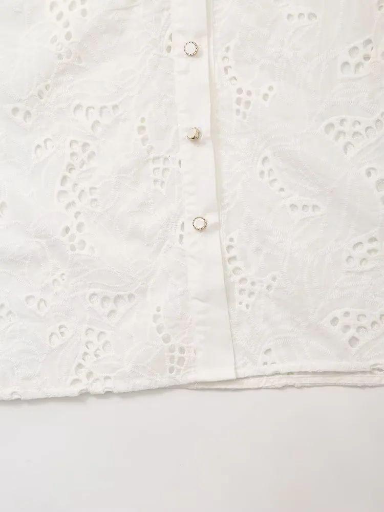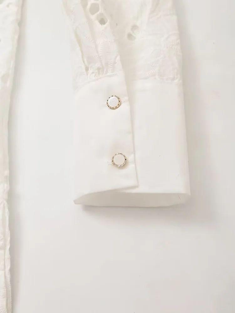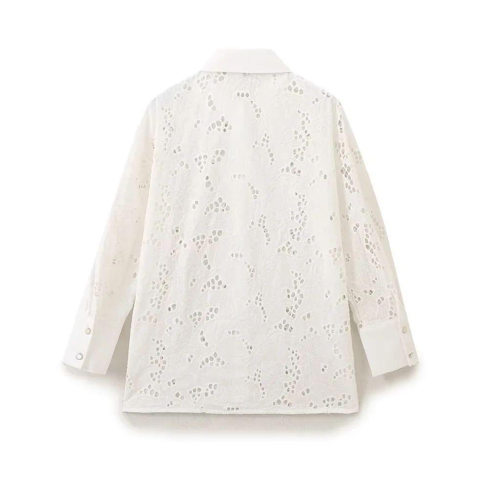 Otoño e invierno 2024 estilo europeo y americano nueva camisa blanca regular de manga larga con solapa para mujer