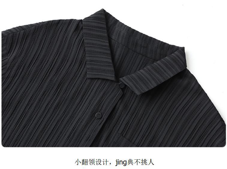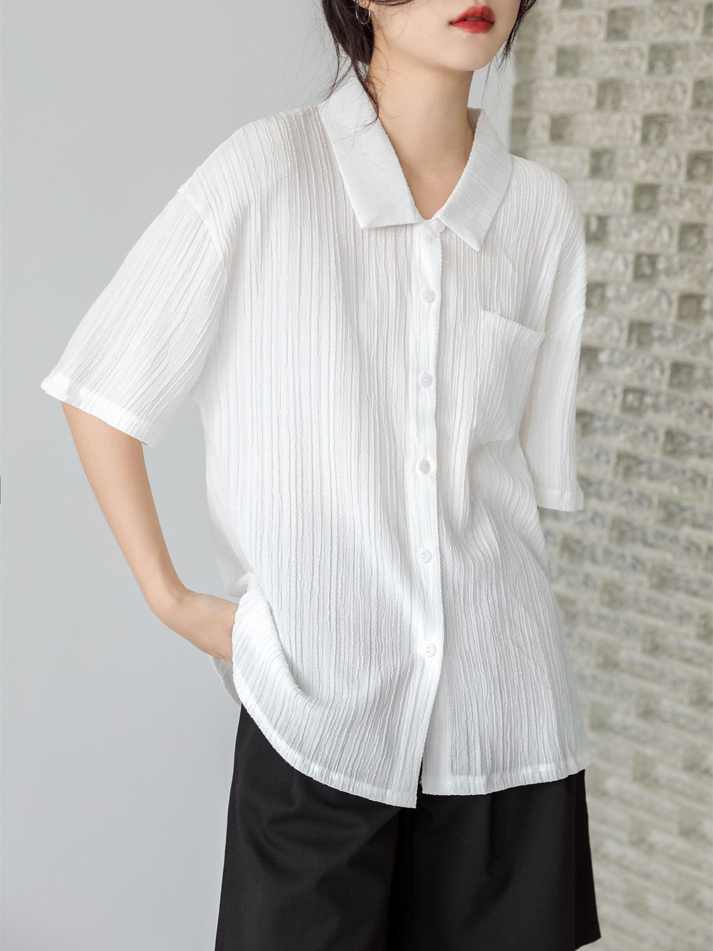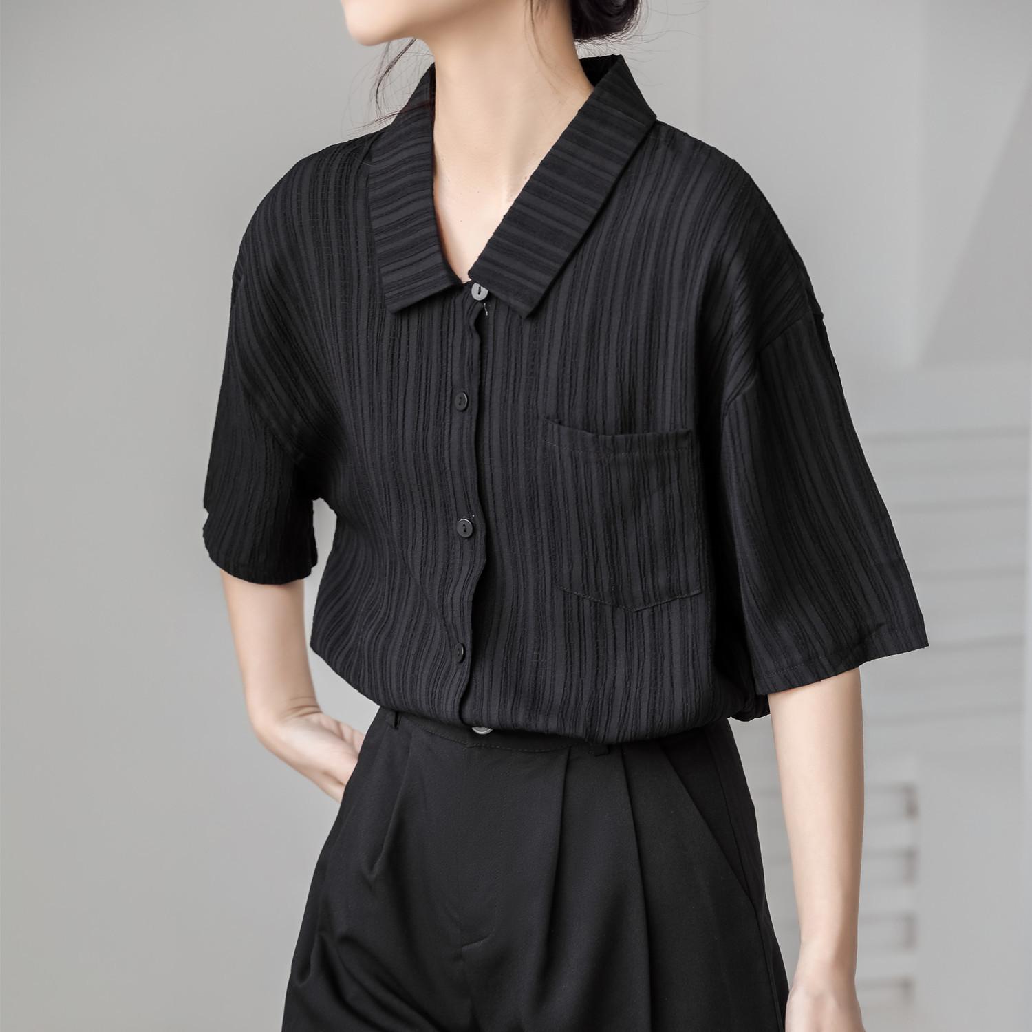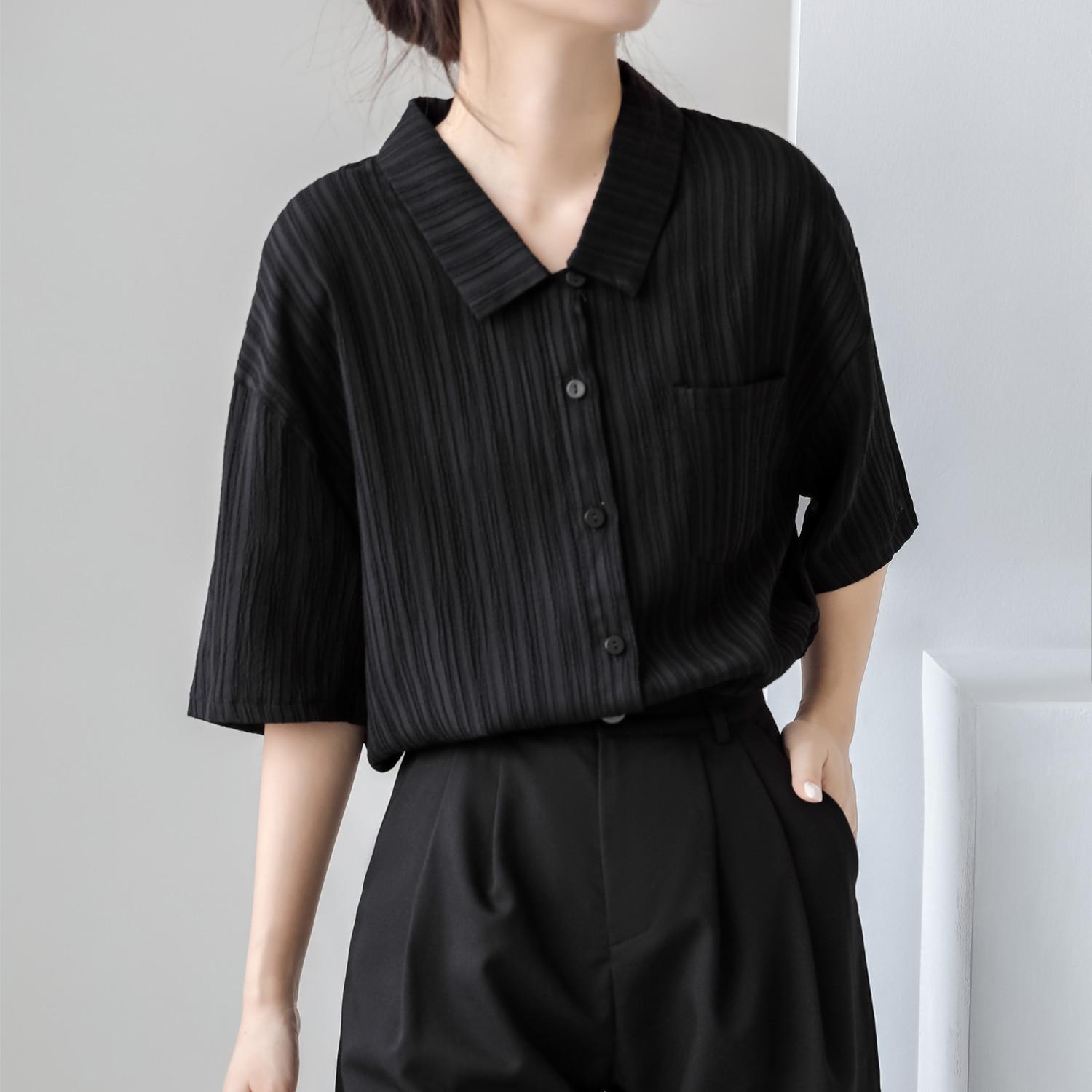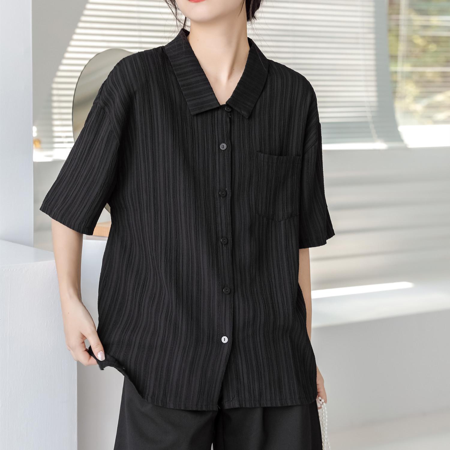 Camisa rayada tridimensional con textura estilo Hong Kong para mujer, verano, artística, casual, holgada, diseño versátil, camisa de manga corta