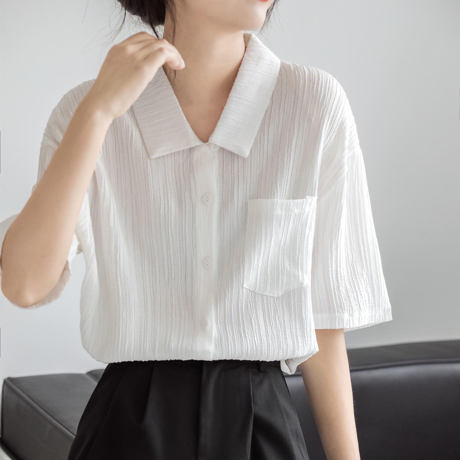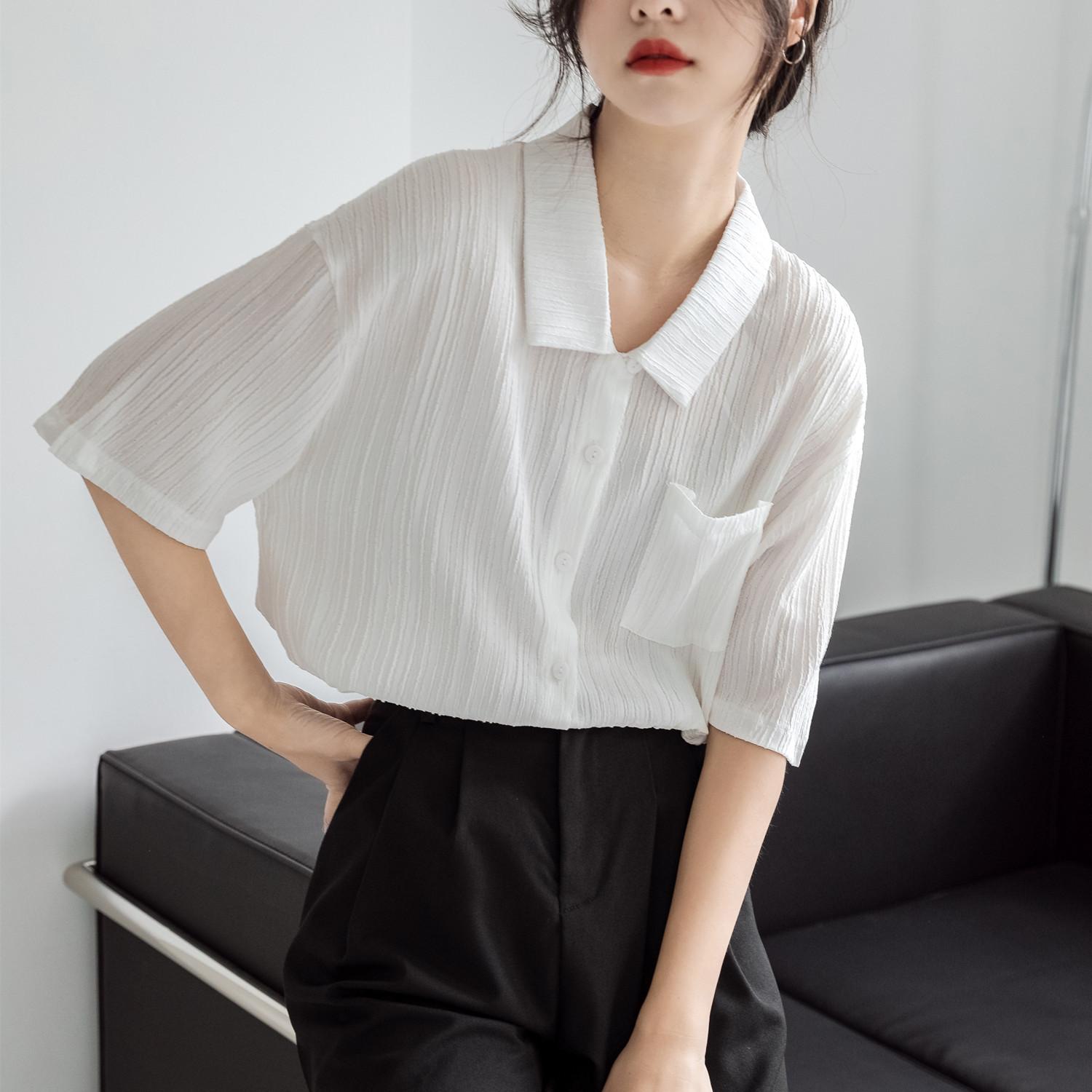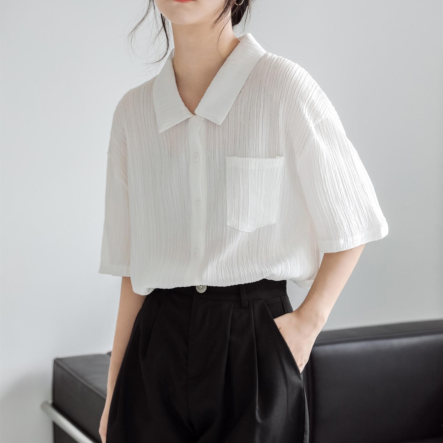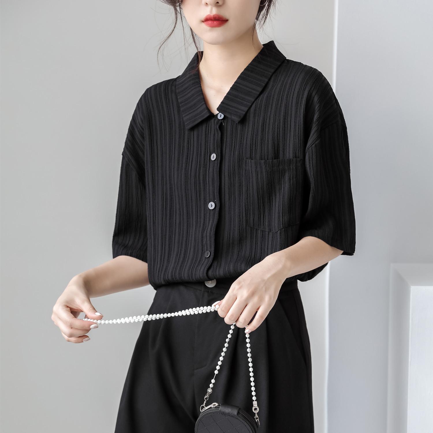 Camisa rayada tridimensional con textura estilo Hong Kong para mujer, verano, artística, casual, holgada, diseño versátil, camisa de manga corta