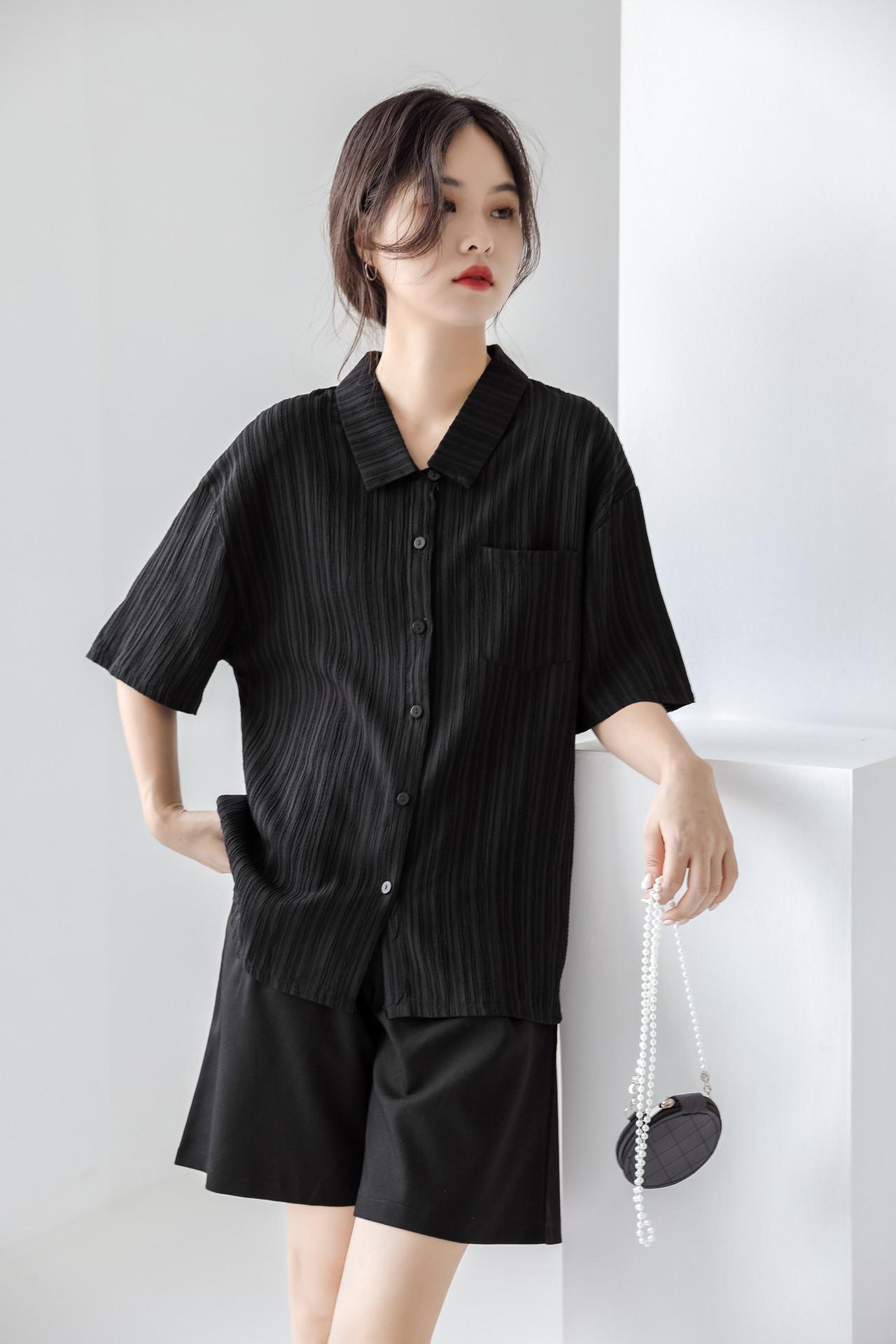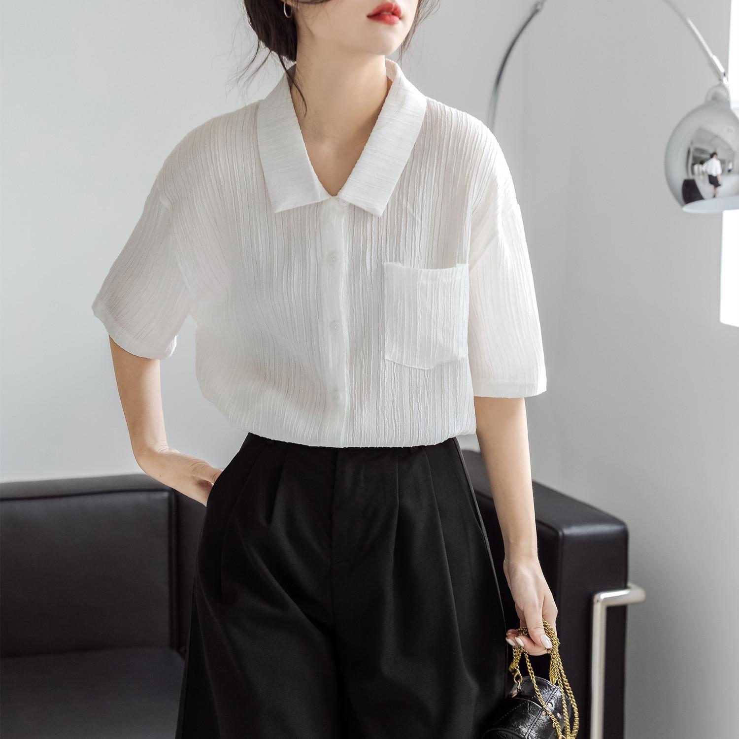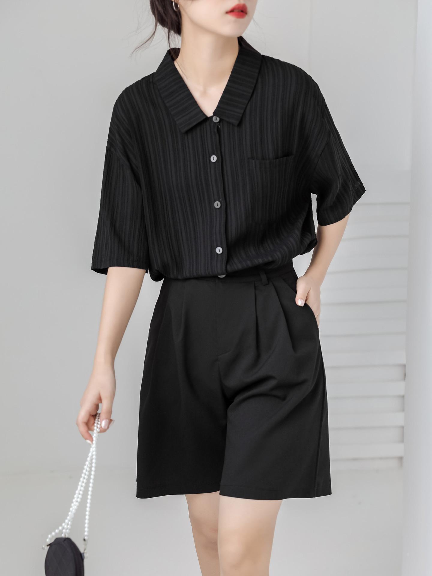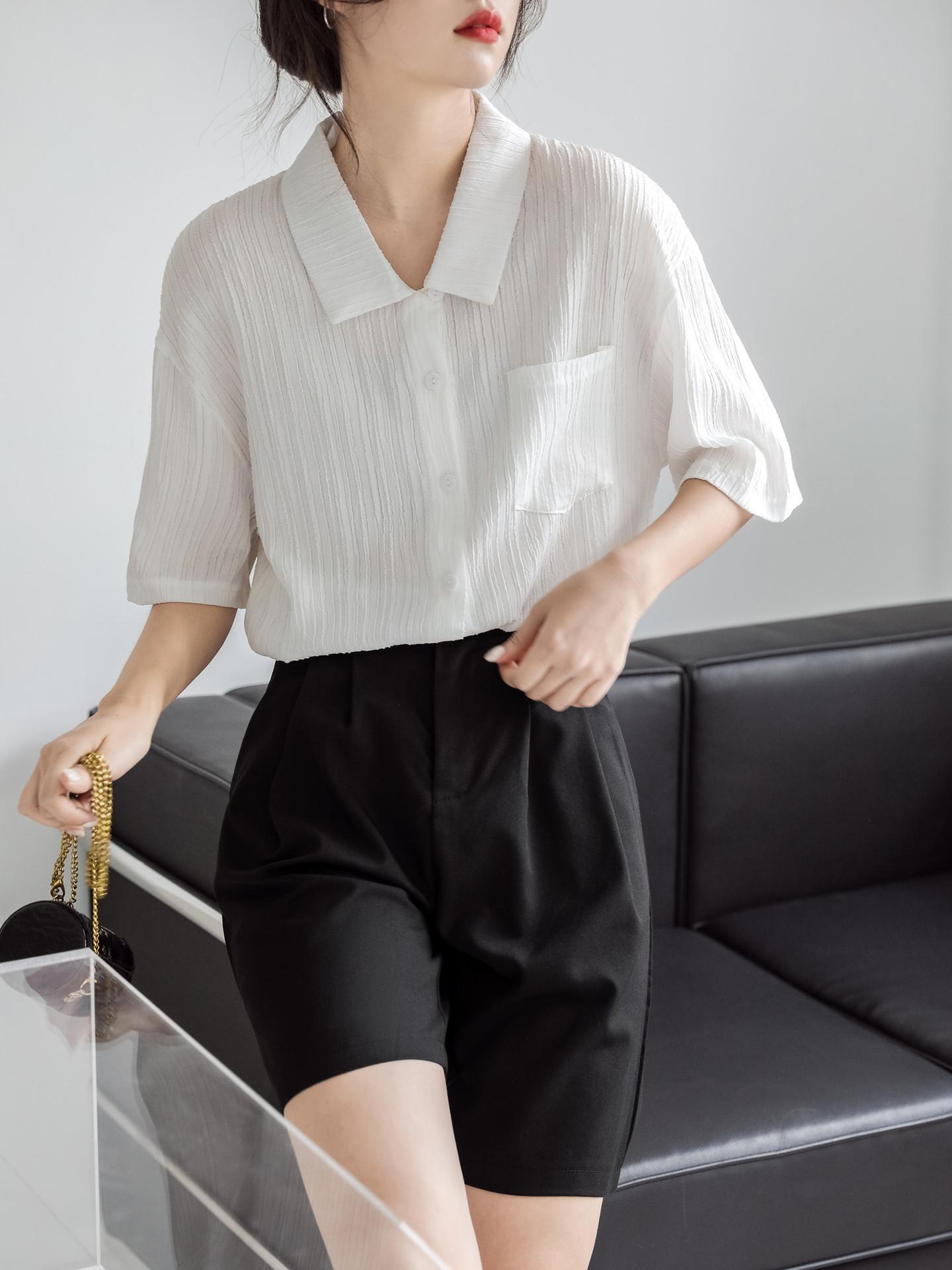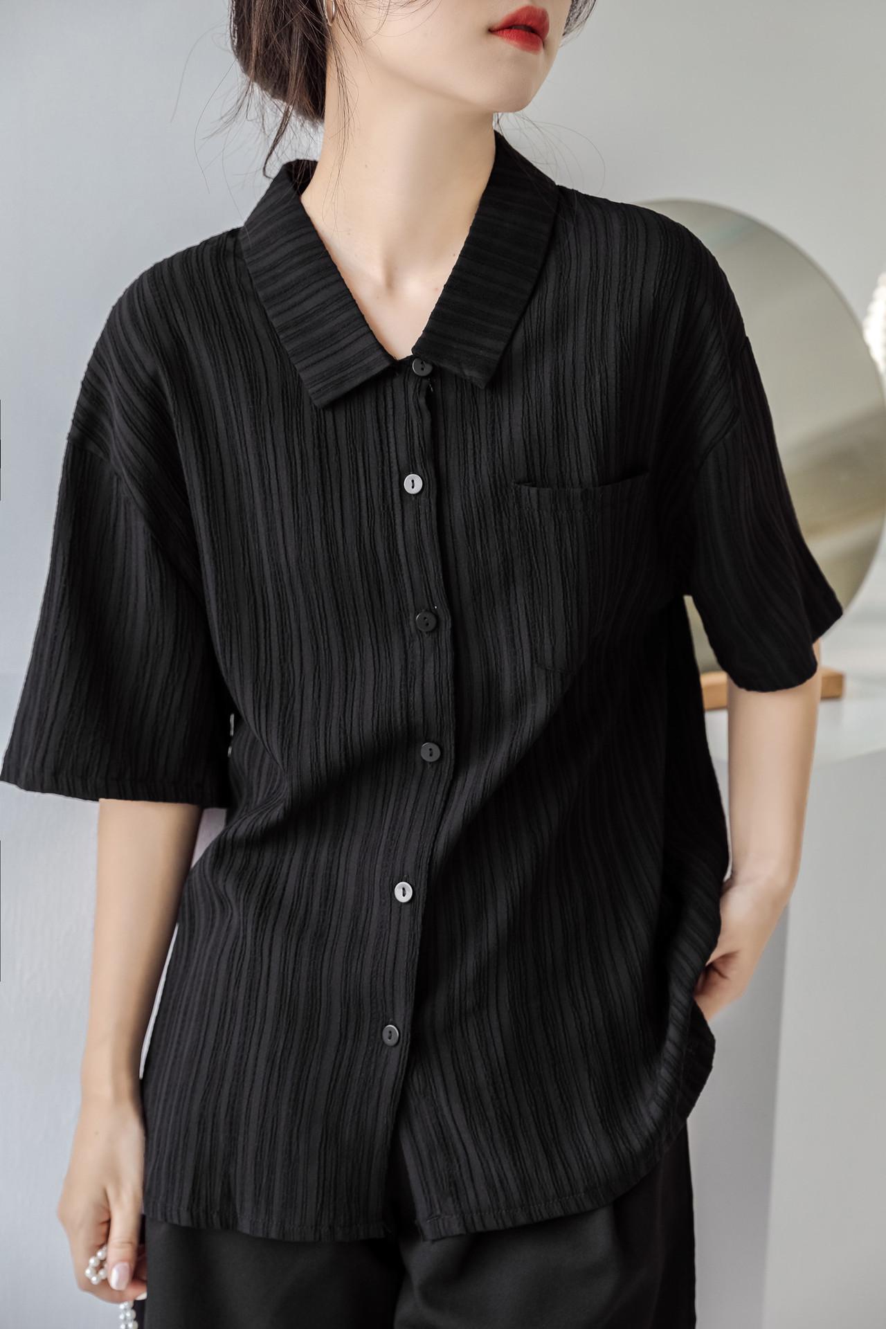 Camisa rayada tridimensional con textura estilo Hong Kong para mujer, verano, artística, casual, holgada, diseño versátil, camisa de manga corta