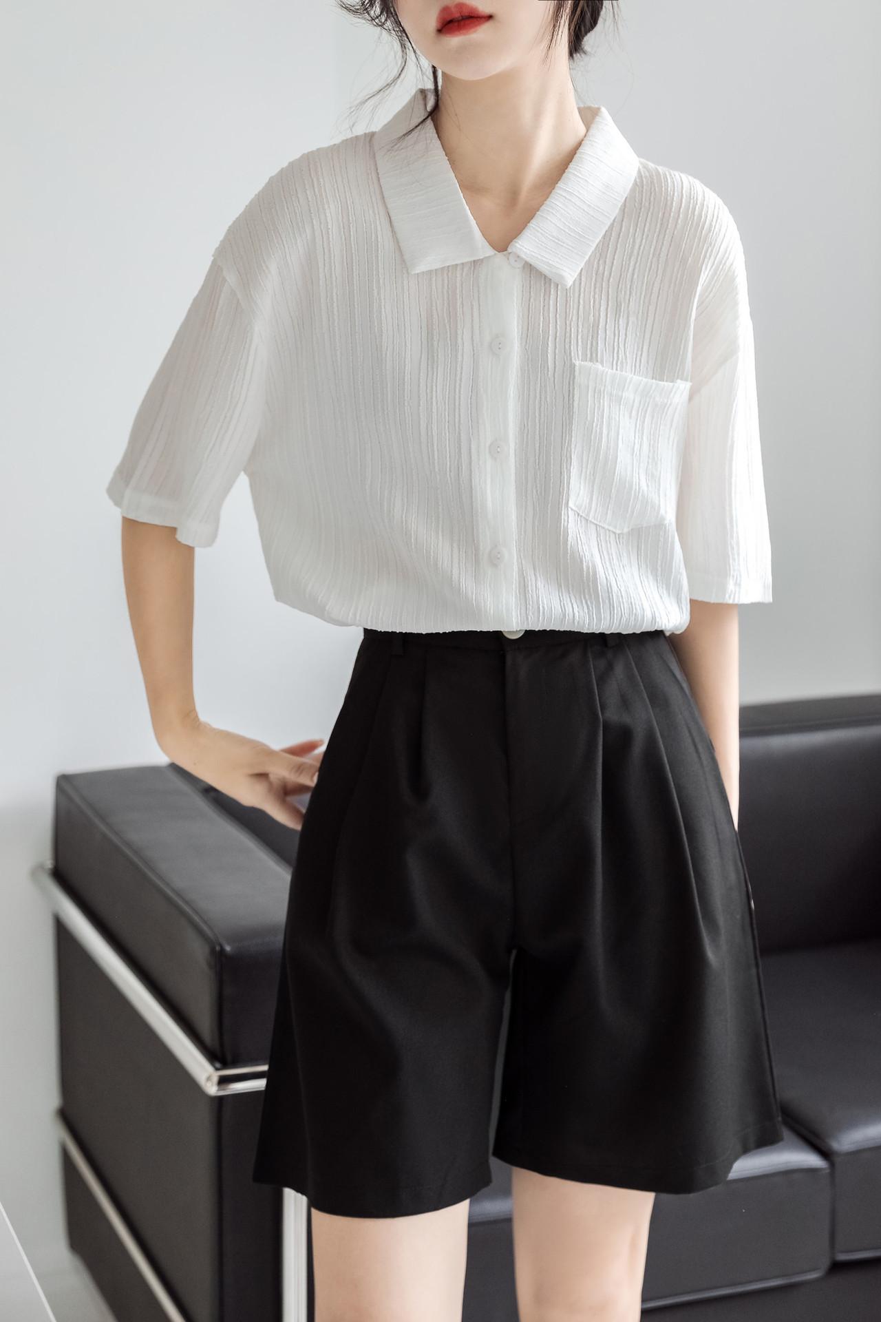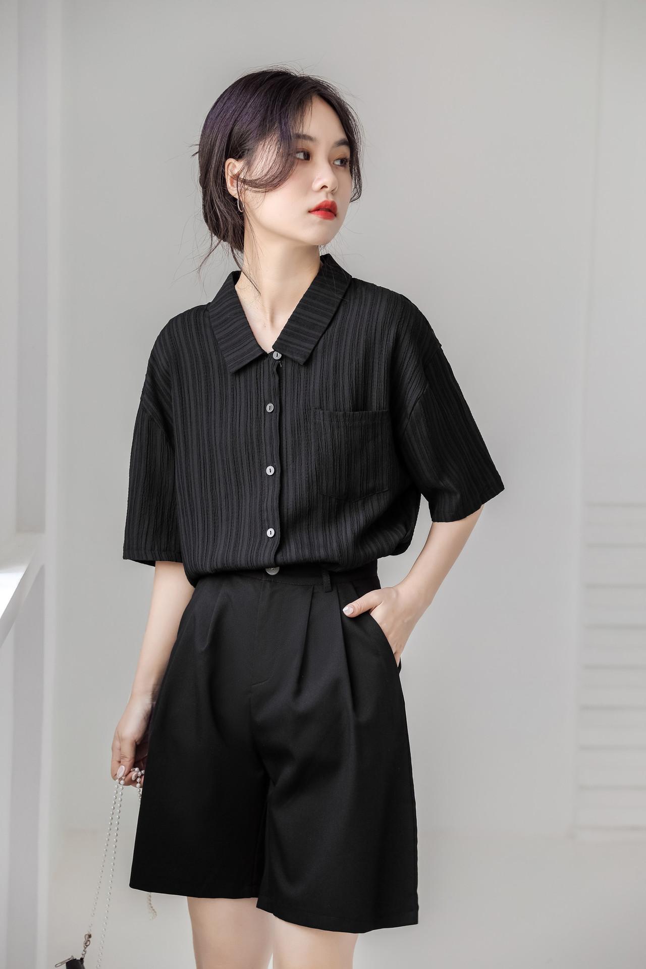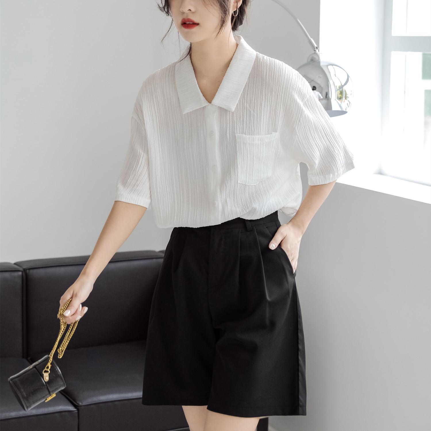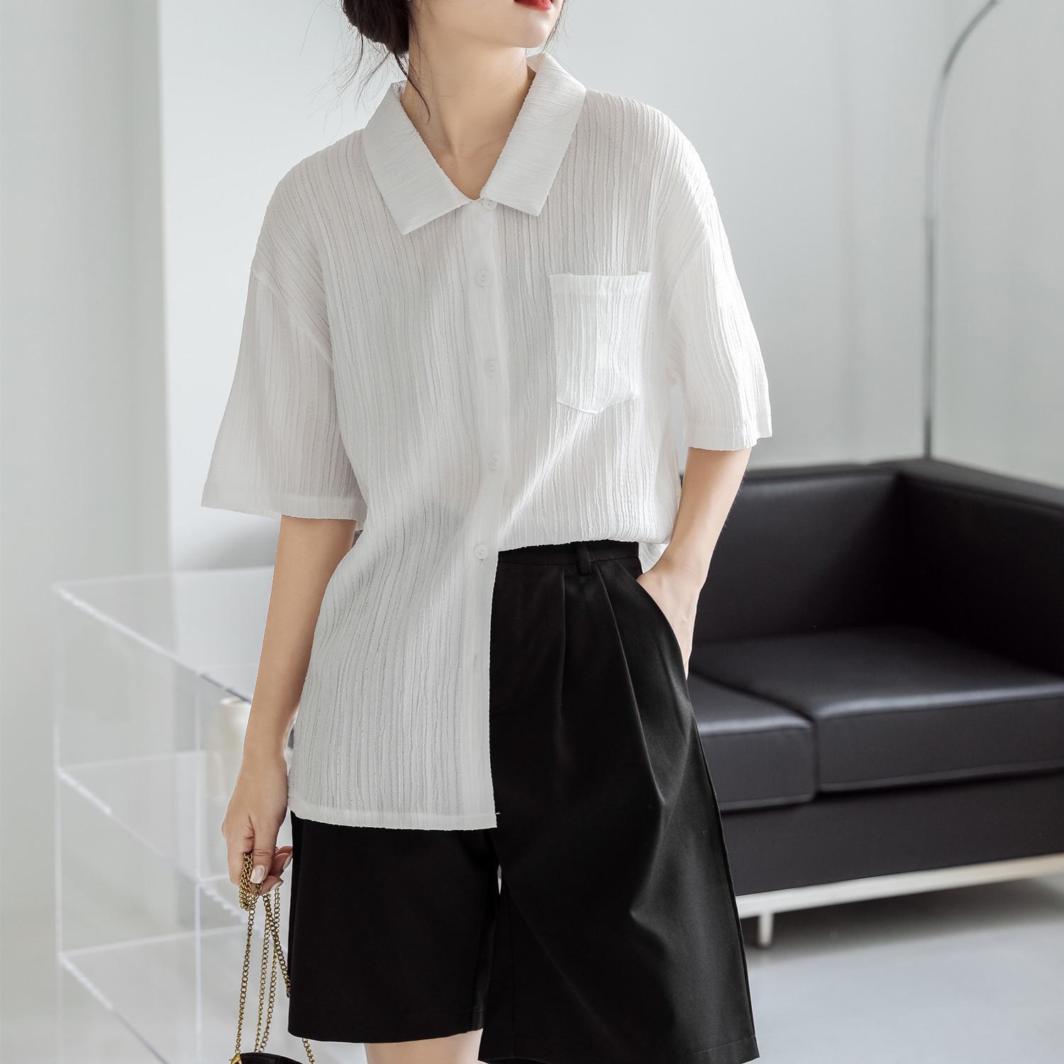 Camisa rayada tridimensional con textura estilo Hong Kong para mujer, verano, artística, casual, holgada, diseño versátil, camisa de manga corta