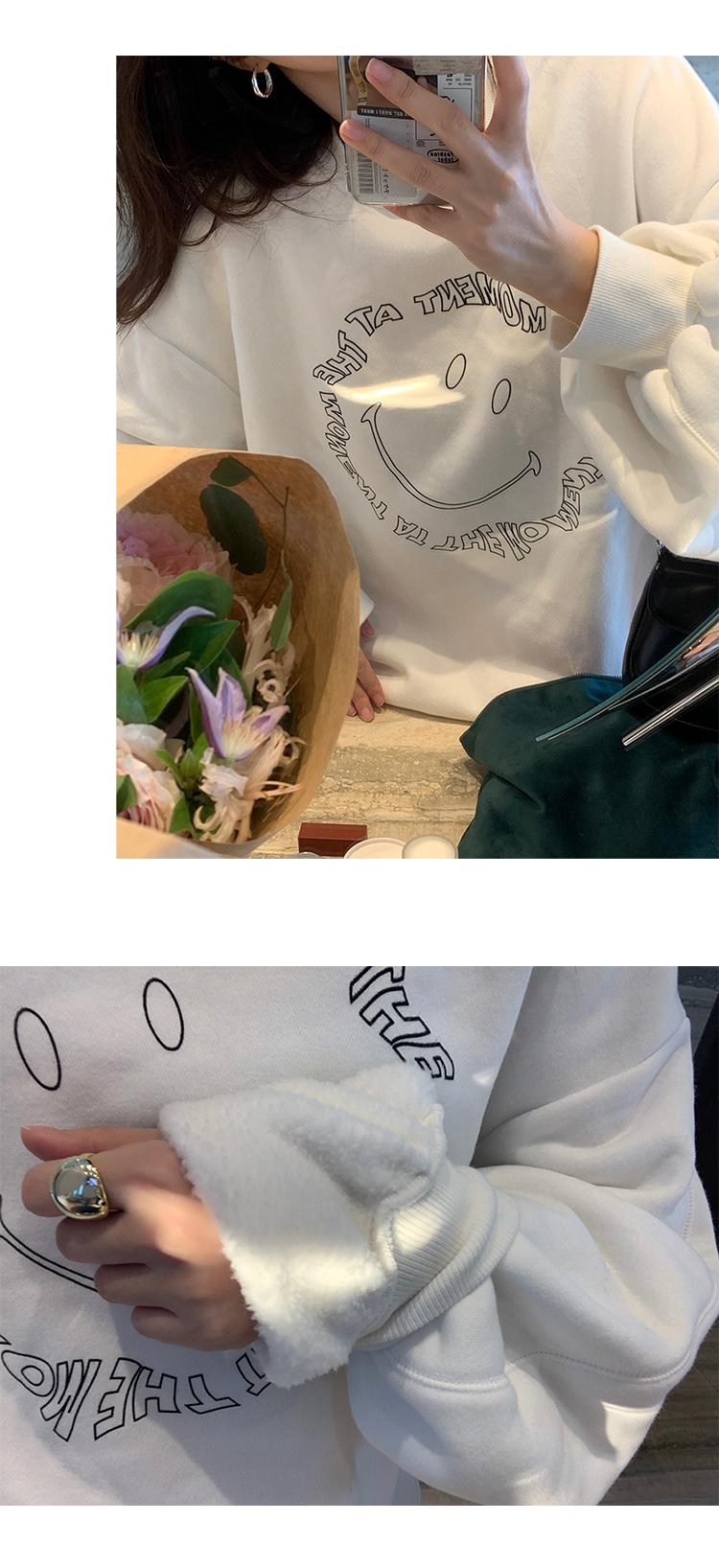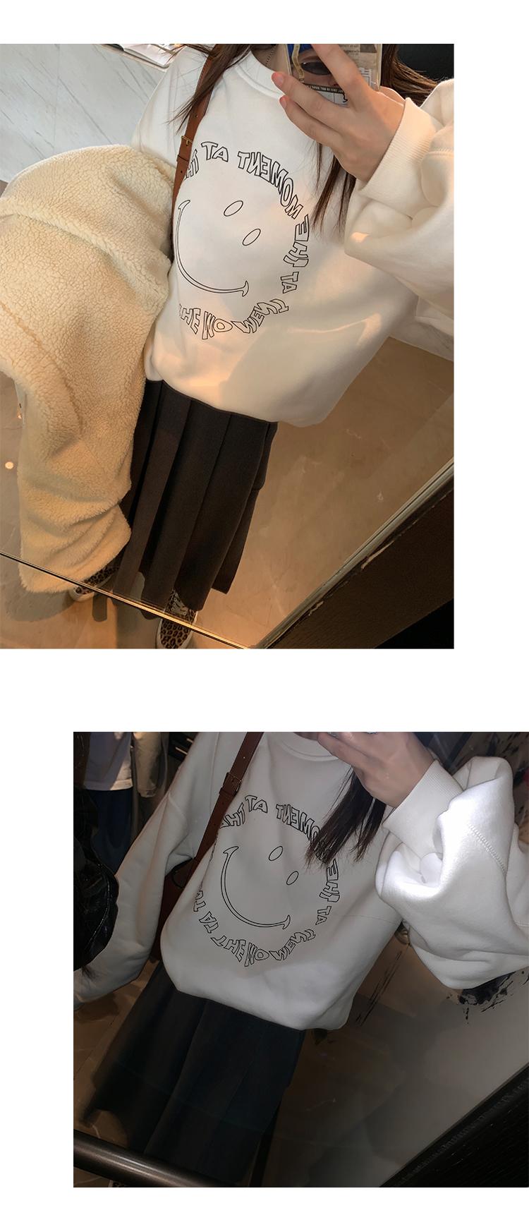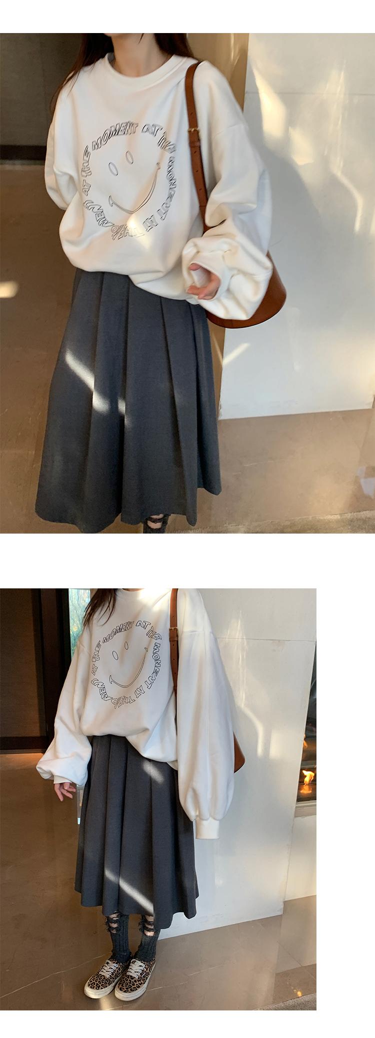 El patrón de cara sonriente en el pecho está hecho con impresión offset
