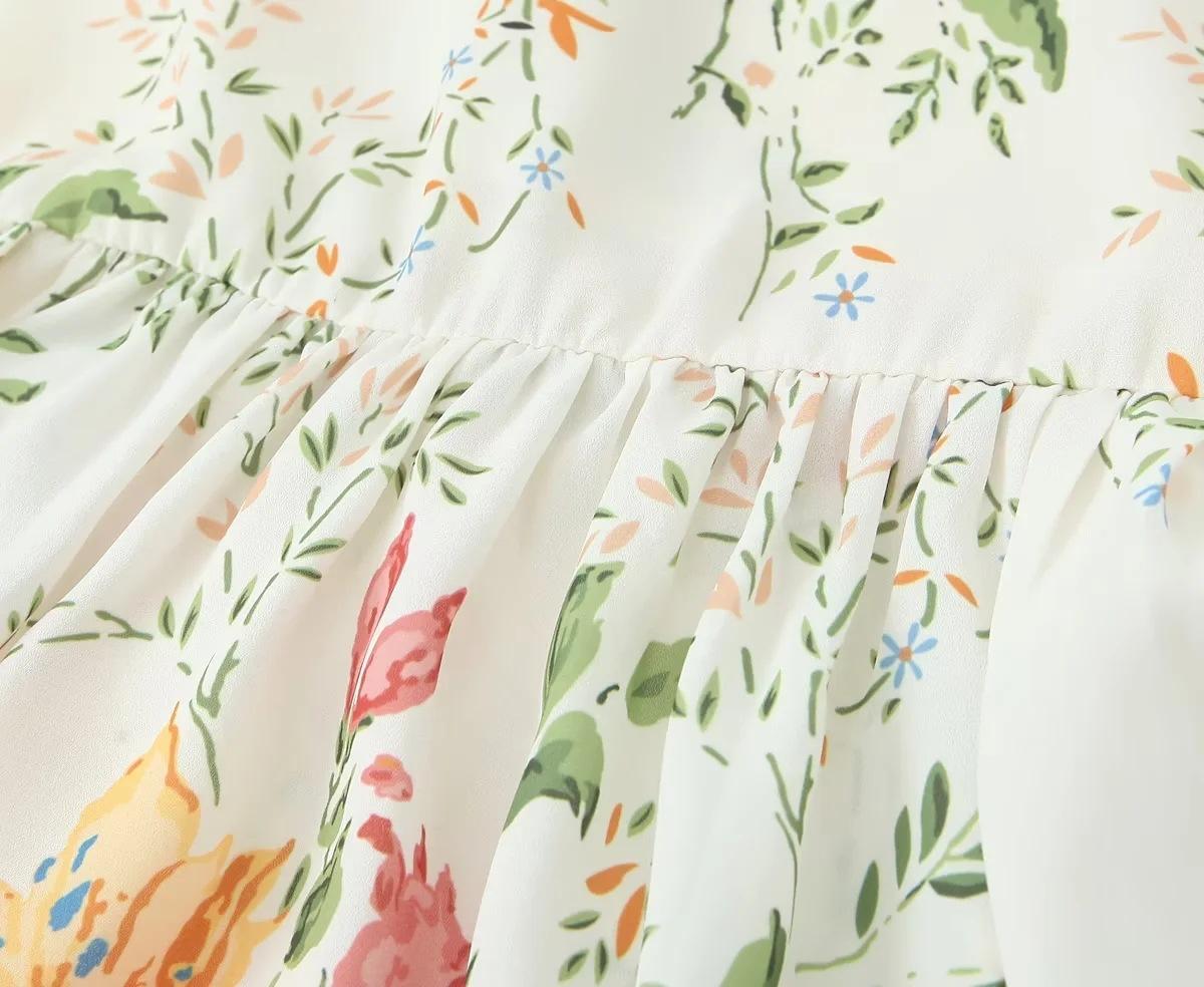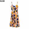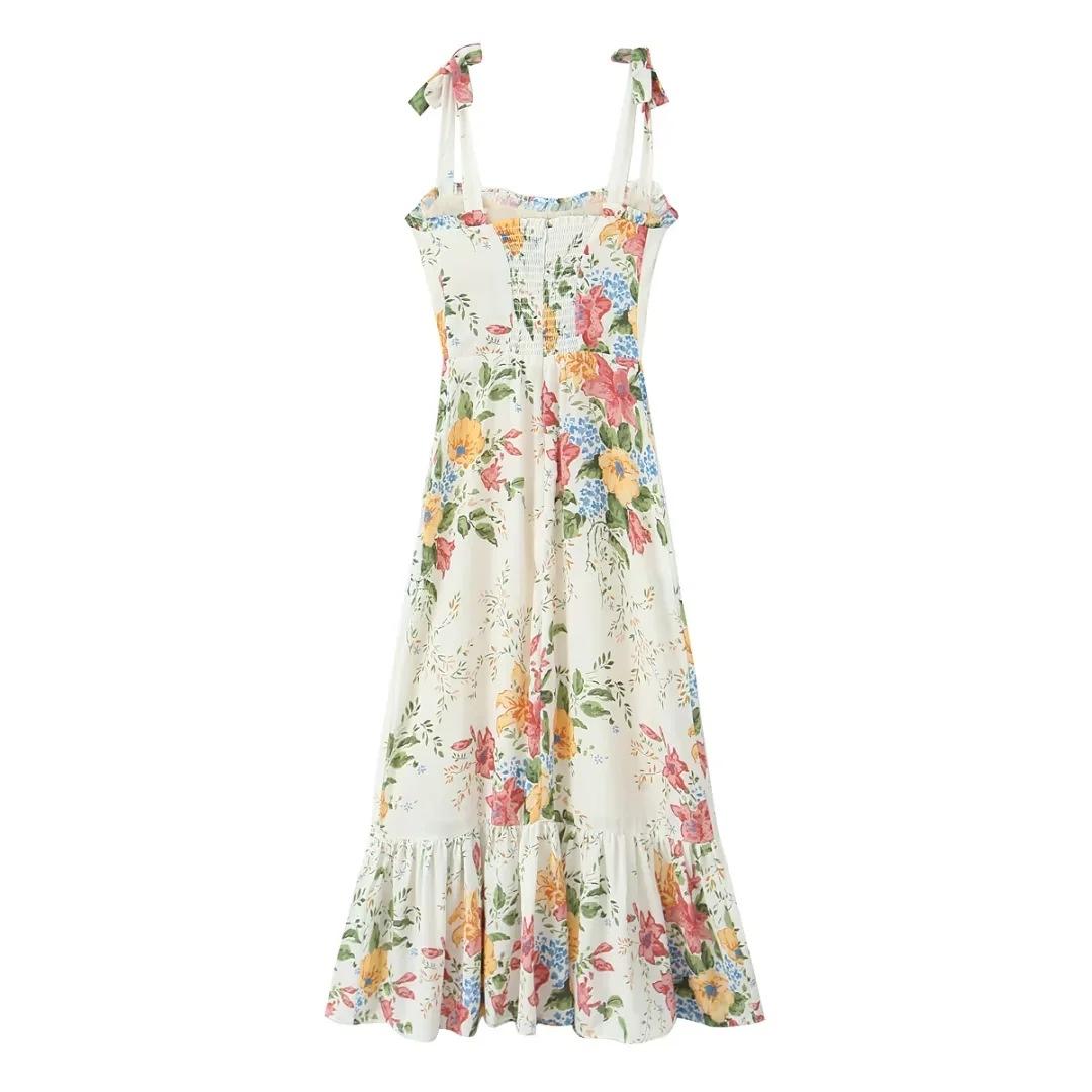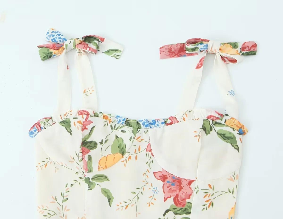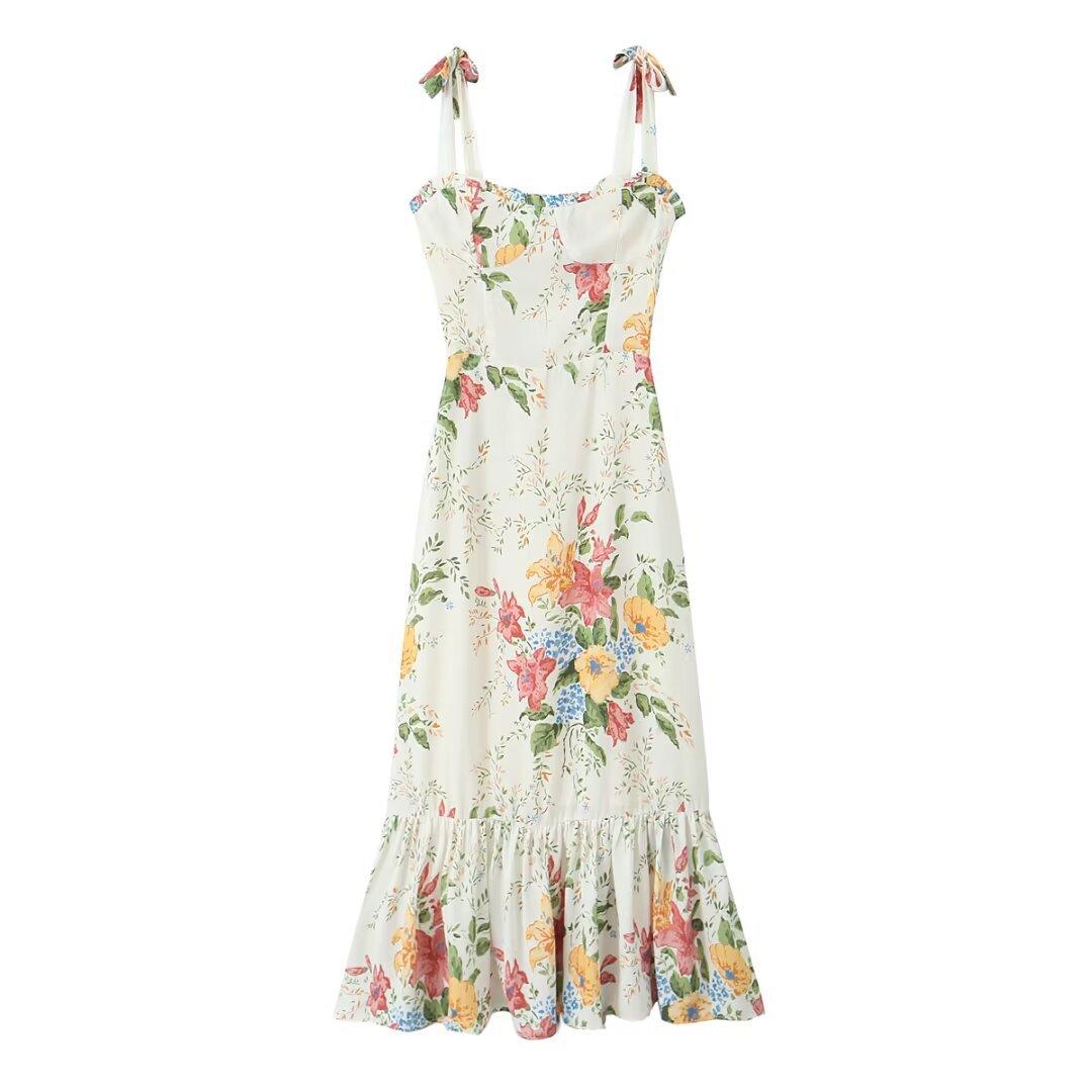 7593 Ropa europea y americana, verano 2024, nuevo estilo, estampado floral pequeño, falda grande ajustada, vestido con tirantes