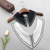 Cuello falso de gasa estilo retro con encaje bordado para mujer
