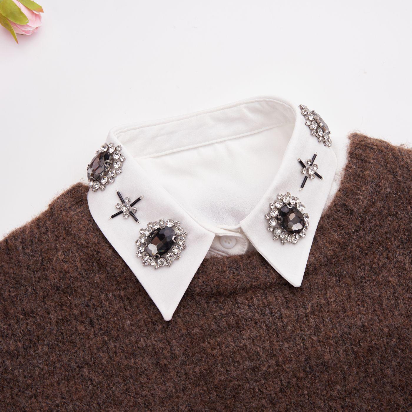 Cuello Falso Nuevo Estilo Hecho a Mano Cosido Cuello Falso Abalorios de Pedrería Fabricante de Alta Gama Venta al por Mayor Cuello Falso Confeccionado Guangzhou