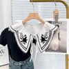 Otoño e Invierno Nuevo Camisa de Corte Pesado con Bordado Calado Retro Estilo Palacio con Cuello Falso y Sensación de Alta Gama