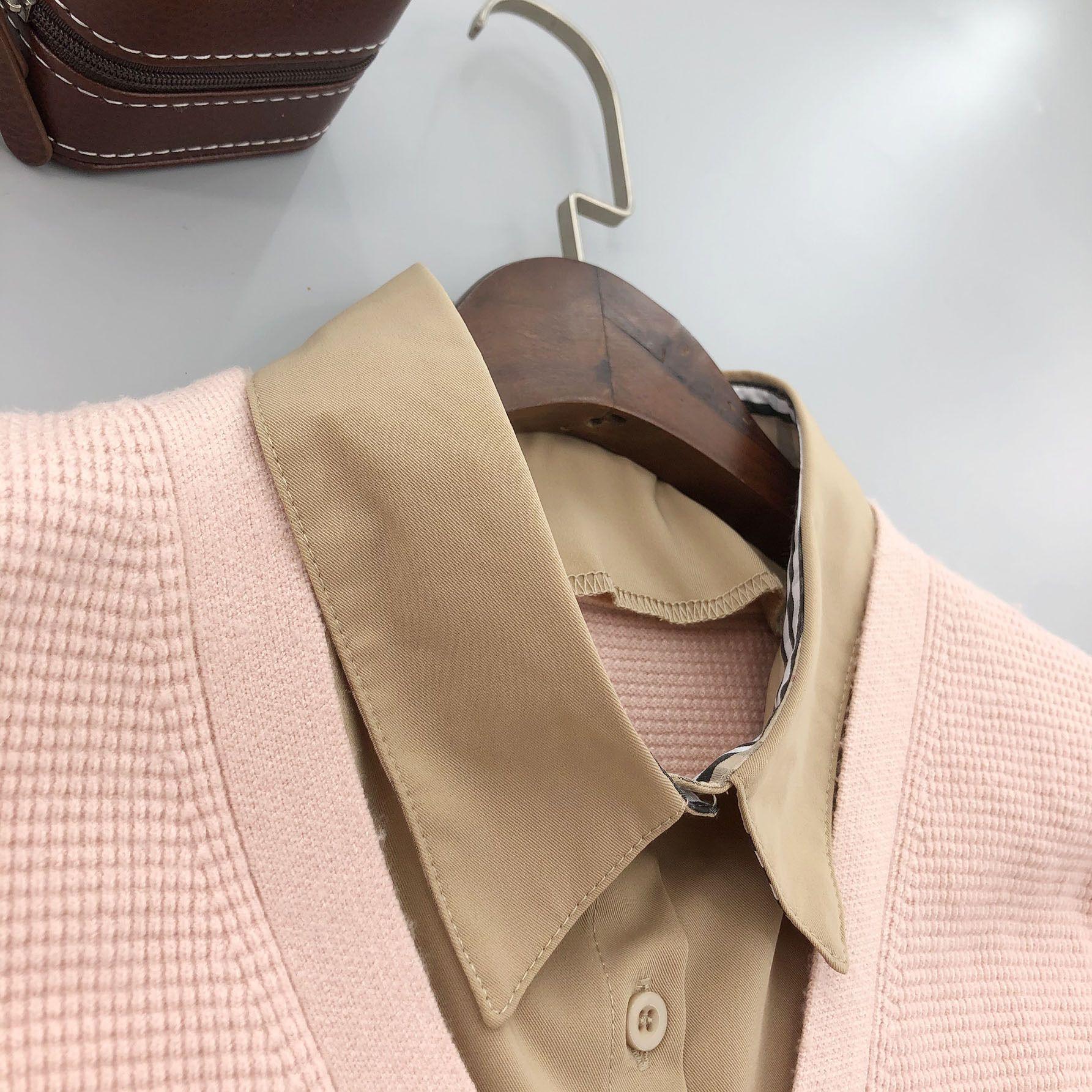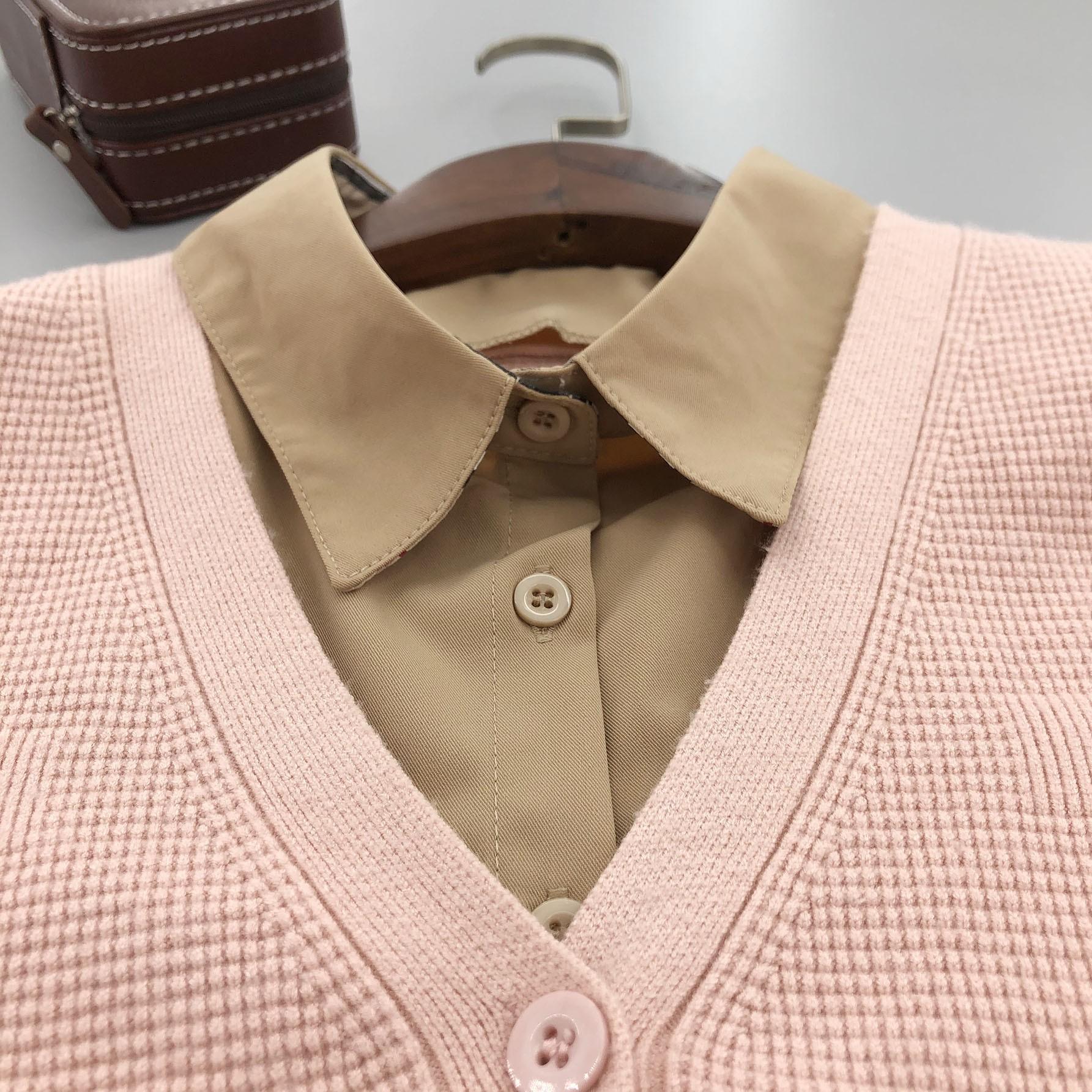 Suministro Directo de Fábrica Suéter con Costuras Triangulares Caqui Sencillo Cuello Cuadrado Versátil Cuello en V Elegante Cuello Falso para Hombre y Mujer