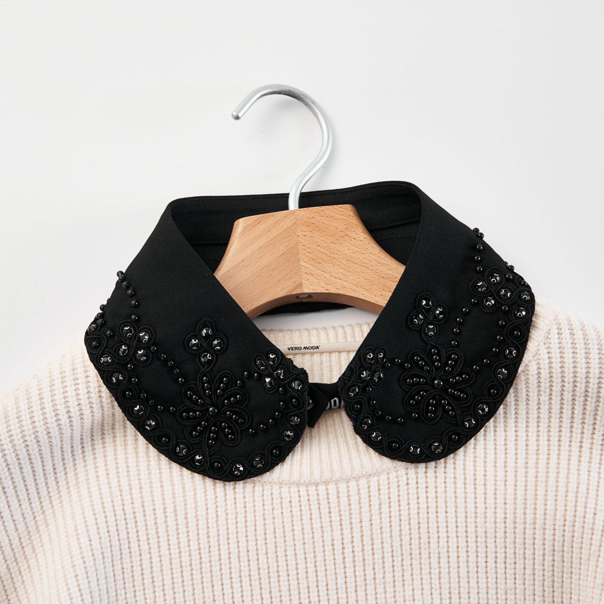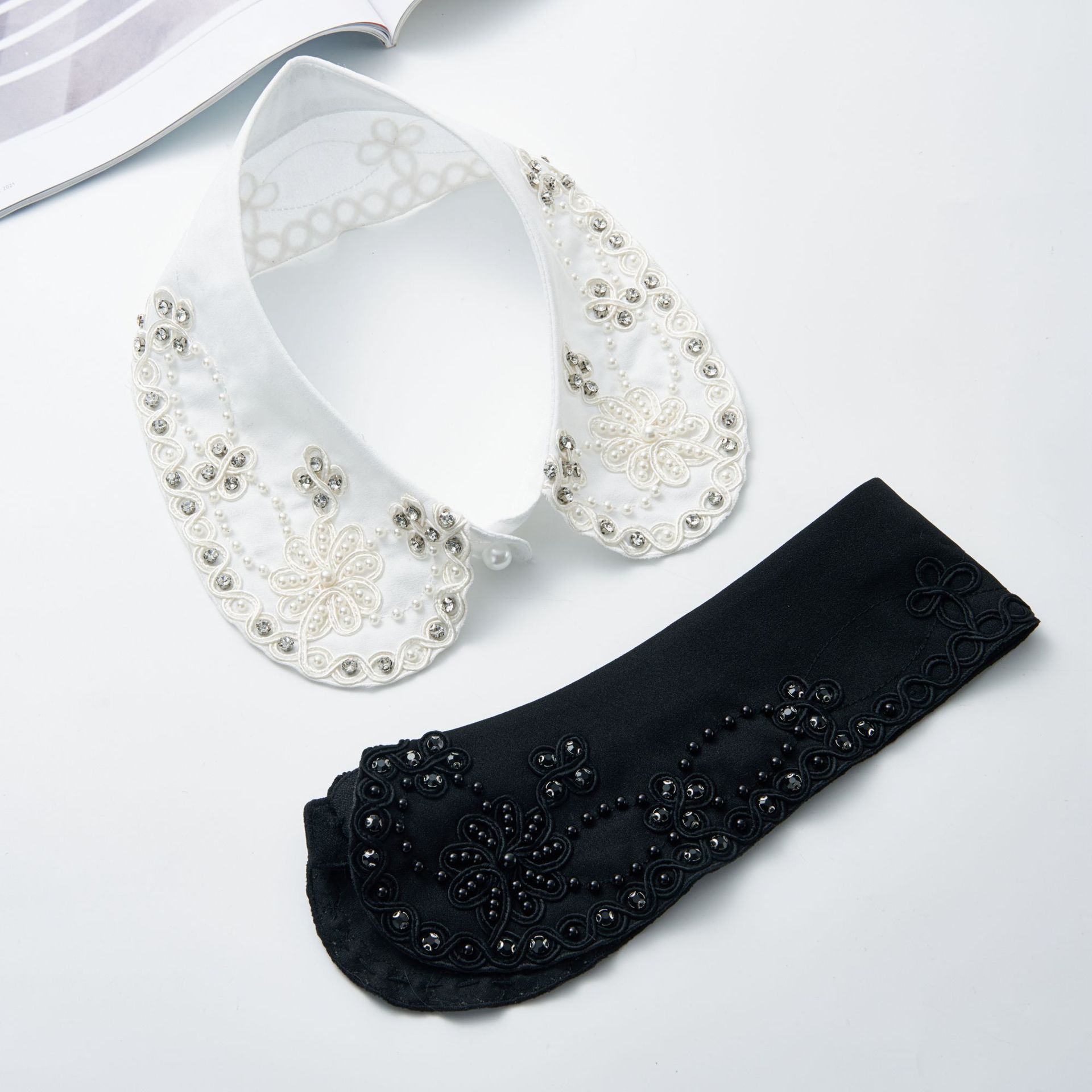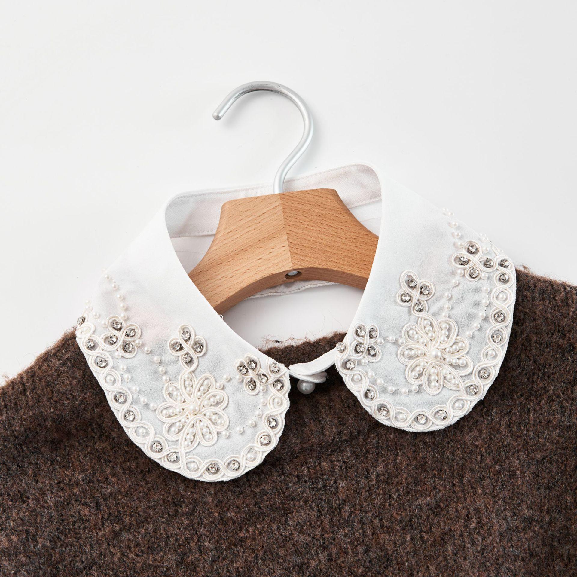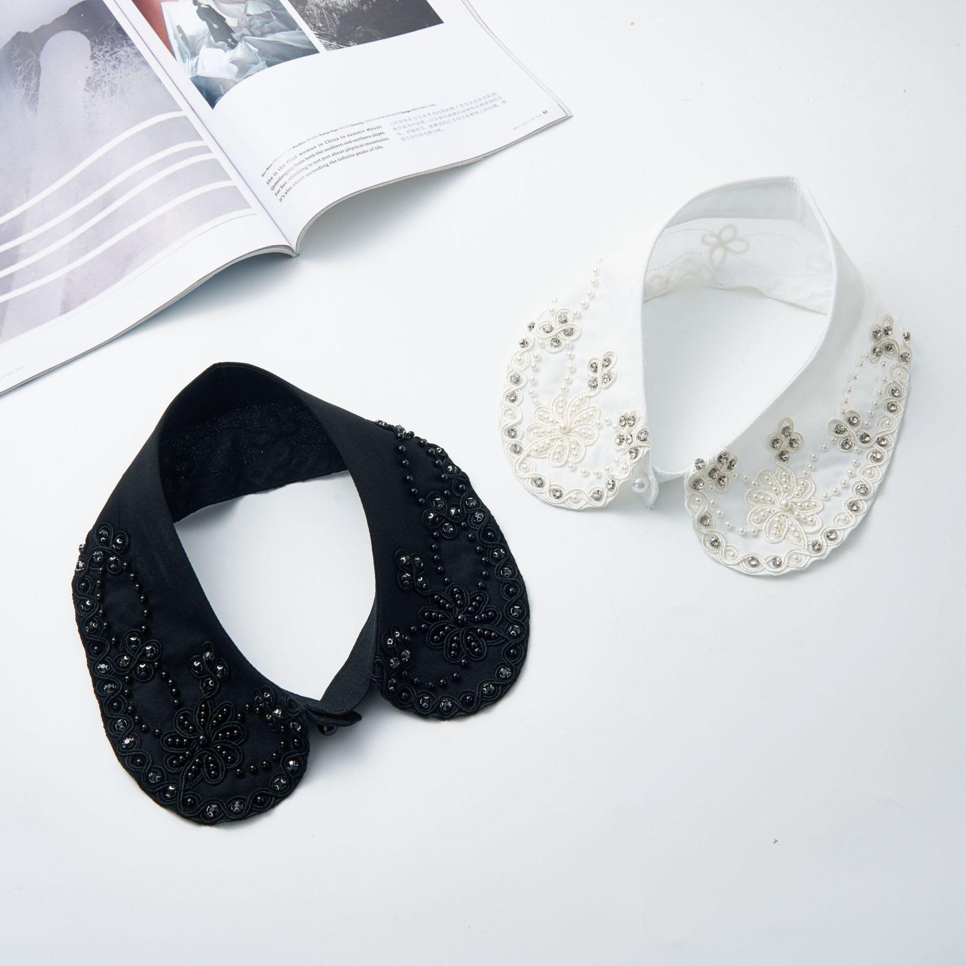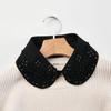 Suéter personalizado blanco y negro que reduce la edad, bordado a mano con cuentas, estilo coreano, decorado con cuello redondo, cuello falso moderno y versátil
