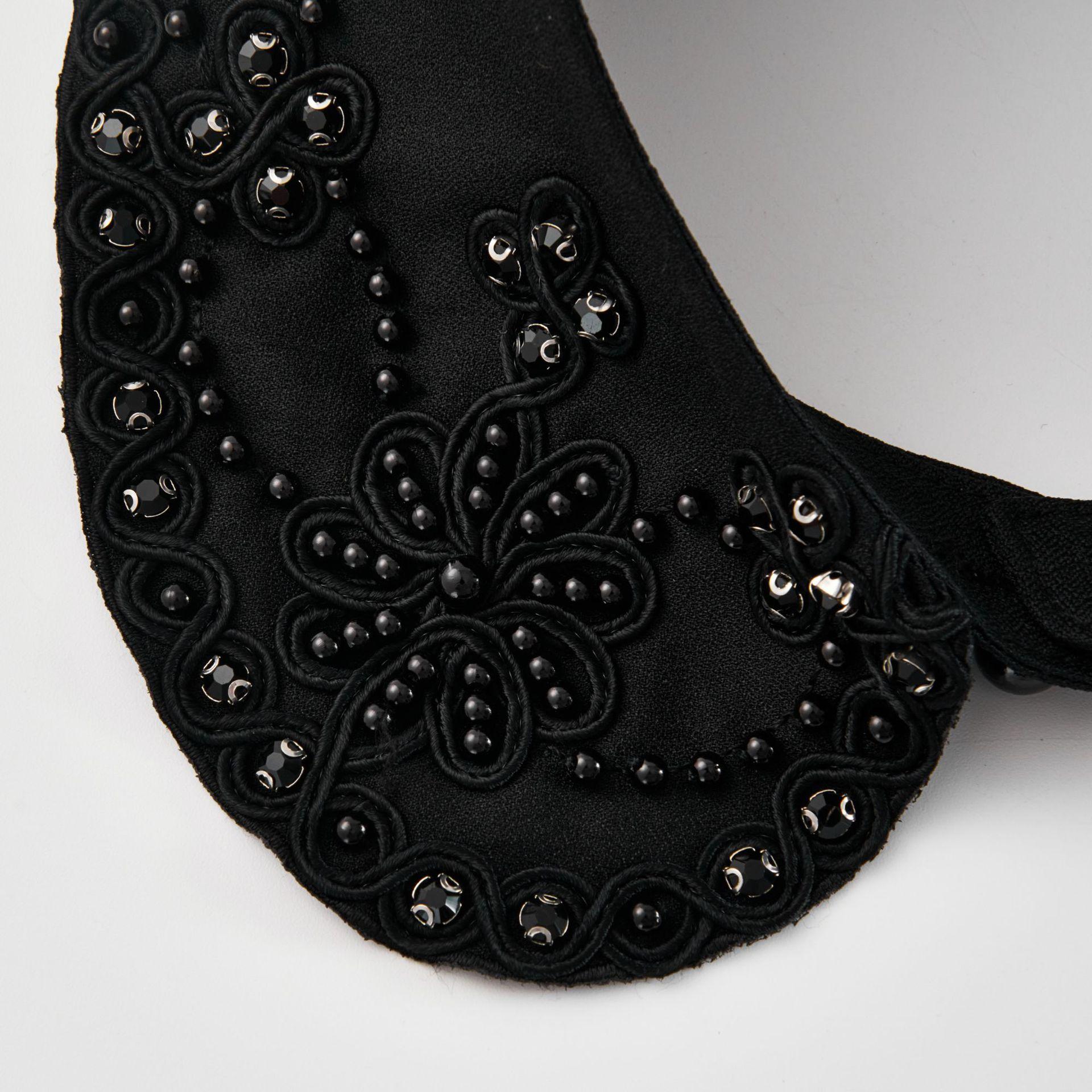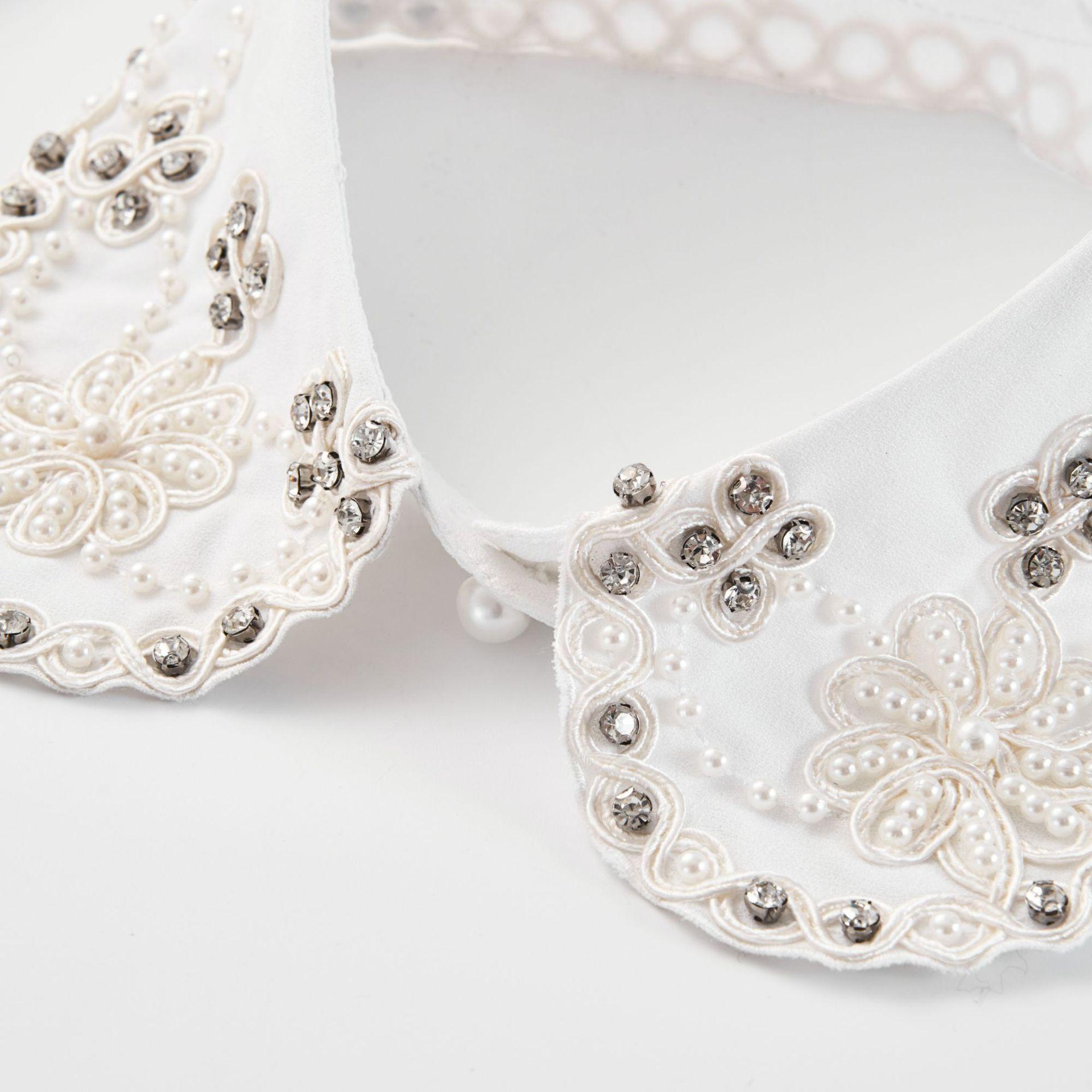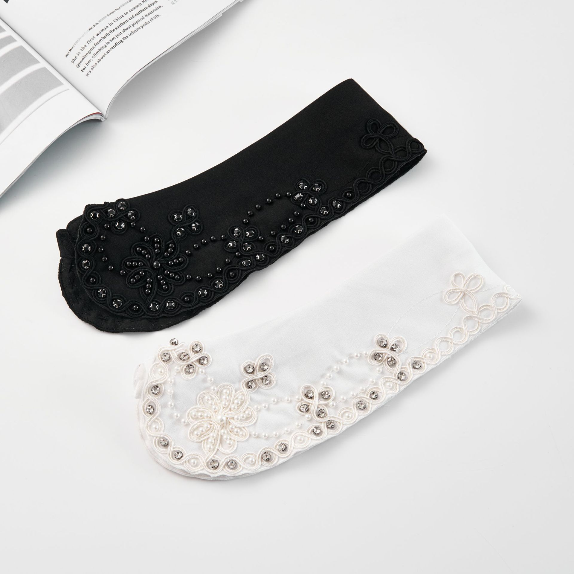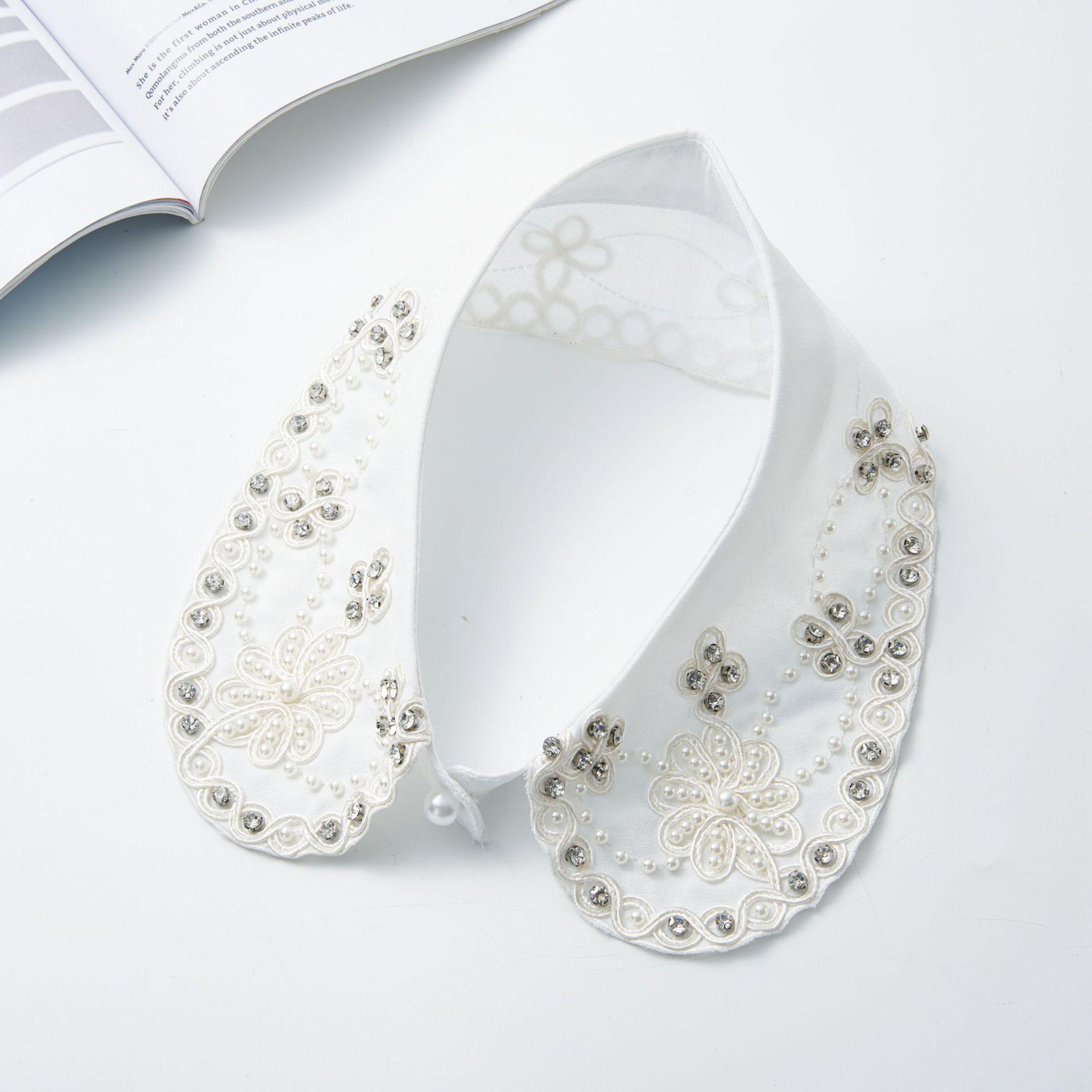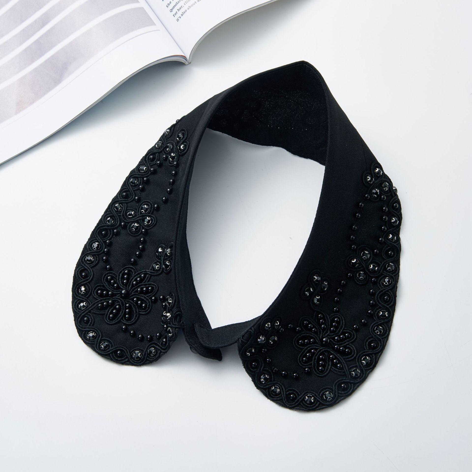 Suéter personalizado blanco y negro que reduce la edad, bordado a mano con cuentas, estilo coreano, decorado con cuello redondo, cuello falso moderno y versátil