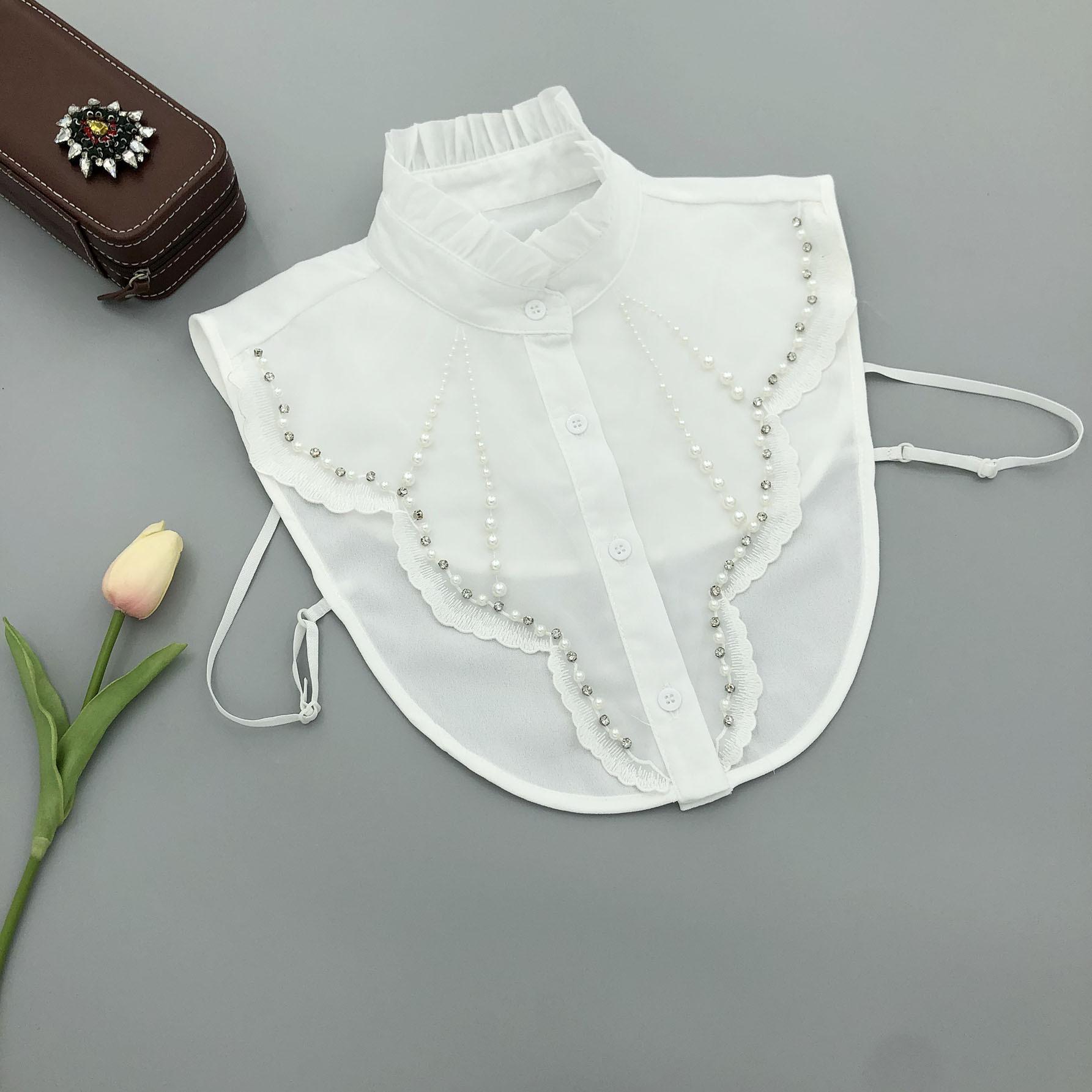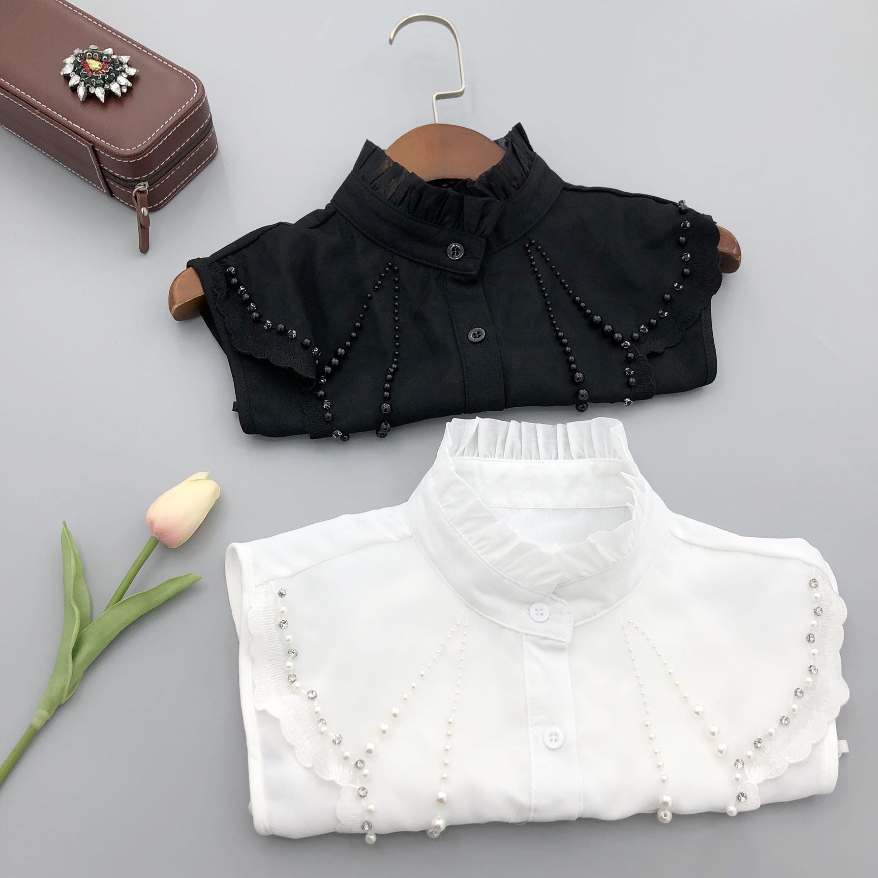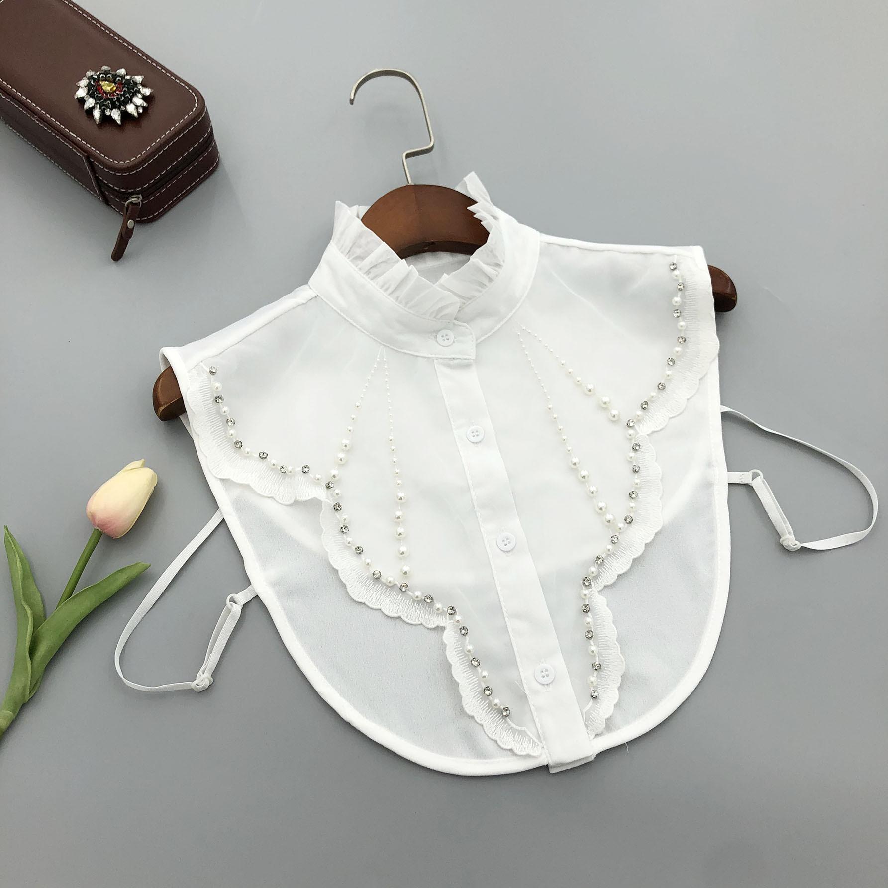 Cuello alto de encaje con volantes y abalorios, cuello falso versátil para camisas de mujer, accesorios de cuello de camisa de alta gama al por mayor