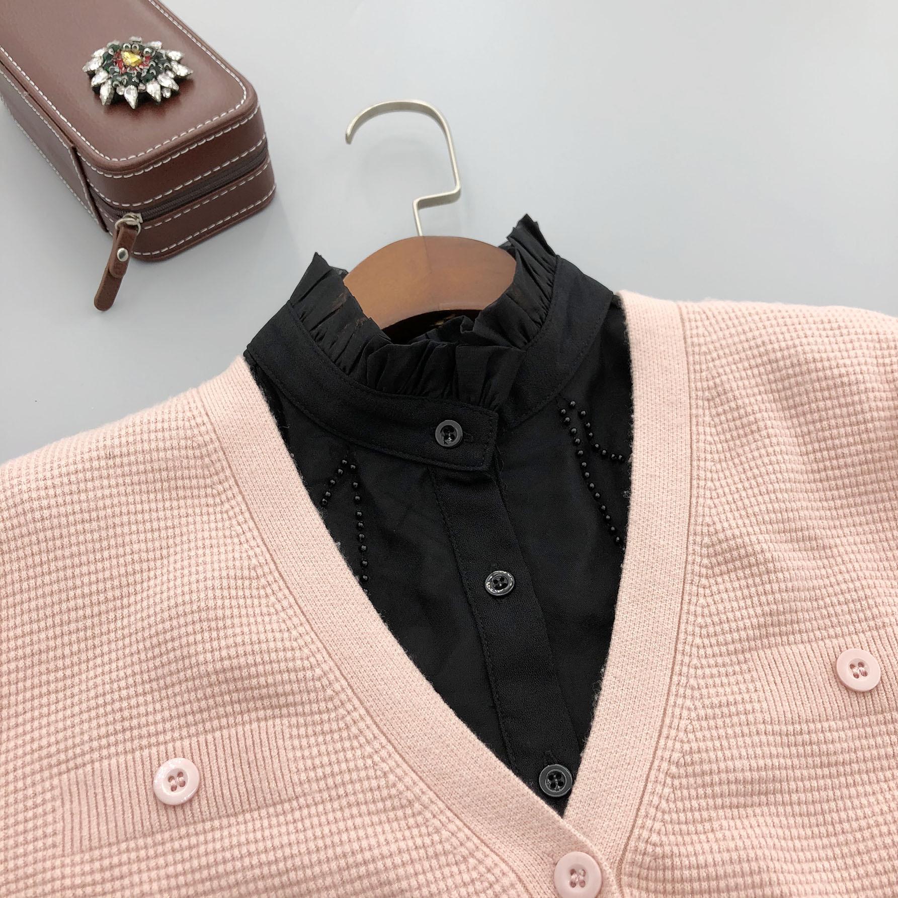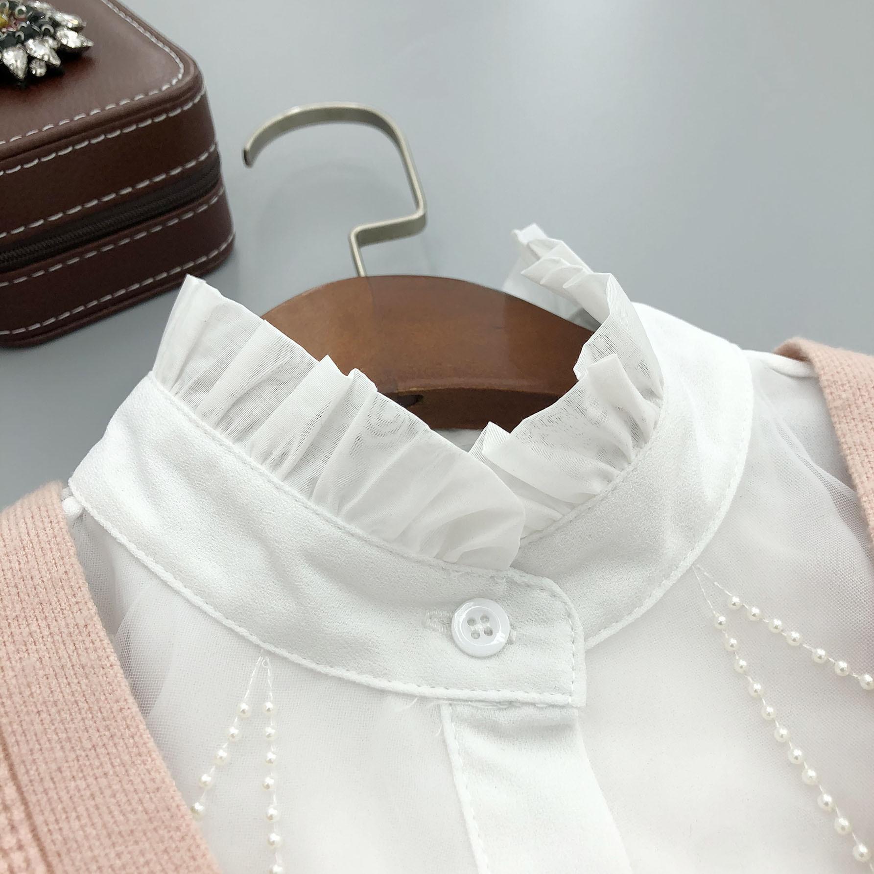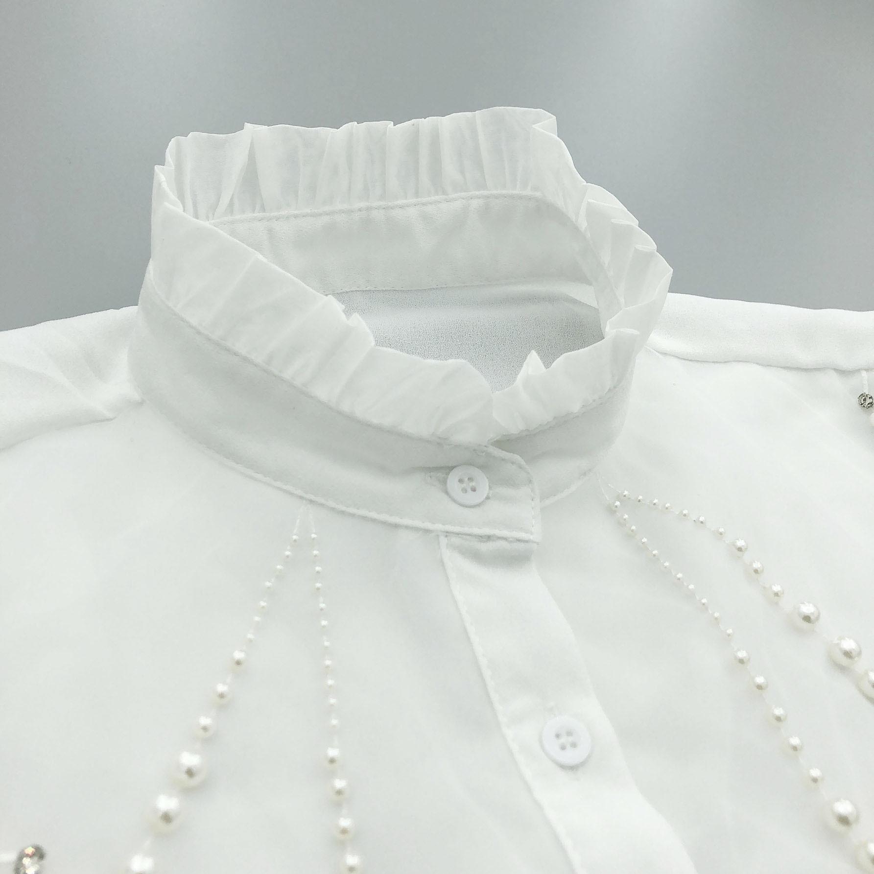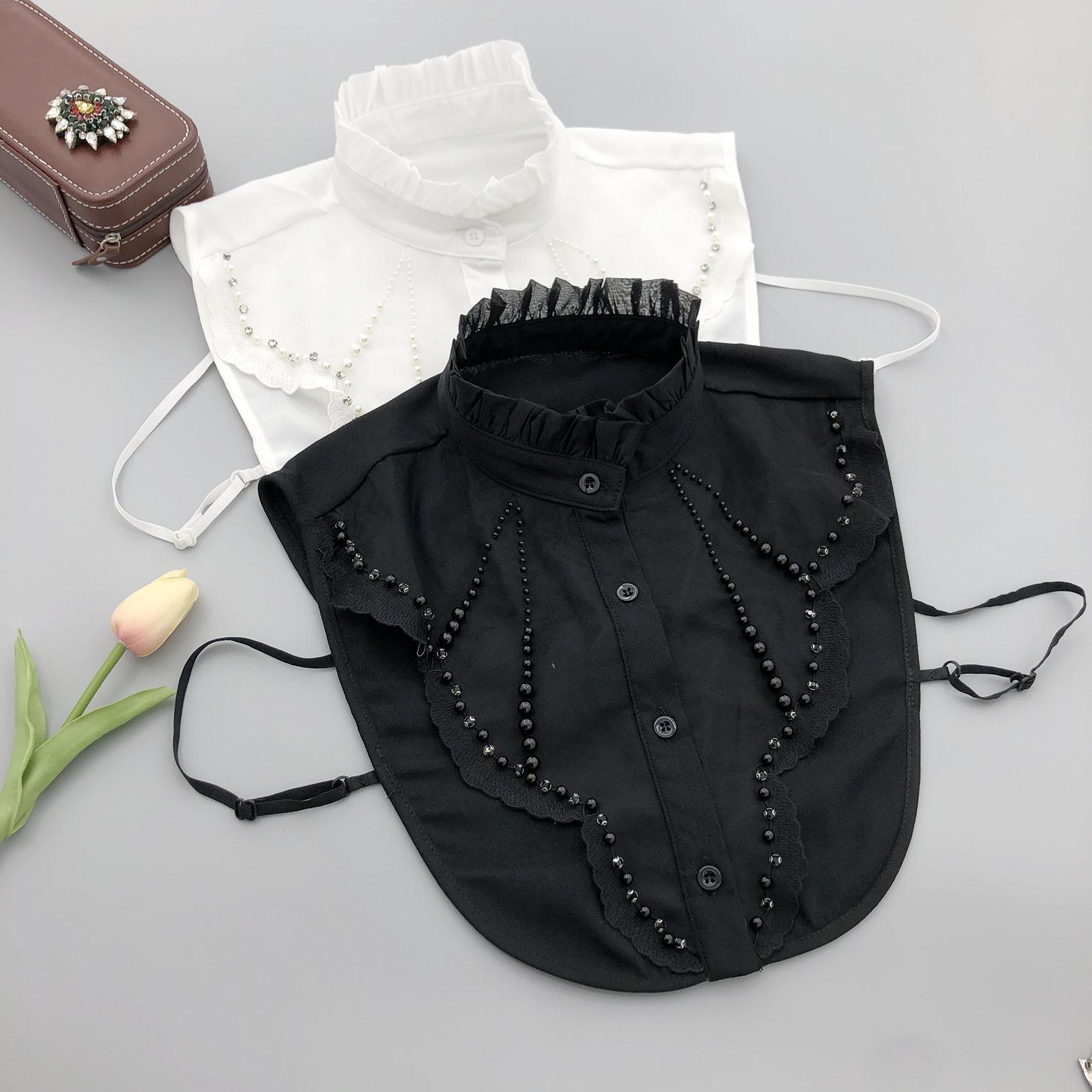 Cuello alto de encaje con volantes y abalorios, cuello falso versátil para camisas de mujer, accesorios de cuello de camisa de alta gama al por mayor