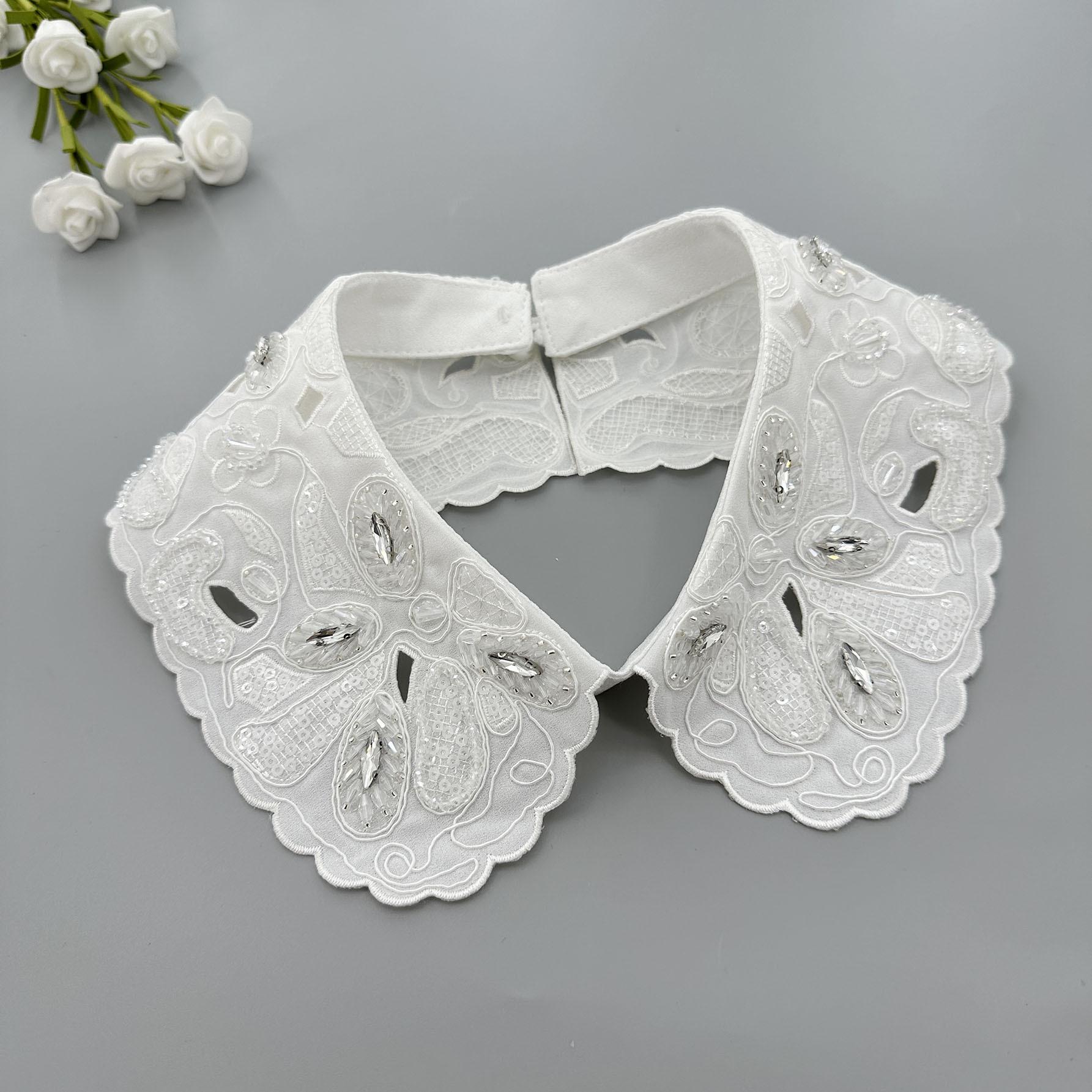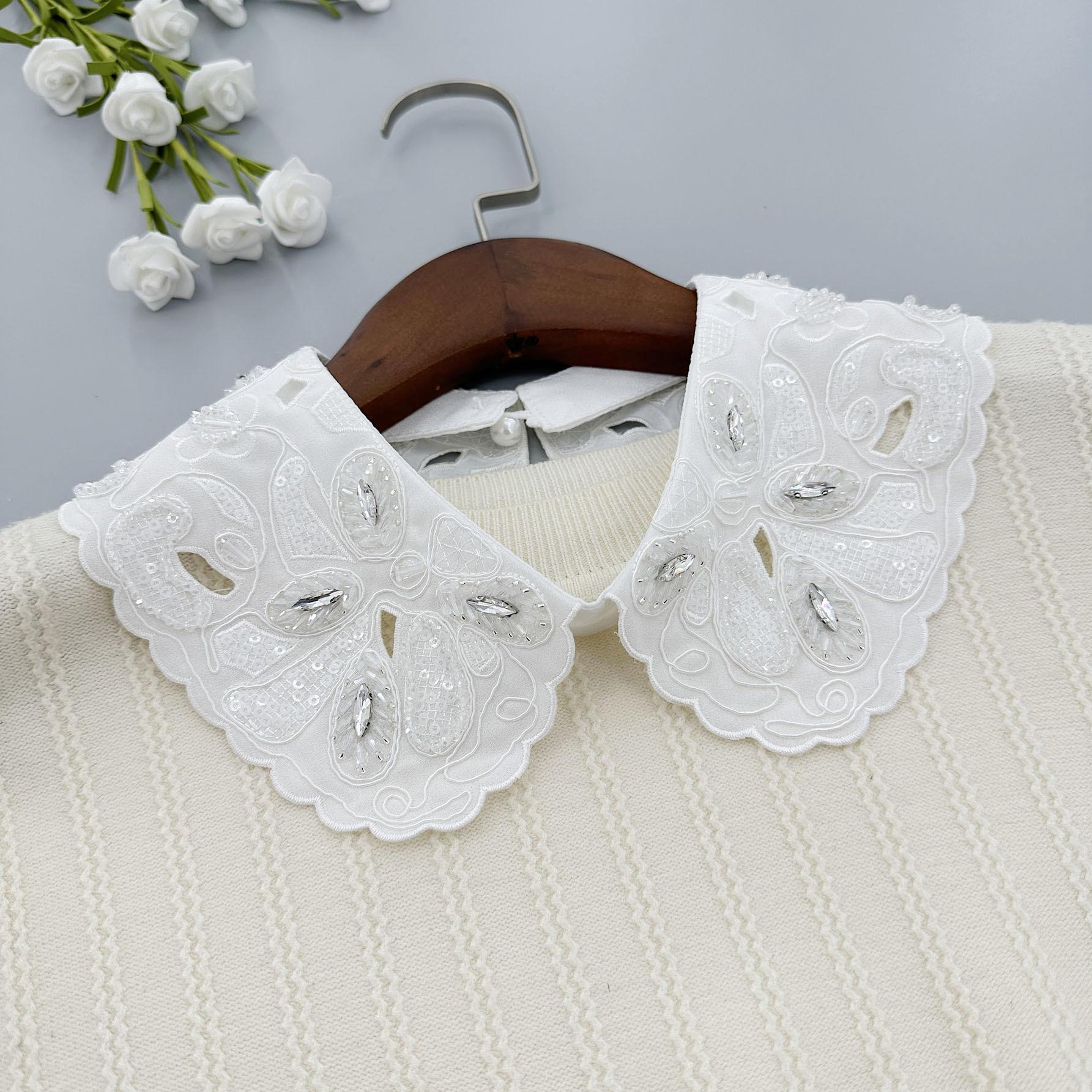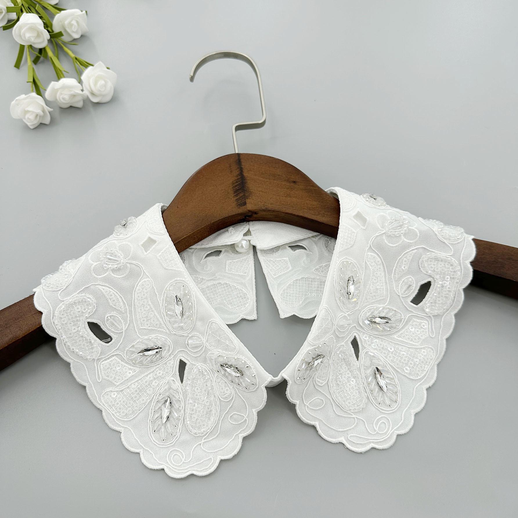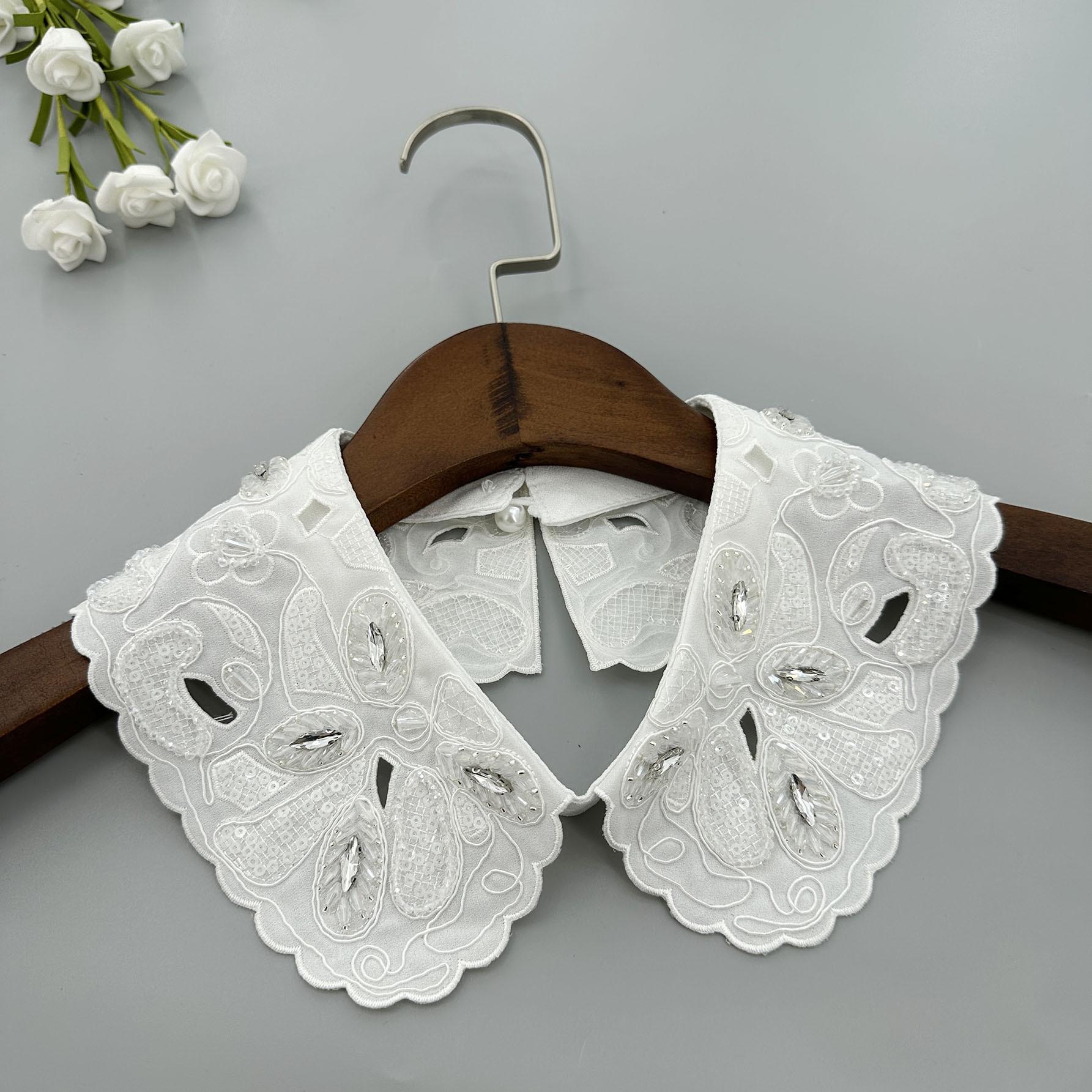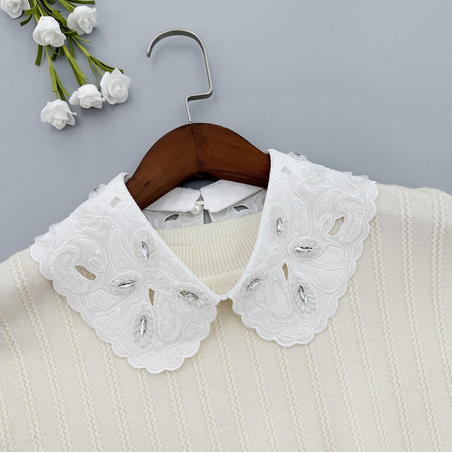 Cuello Redondo Lindo Estilo Coreano Calado Bordado Línea de Hueso Artesanía Pesada con Cuentas Cosible Exquisito Cuello Desmontable de Alta Gama