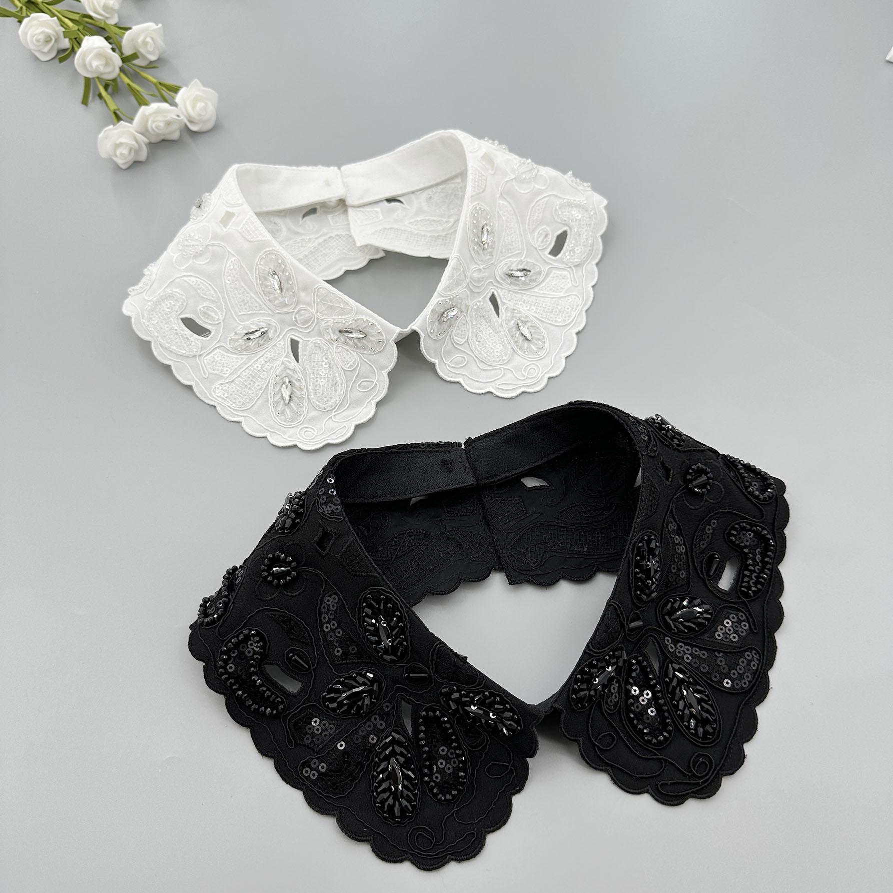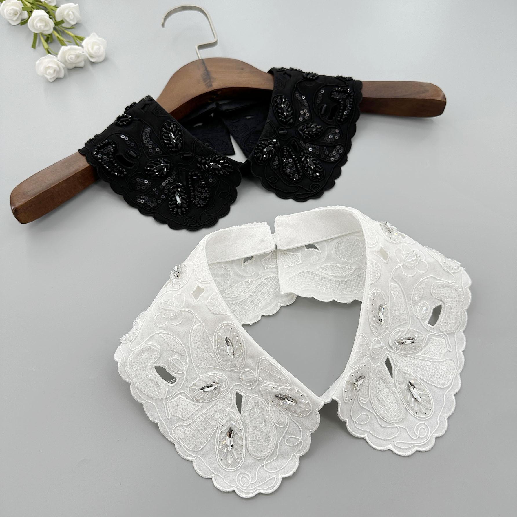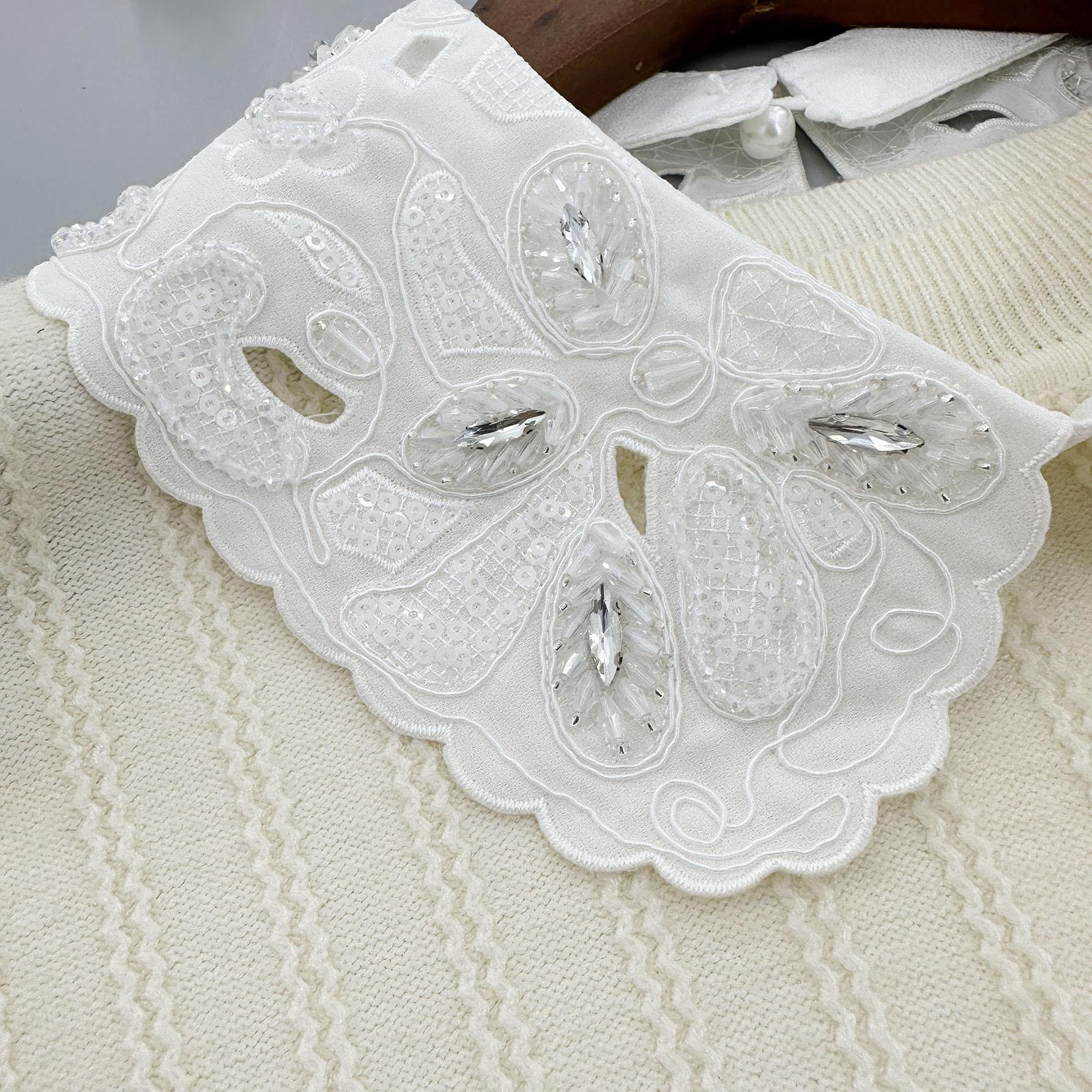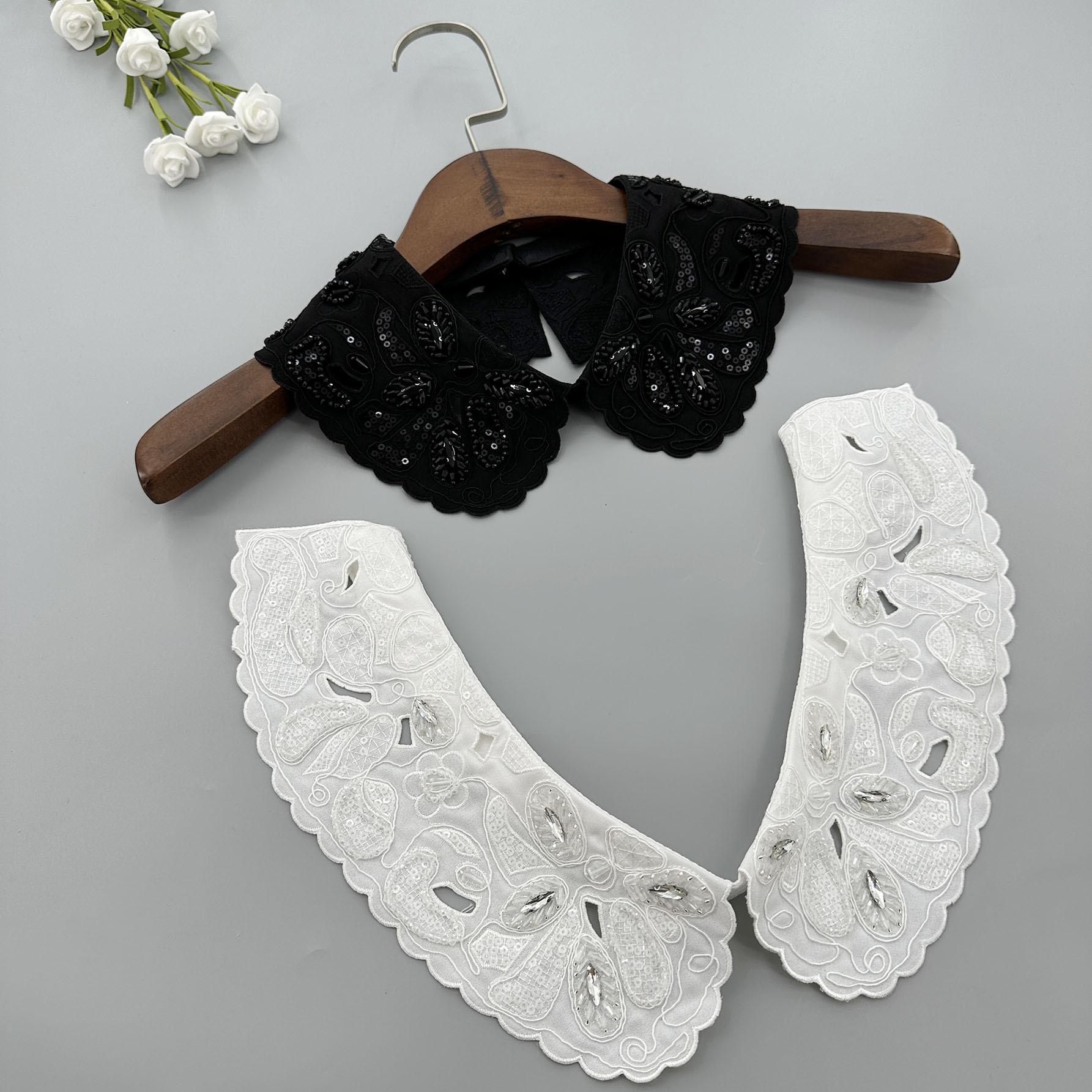 Cuello Redondo Lindo Estilo Coreano Calado Bordado Línea de Hueso Artesanía Pesada con Cuentas Cosible Exquisito Cuello Desmontable de Alta Gama