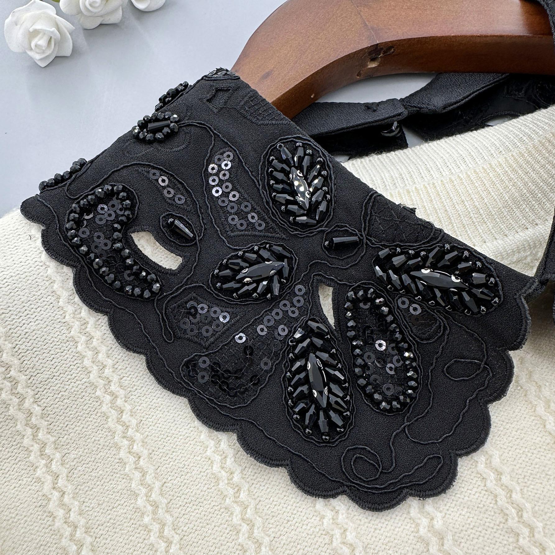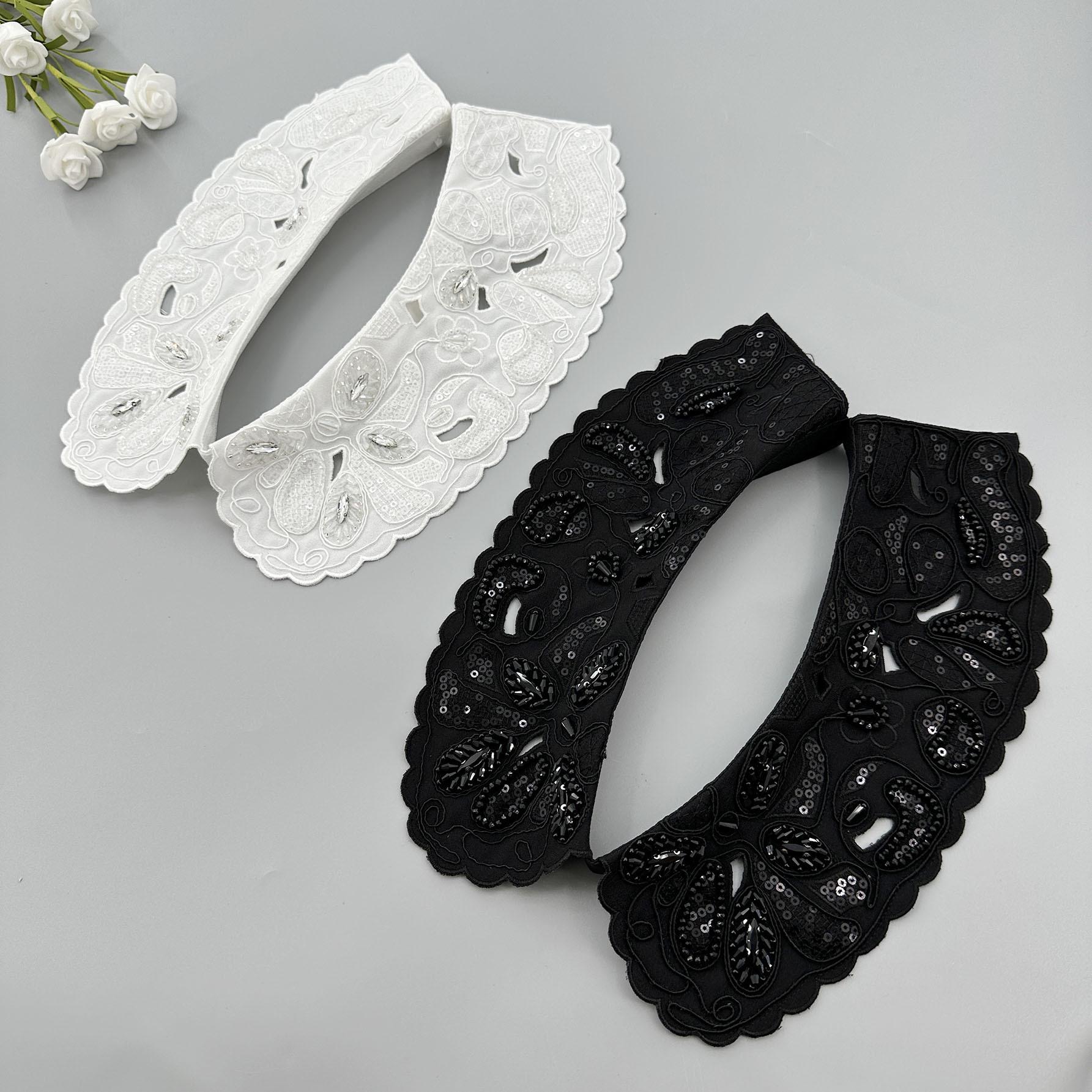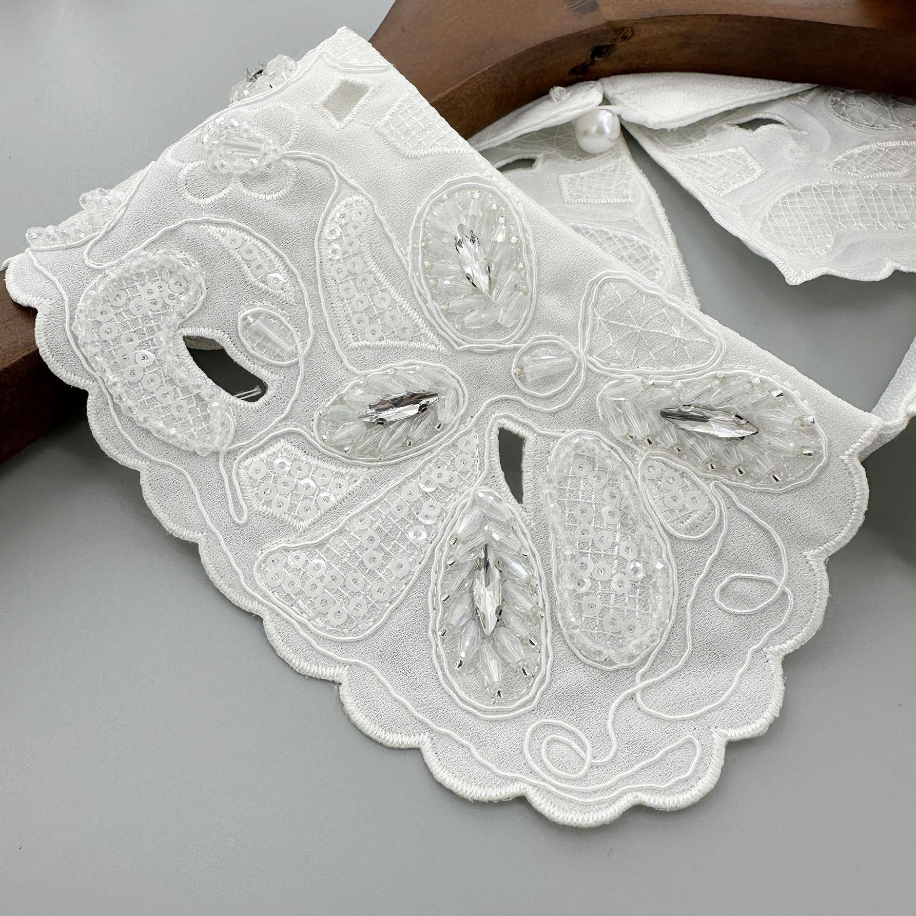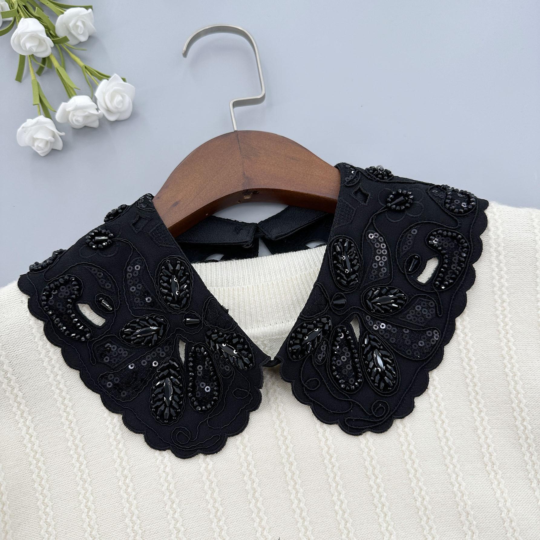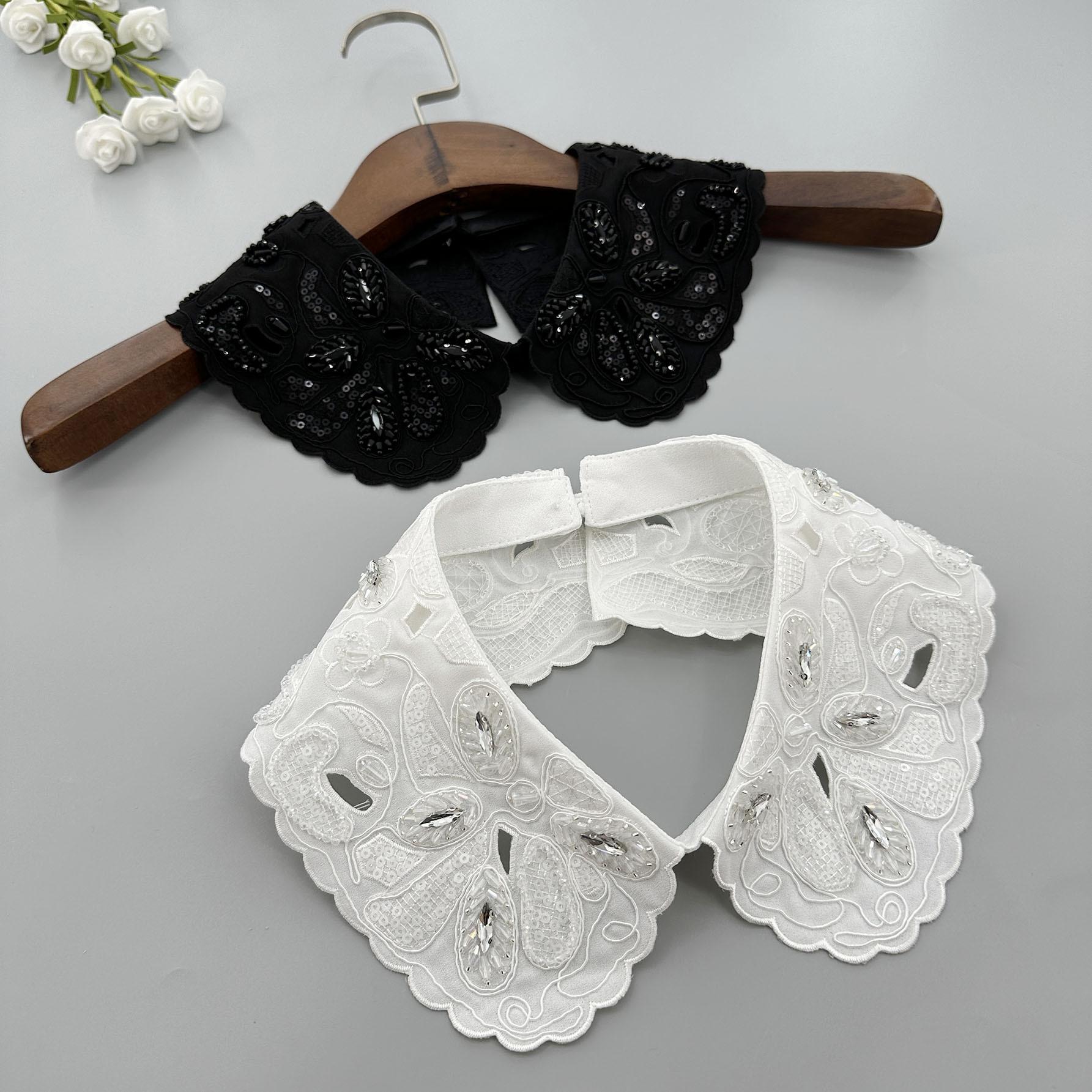 Cuello Redondo Lindo Estilo Coreano Calado Bordado Línea de Hueso Artesanía Pesada con Cuentas Cosible Exquisito Cuello Desmontable de Alta Gama
