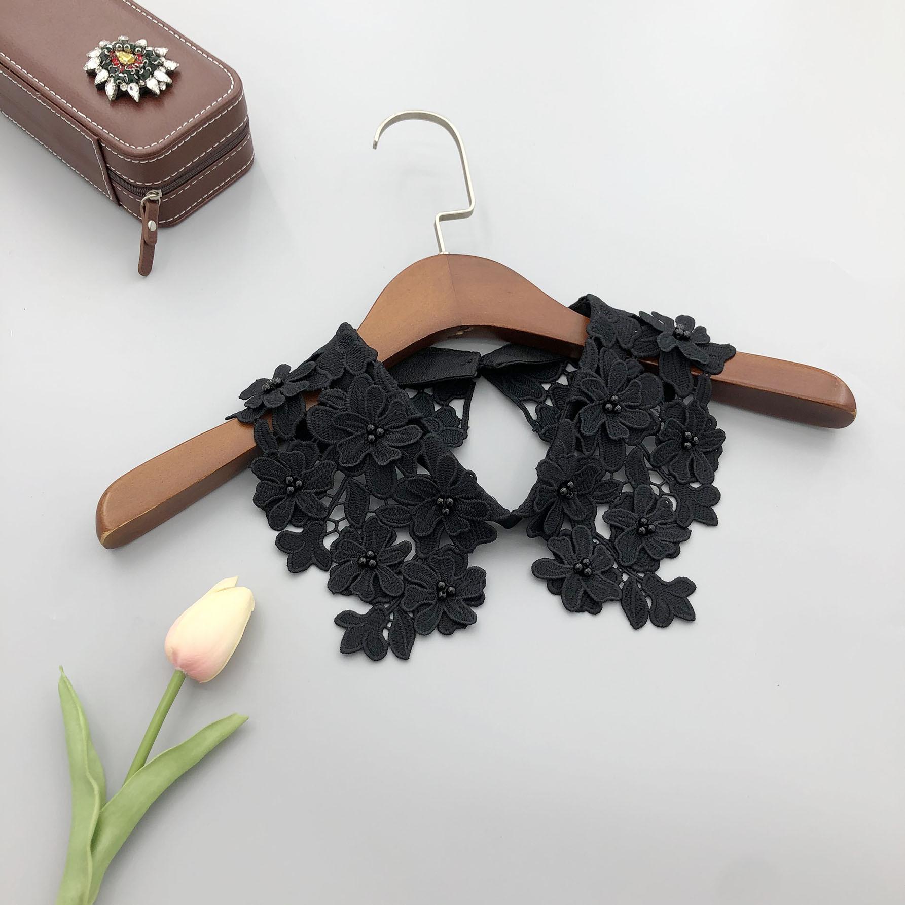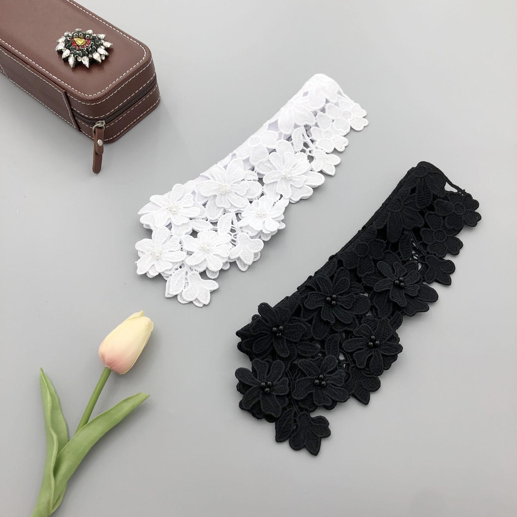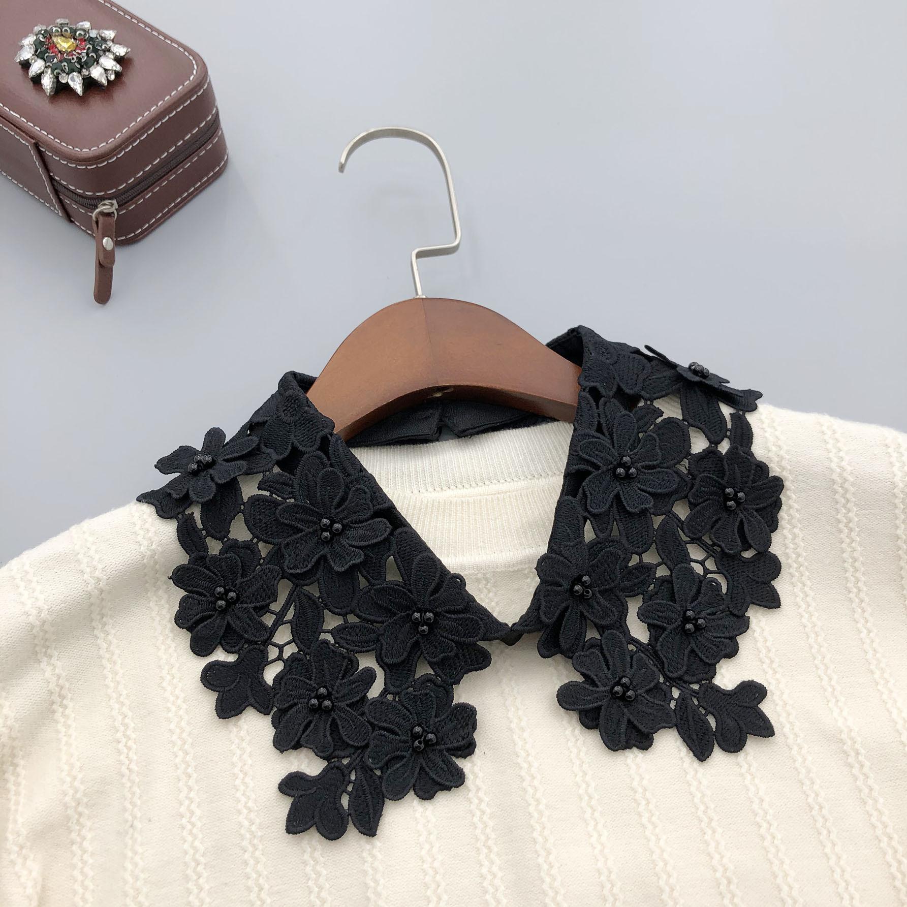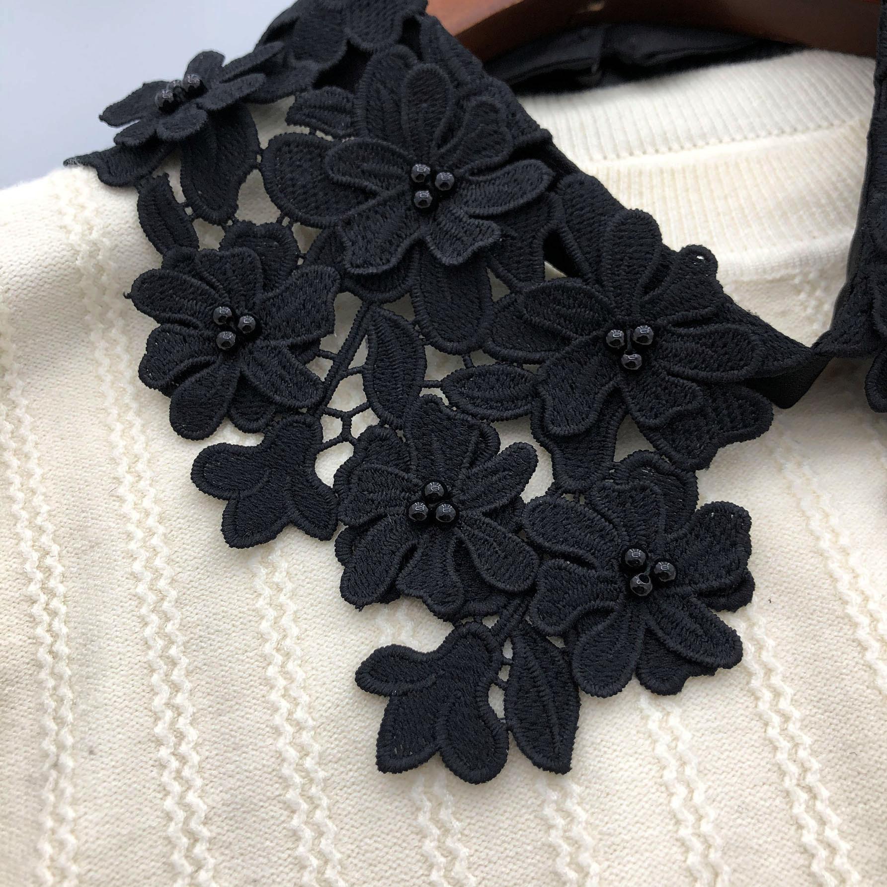 Cuello Decorativo Hueco Blanco y Negro Cuello Falso Estilo Chino Versátil Retro Flor Soluble en Agua Cuello de Camisa Cuello Falso para Mujer de Alta Gama