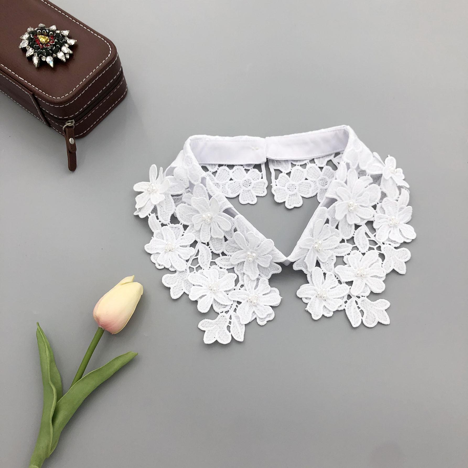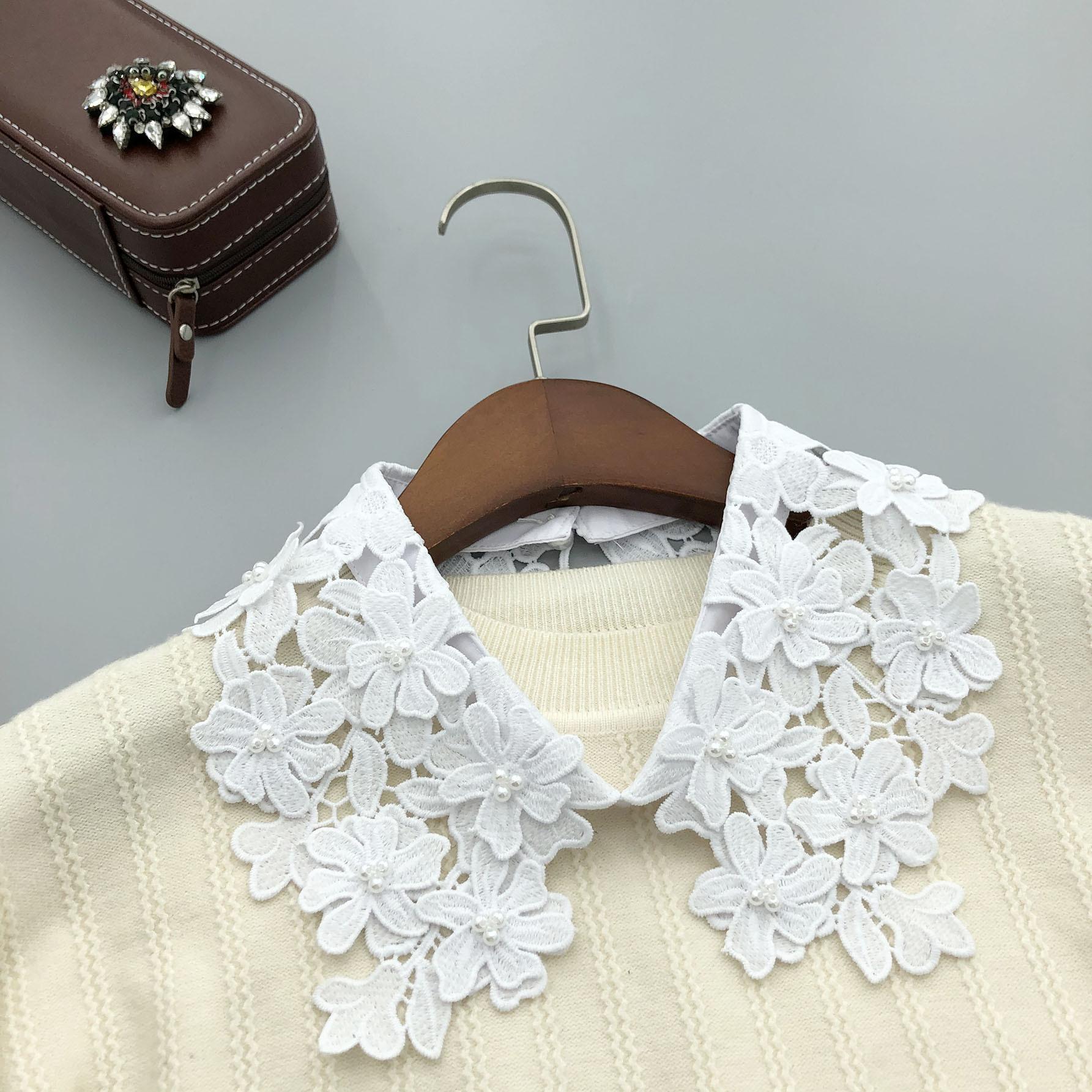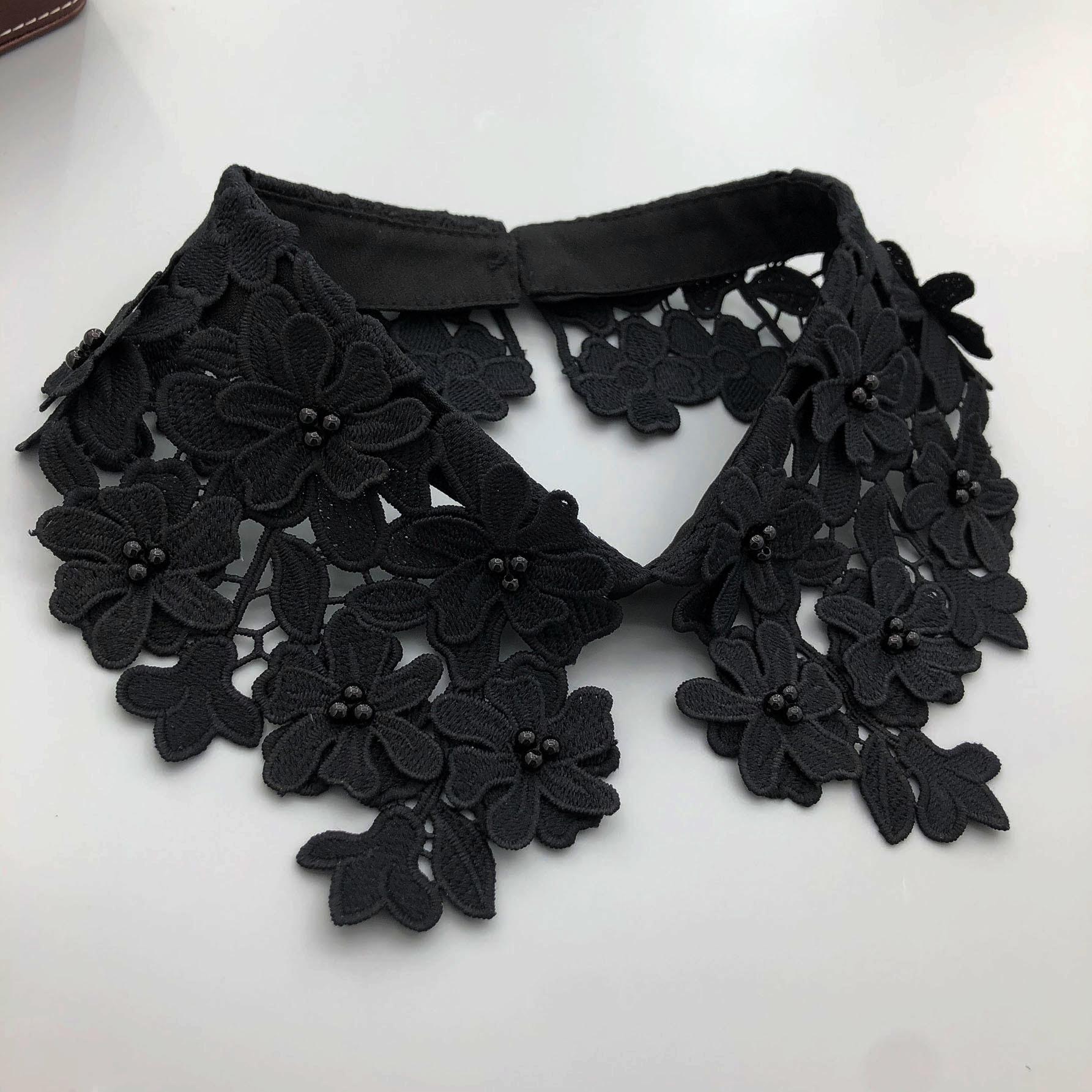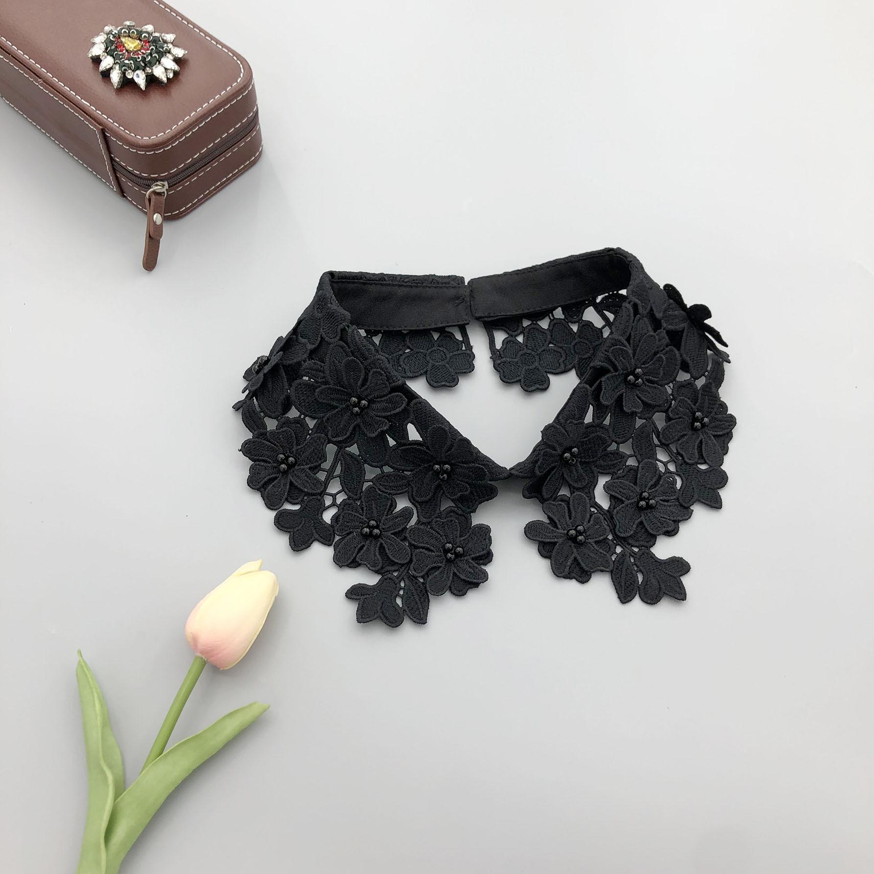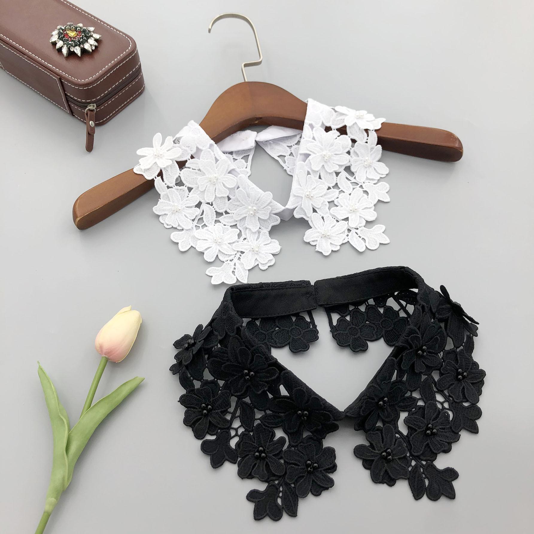 Cuello Decorativo Hueco Blanco y Negro Cuello Falso Estilo Chino Versátil Retro Flor Soluble en Agua Cuello de Camisa Cuello Falso para Mujer de Alta Gama