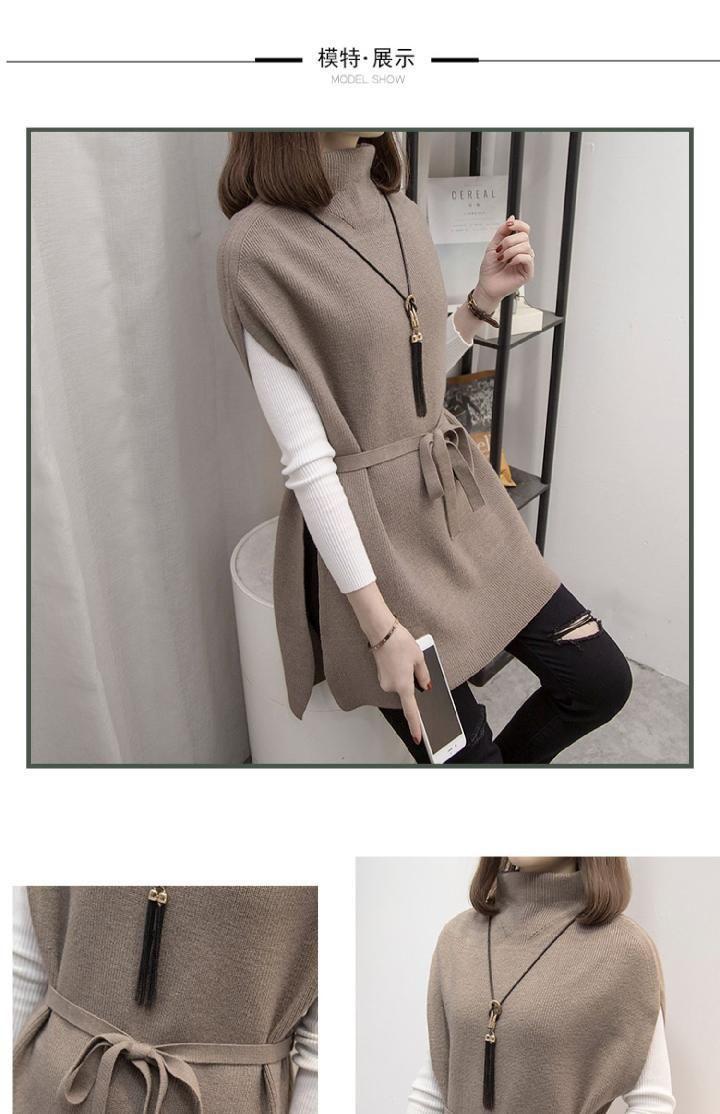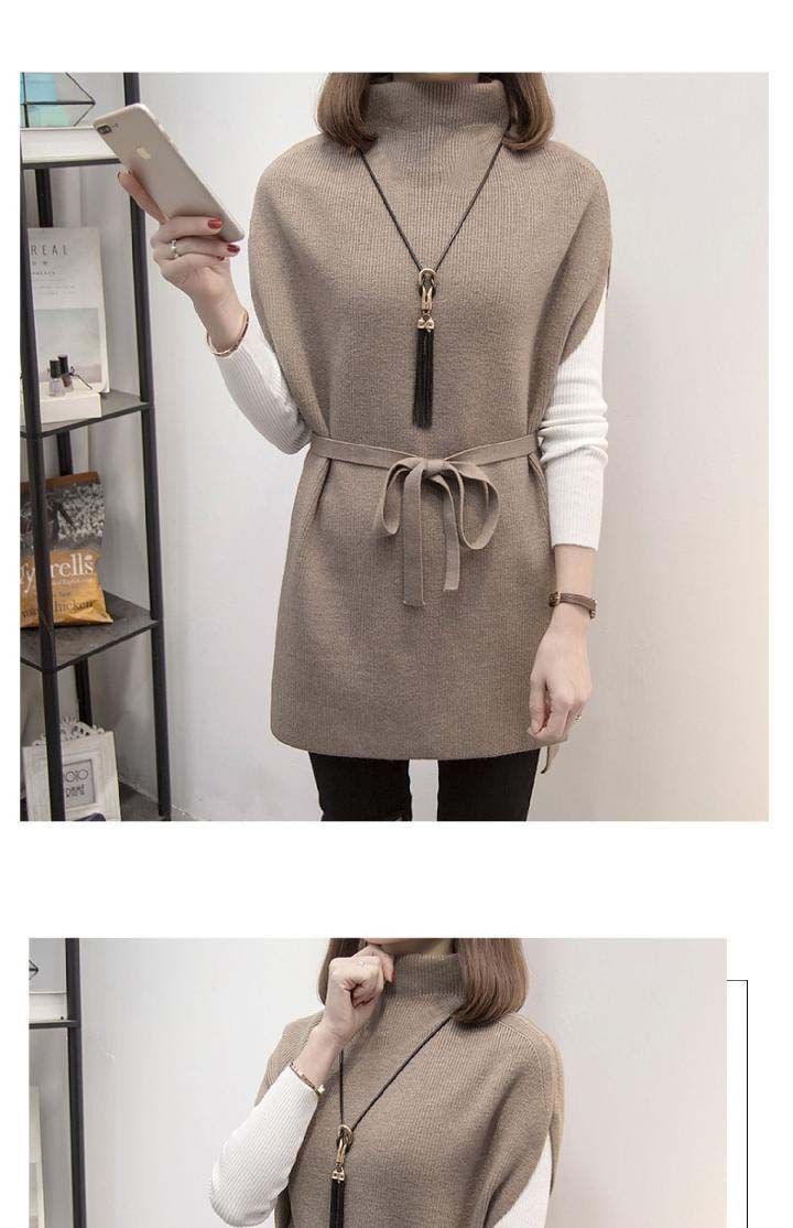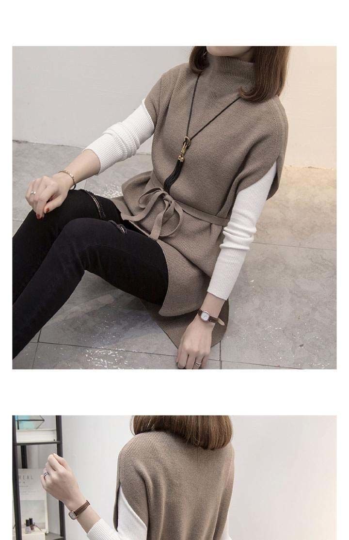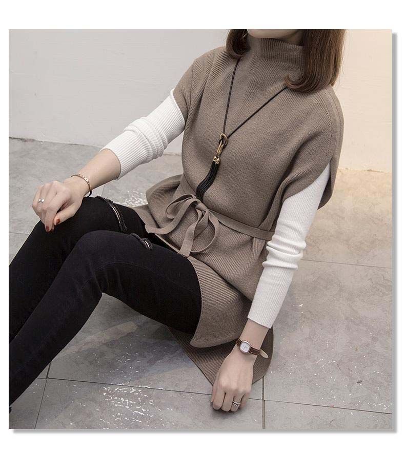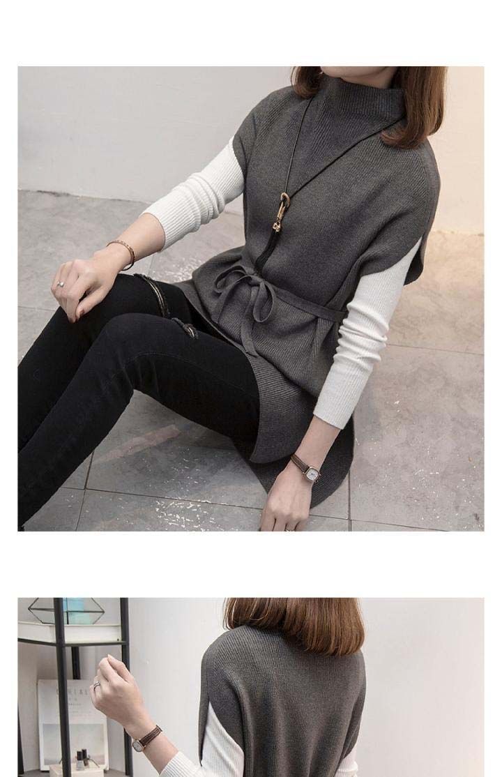 Suéter de cuello medio alto, largo, de dos piezas, para mujer, nuevo atuendo, camisa base, chaleco ajustado de primavera y otoño, moda ajustada