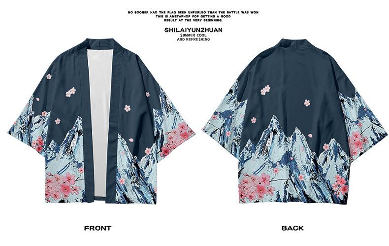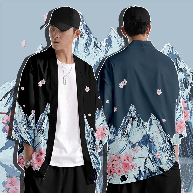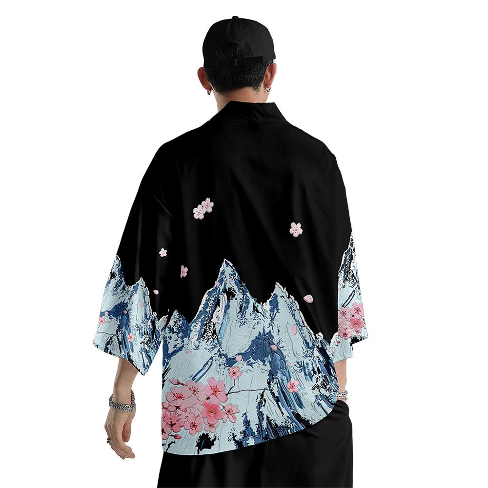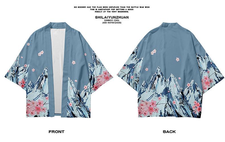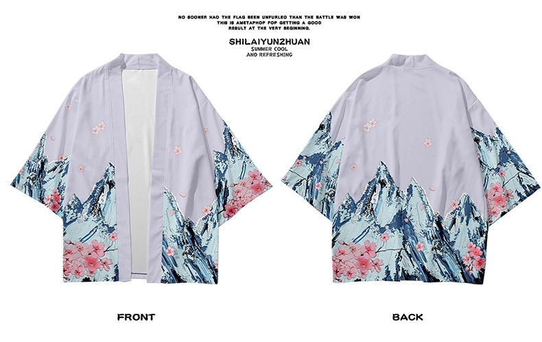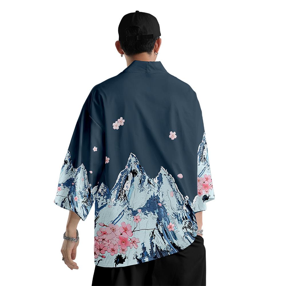 Cárdigan de Personalidad al por Mayor Bata de Estilo Japonés Camisa Elegante de Hada Montaña Nevada Estampada Trendy Guofeng Chaqueta Delgada para Hombre y Mujer