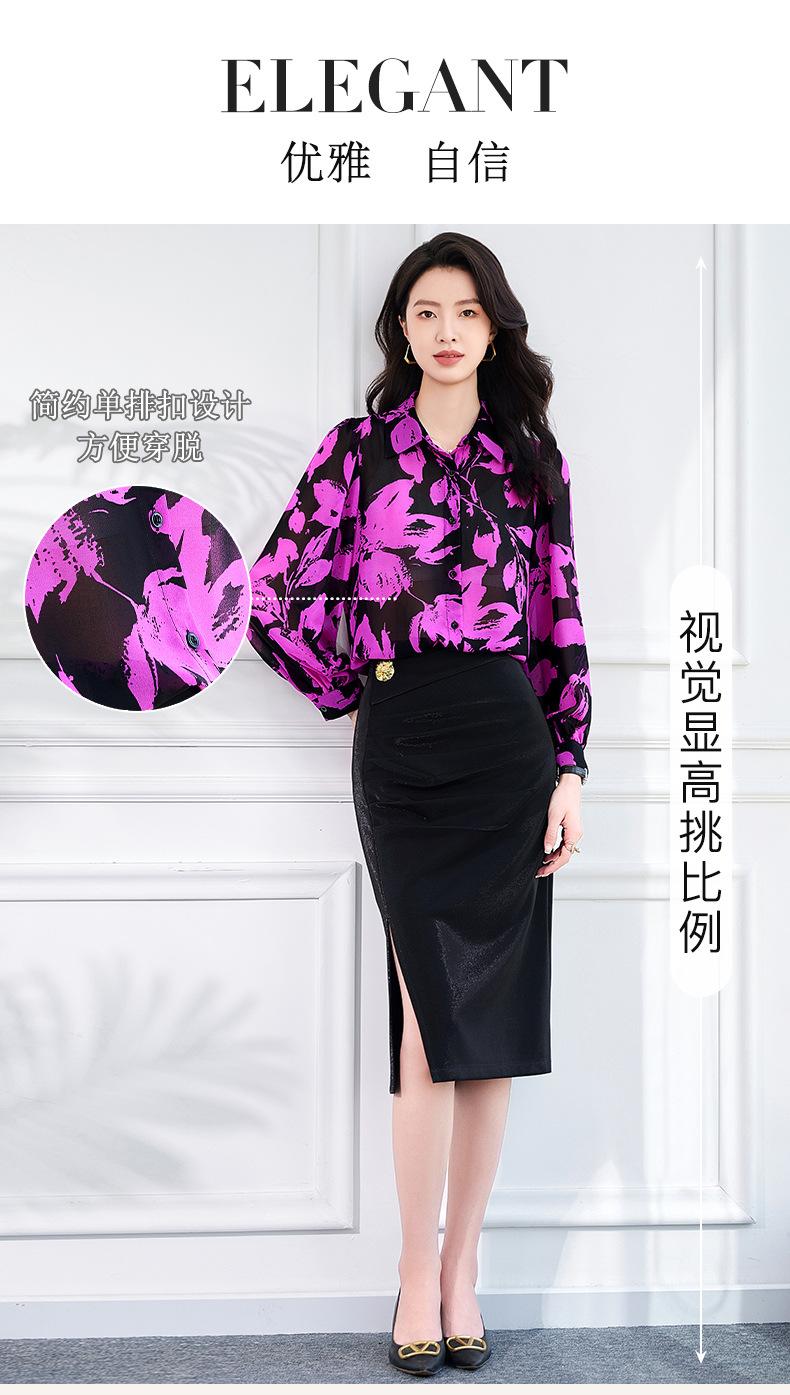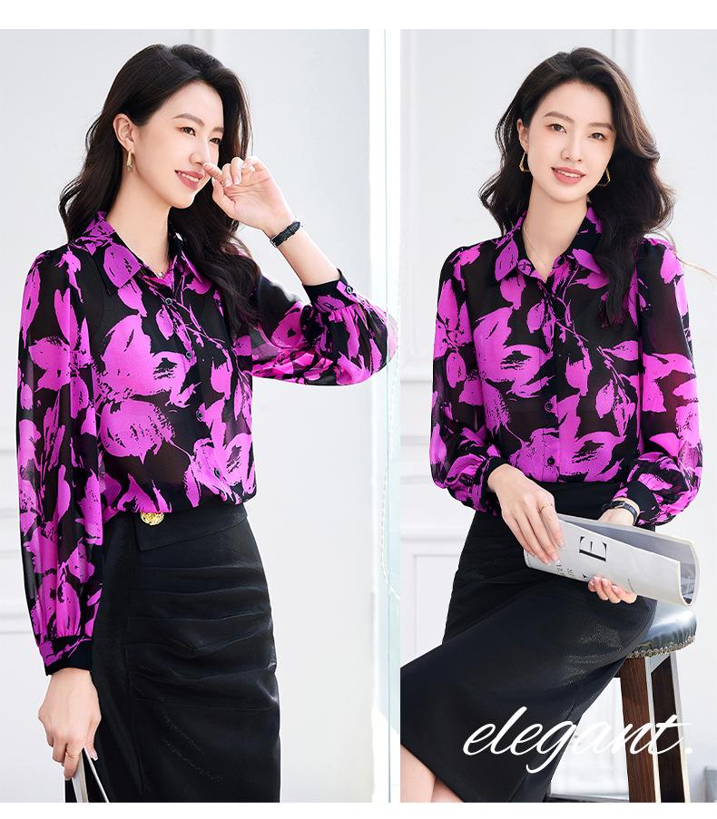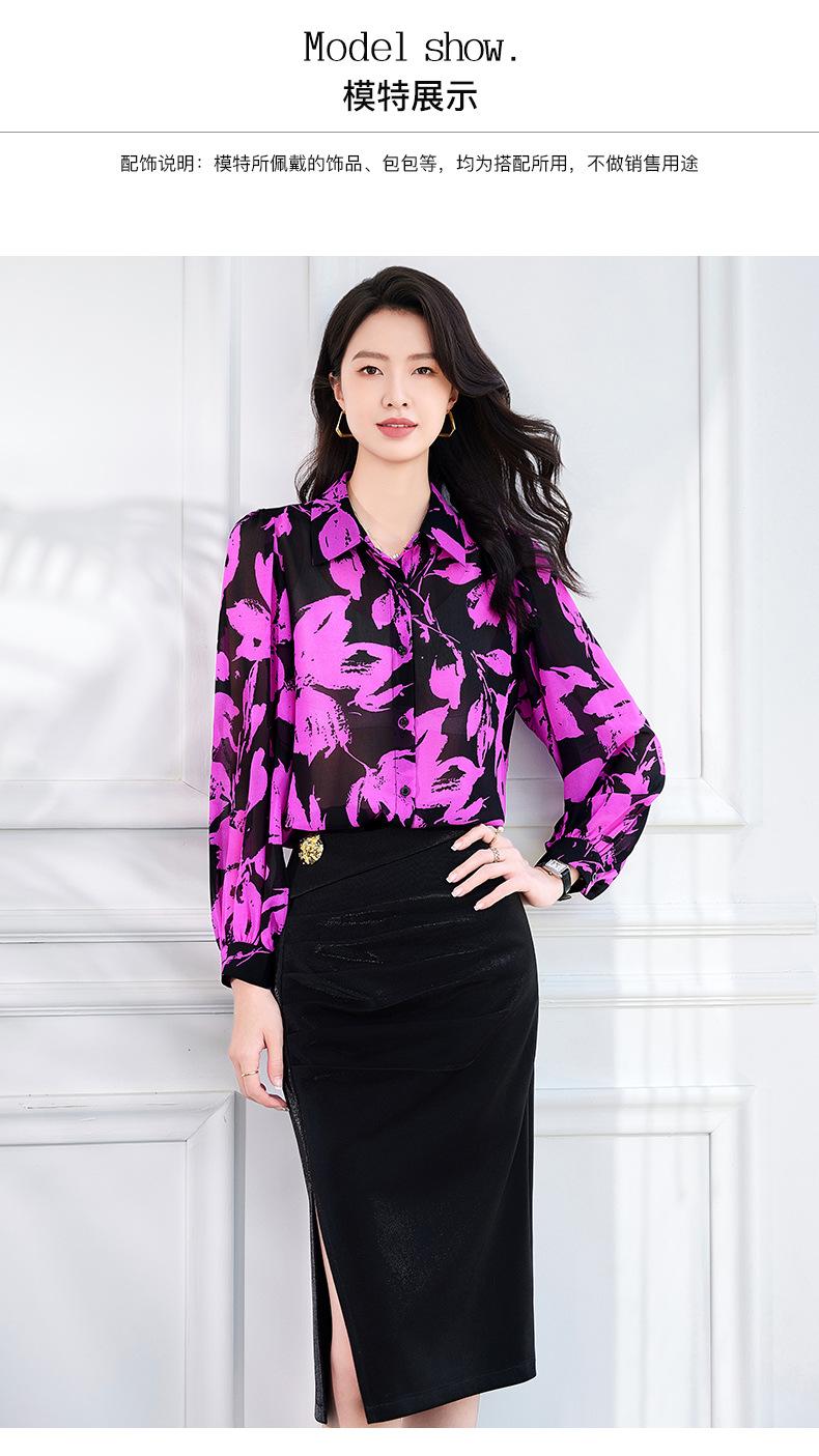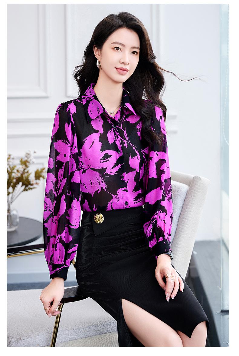 Camisa de manga larga con estampado de moda 2024, estilo retro que combina con todo, nueva camisa de nicho de moda de comercio exterior europea y americana, talla grande.