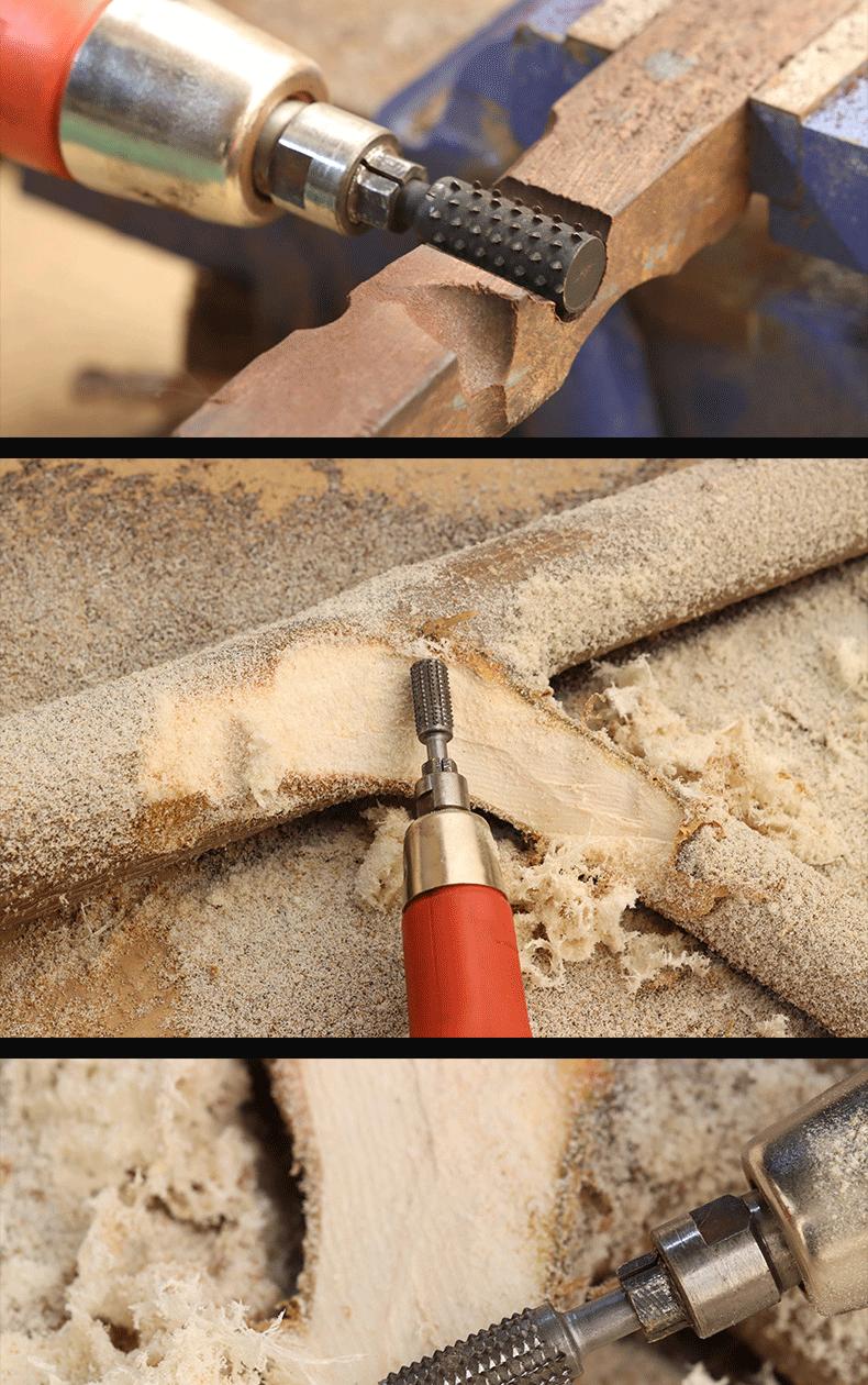 Cabezal de pulido de lima rotatoria eléctrica para carpintería, cabezal de pulido de aleación, fresa de raíz de madera, juego de limas para madera, herramienta