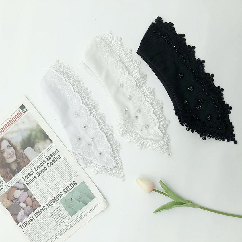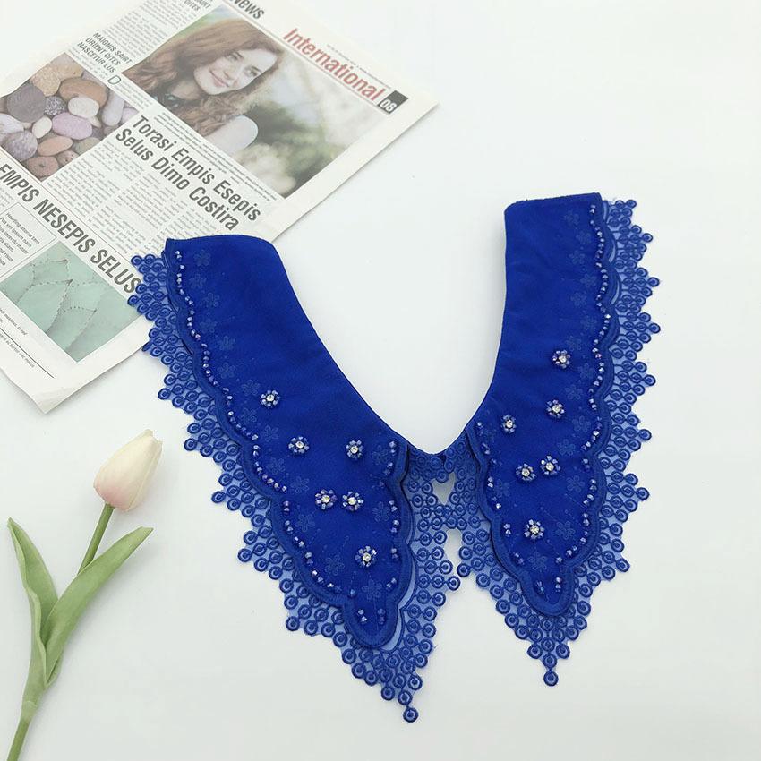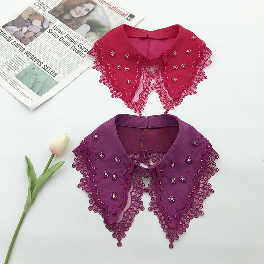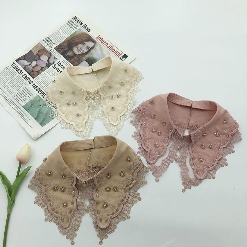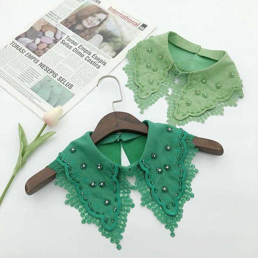 Gasa de Doble Capa Bordado Abalorios Serie de Colores de Moda Cuello Largo de Punta Resistente Venta Caliente Transfronteriza Moda Cuello Falso al Mayoreo